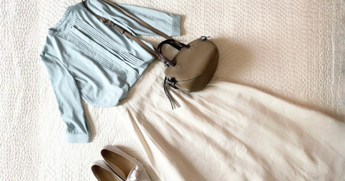 スカートと同様に、トップスも軽やかで柔らかい素材を選ぶと、全体のコーディネートに統一感が出てバランスが良くなります。