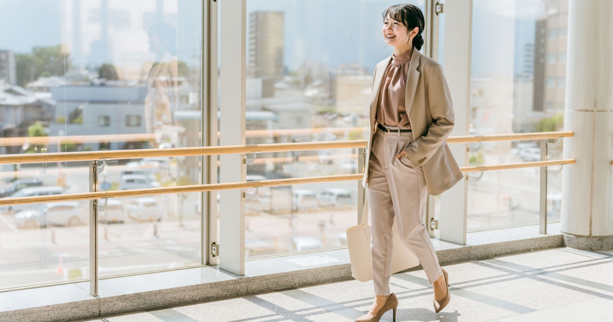 足元は、足の甲が見えるデザインのパンプスや、華奢なサンダルを選ぶと、すっきりとした抜け感を演出できます。