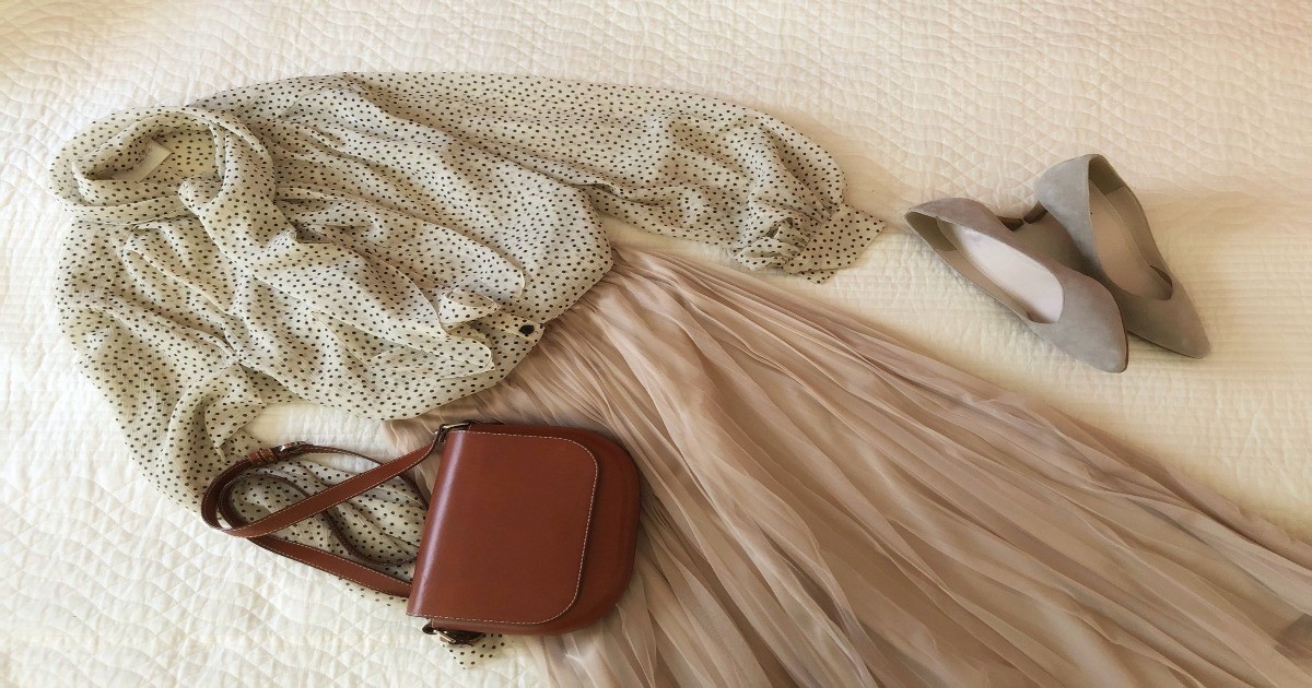 ボウタイブラウスやフリルブラウスを、フレアスカートと組み合わせるコーディネートは、骨格ウェーブの魅力を最も引き出します。