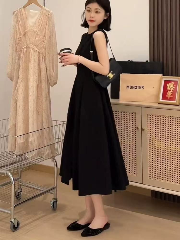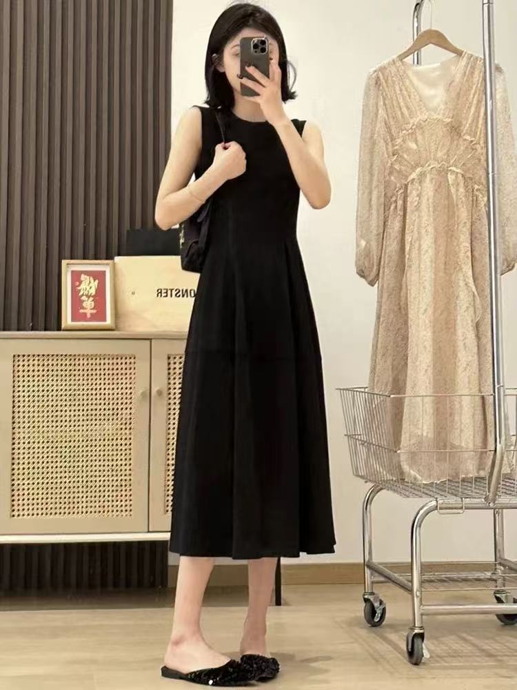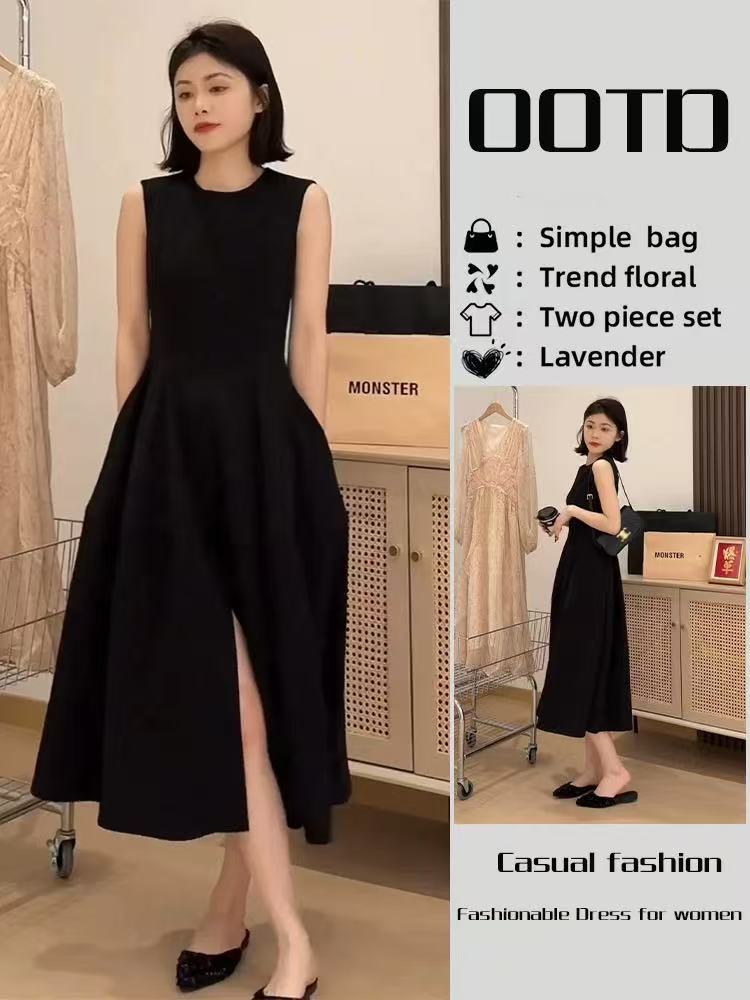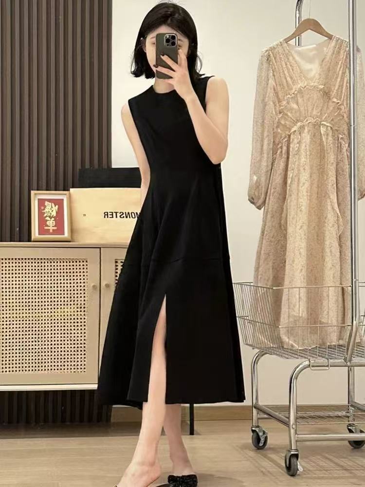 ノースリーブ ミドル丈スリット ワンピースは、エレガントで洗練された女性にピッタリのアイテムです。上品なブラックカラーはさまざまなシーンでのコーディネートに最適。柔らかくて通気性が良い素材のため、暑い夏の日でも快適に着用できます。 気品あるミドル丈とスリットデザインは、歩くたびに美しいラインを演出します。シンプルながらもファッション性を兼ね備えたスタイルは、カジュアルな日常から特別なイベントまで幅広く活躍します。