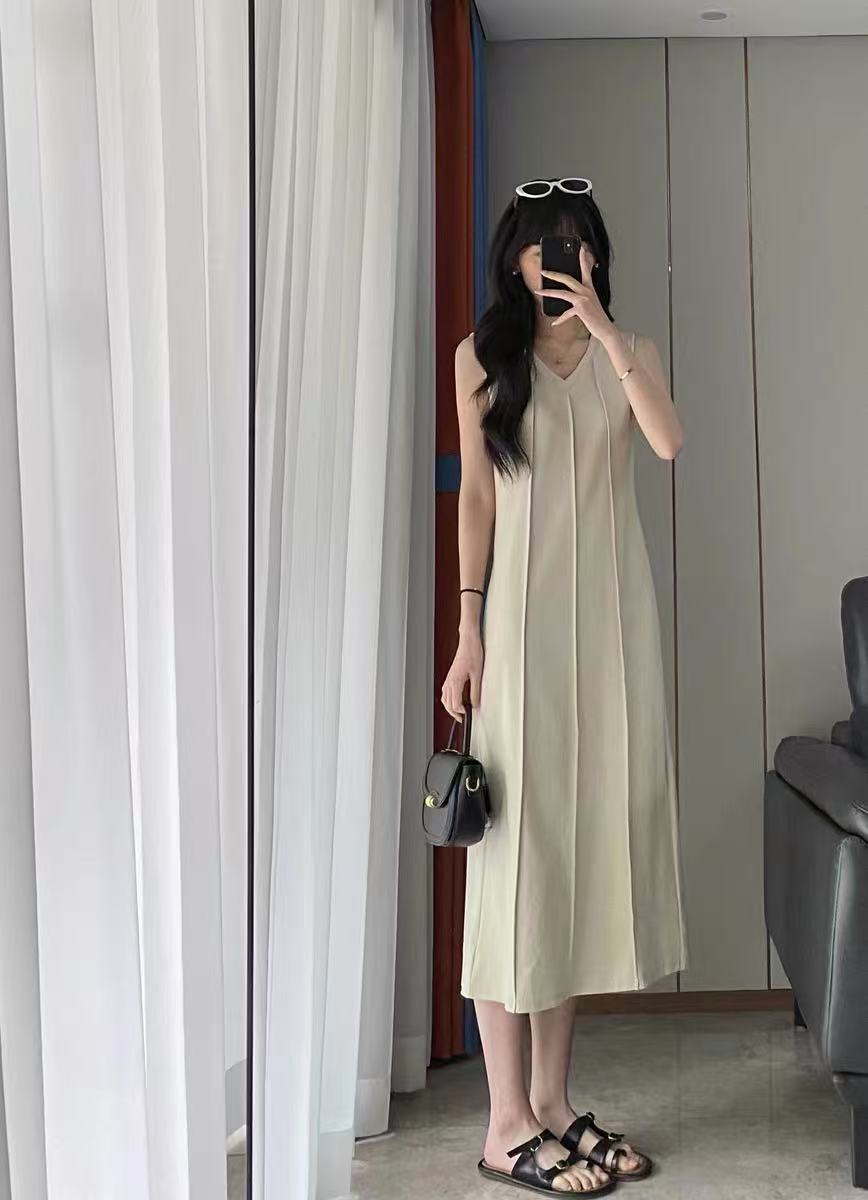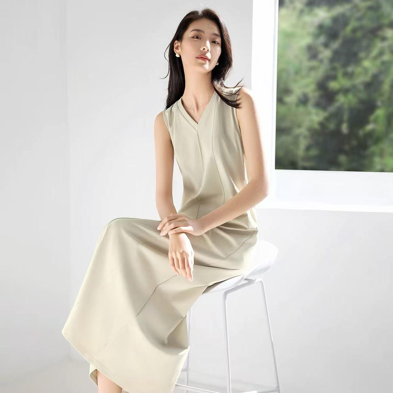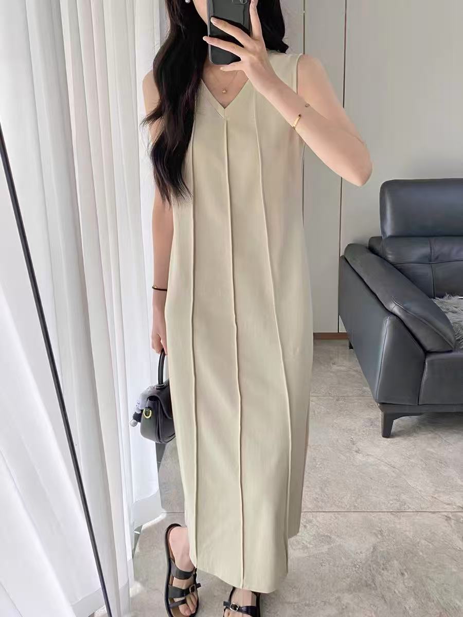 骨格ウェーブ ノースリーブ Vネック Iラインワンピースは、ゆったりとした気質を演出しつつも、女性らしいエレガンスを引き立てる一枚。高品質な素材を使用しているため、柔らかくて通気性が良く、夏の暑い日にも快適に過ごせます。 どんなシーンにもマッチするデザインが魅力で、カジュアルな日常使いから特別なイベントまで幅広く活躍します。スタイリッシュな見た目と快適な着心地を両立させ、合わせるアイテムによってさまざまなコーディネートが楽しめます。シンプルでありながら、存在感のある一着としてあなたのファッションを引き立てます。