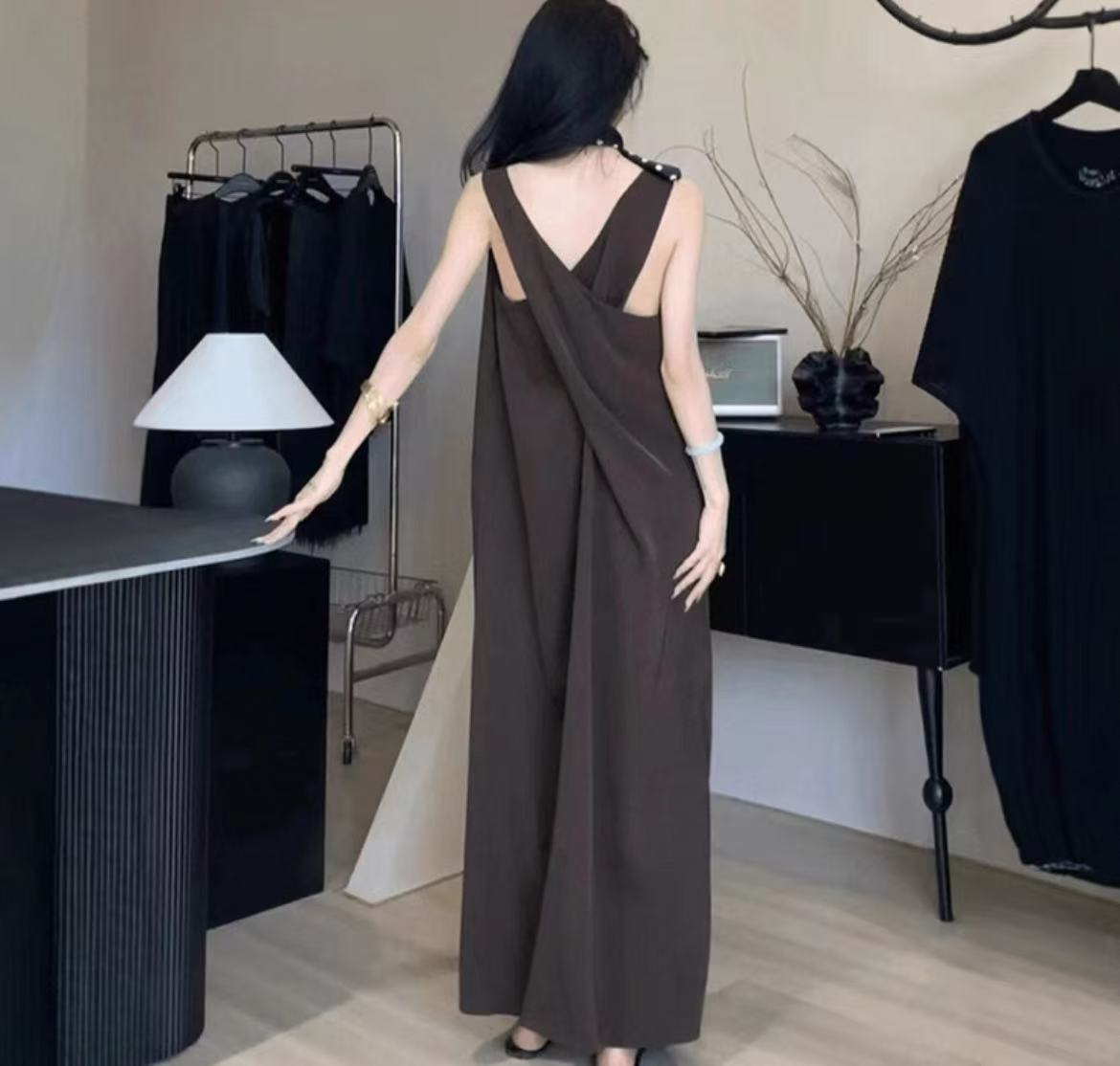 ハイエンドなバックレスデザインが、背中を美しく見せる一枚です。使用されている高品質な素材は、さらりとした肌触りで通気性が良く、暑い夏の日でも快適に過ごせること間違いなしです。エレガントさとファッション性を兼ね備えており、特別なイベントやカジュアルなお出かけなど、さまざまなシーンで活躍します。