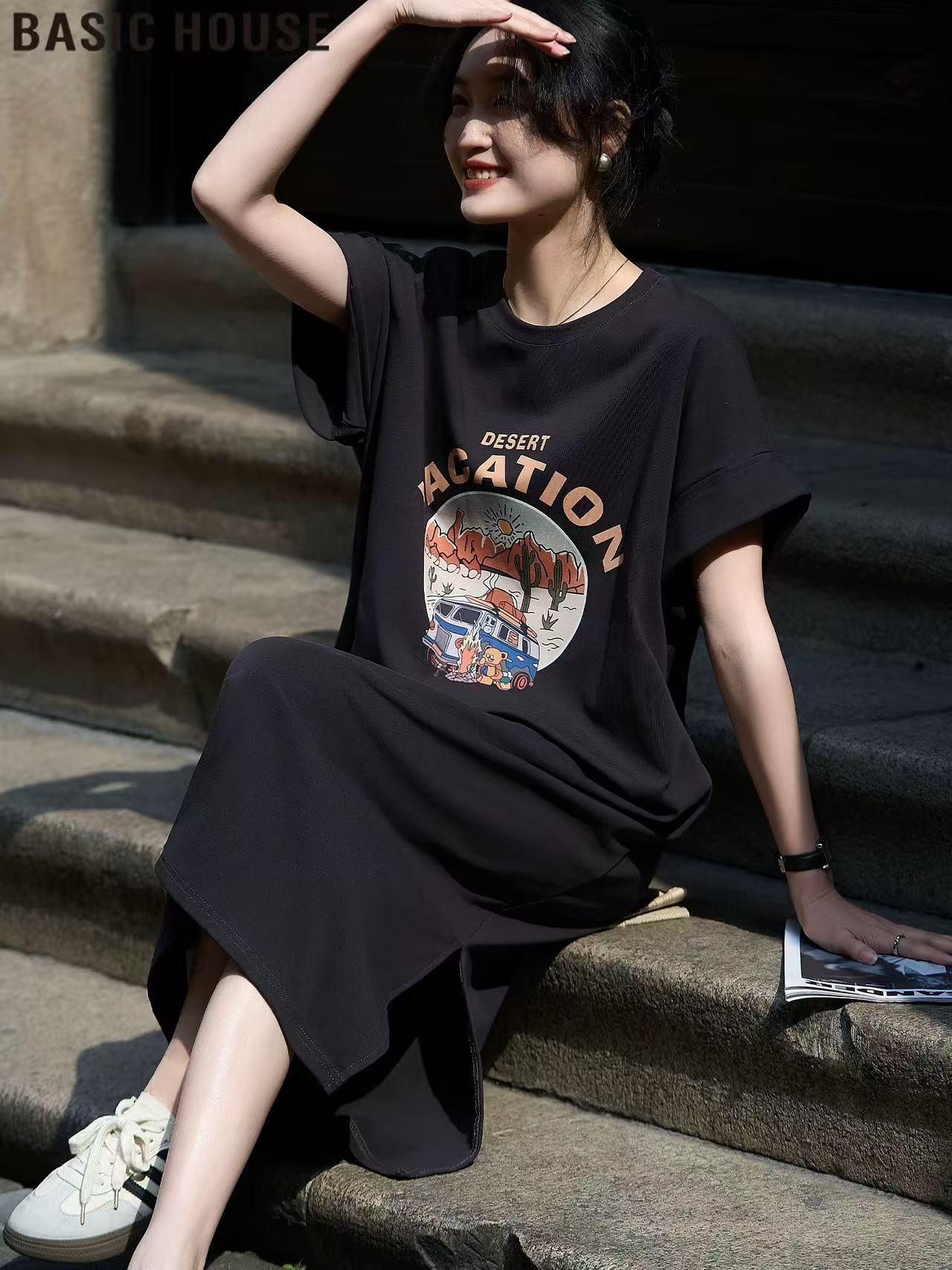 骨格ウェーブ プリントTシャツ Iライン ワンピース