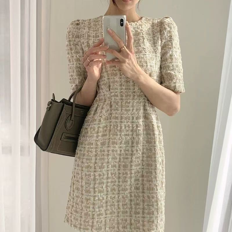 上品さと可愛らしさをバランスよく引き出してくれる、骨格ウェーブ向けの映えワンピースです。 ウエストをしっかりマークするデザインで、すっきりとしたシルエットに。ツイード調素材がシーズンムードを高めつつ、ほんのりクラシカルな印象もプラスしてくれます。 軽やかな着心地で、一日中快適に過ごせるのも嬉しいポイント。デートや女子会、カフェなどのお出かけシーンでもしっかり存在感を発揮します。