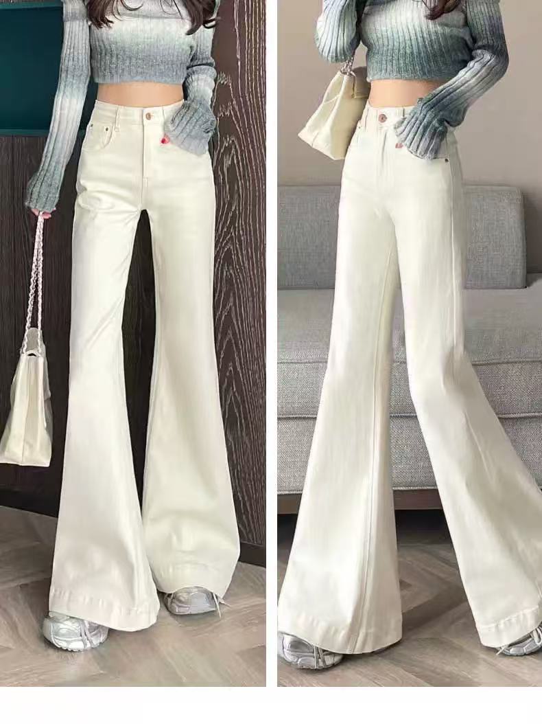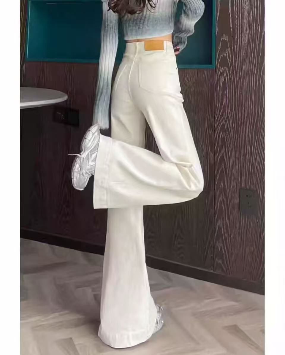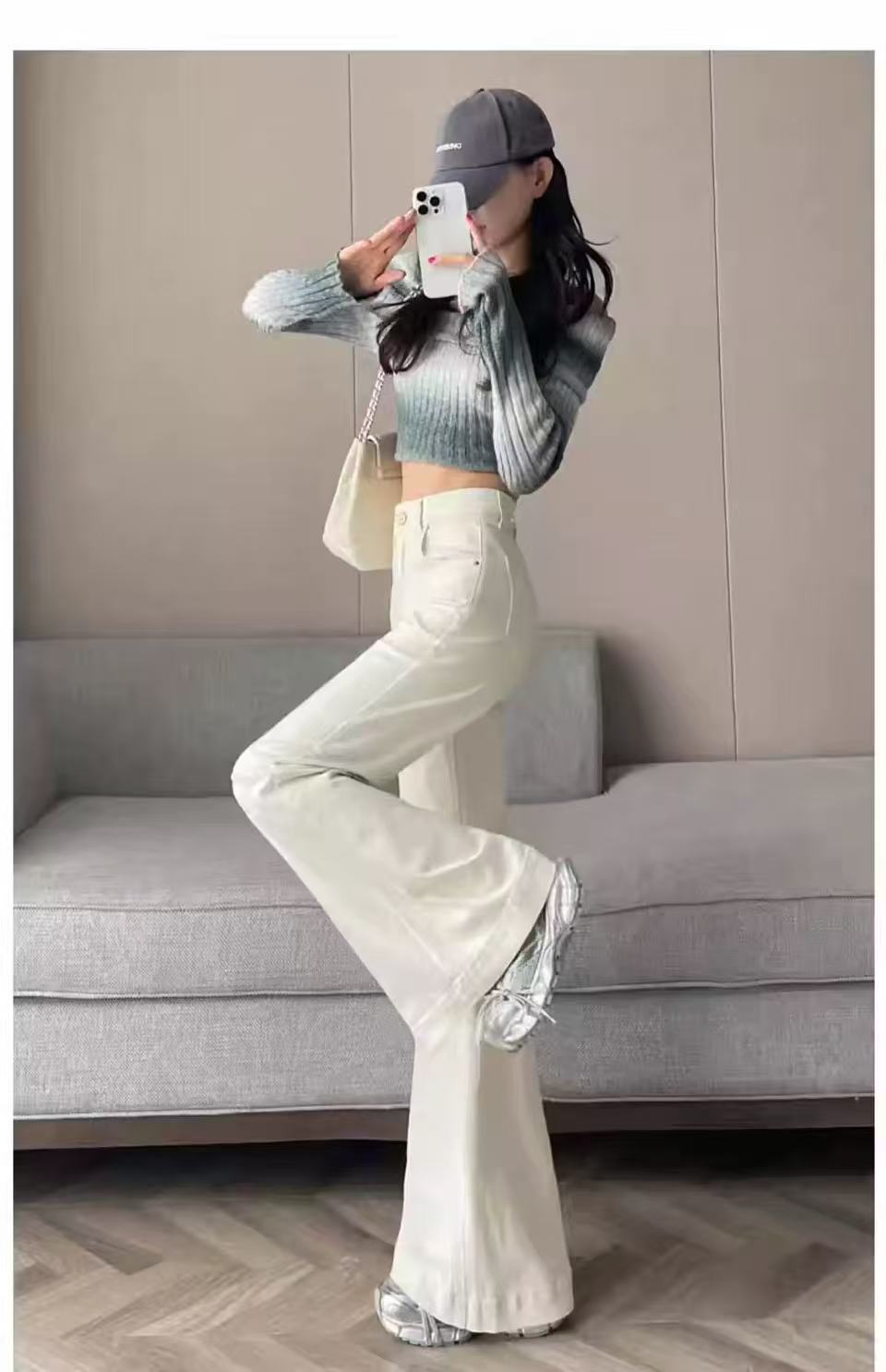 このワイドレッグフレアパンツは、ハイウエストデザインが特徴で、脚長効果を強調し、美しいシルエットを作り出します。洋ナシ型のシルエットにフィットし、体型を気にせずにおしゃれを楽しむことができます。また、伸縮性に優れているため、動きやすさも兼ね備えています。