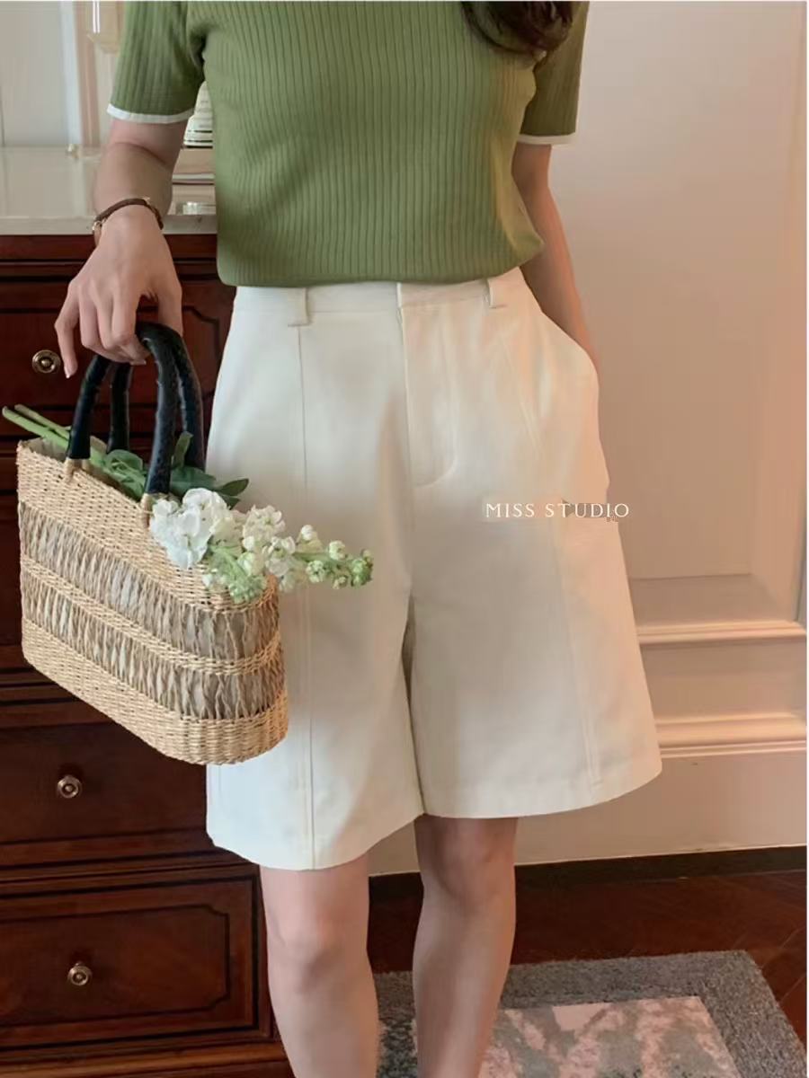 骨格ウェーブ ハイウエスト カジュアルルーズショートパンツ