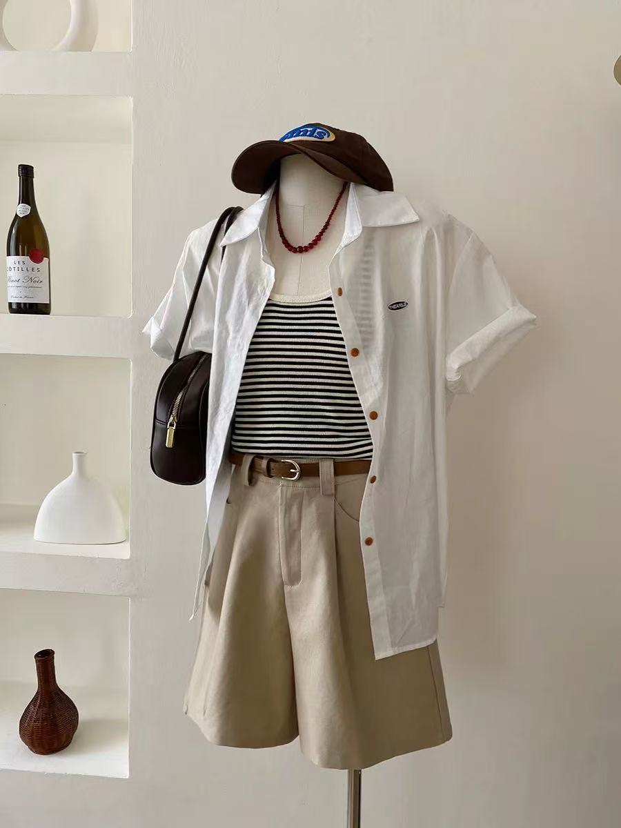 高品質のウォッシュドコットンを使用したハーフパンツは、夏にぴったりのスタイリッシュなアイテム。伸縮性のあるハイウエストとスリムフィット設計により、どんな体型にもフィットし、快適な着用感を提供します。柔らかさと通気性を兼ね備えており、暑い季節でも爽やかに過ごせます。 リラックスしたスタイルを演出しつつ、カジュアルにもエレガントにもコーディネートできる万能なアイテムです。さまざまなトップスと合わせることで、季節を問わず活躍すること間違いなしです。
