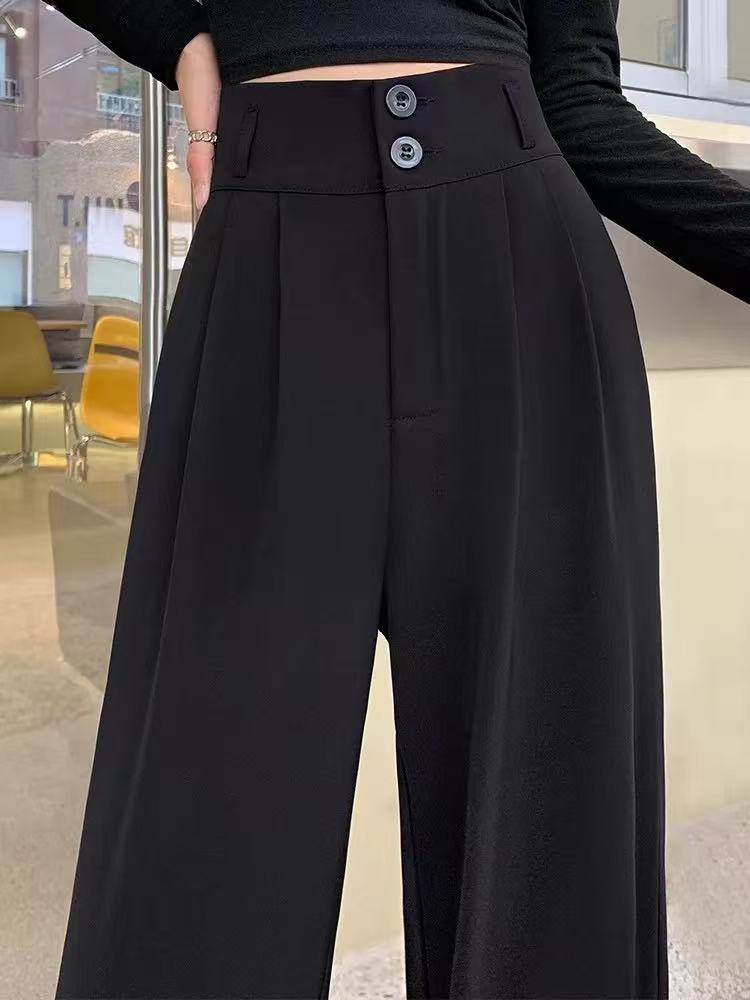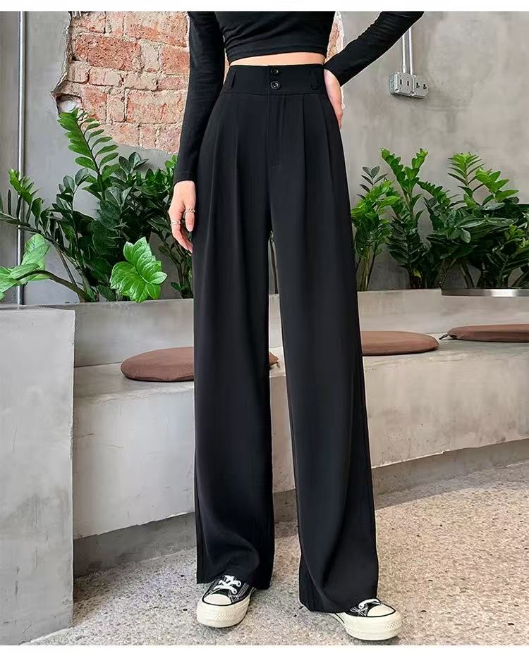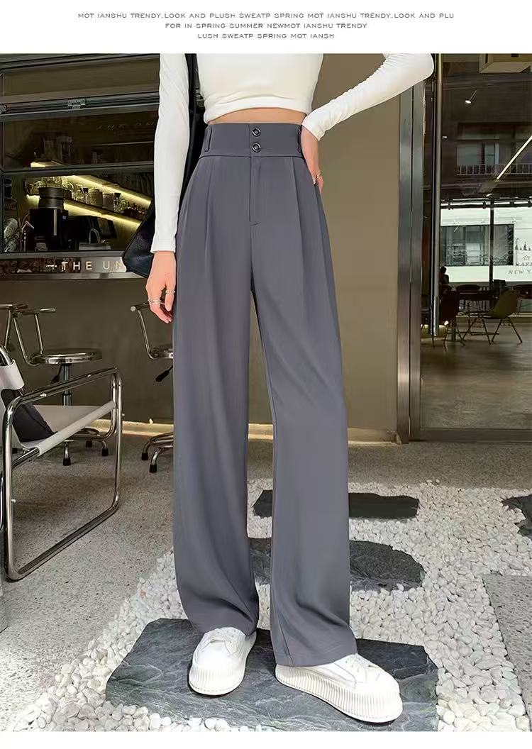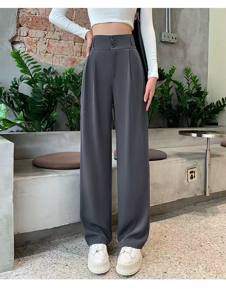 骨格ウェーブ ハイウエスト スリミングワイドストレートパンツ