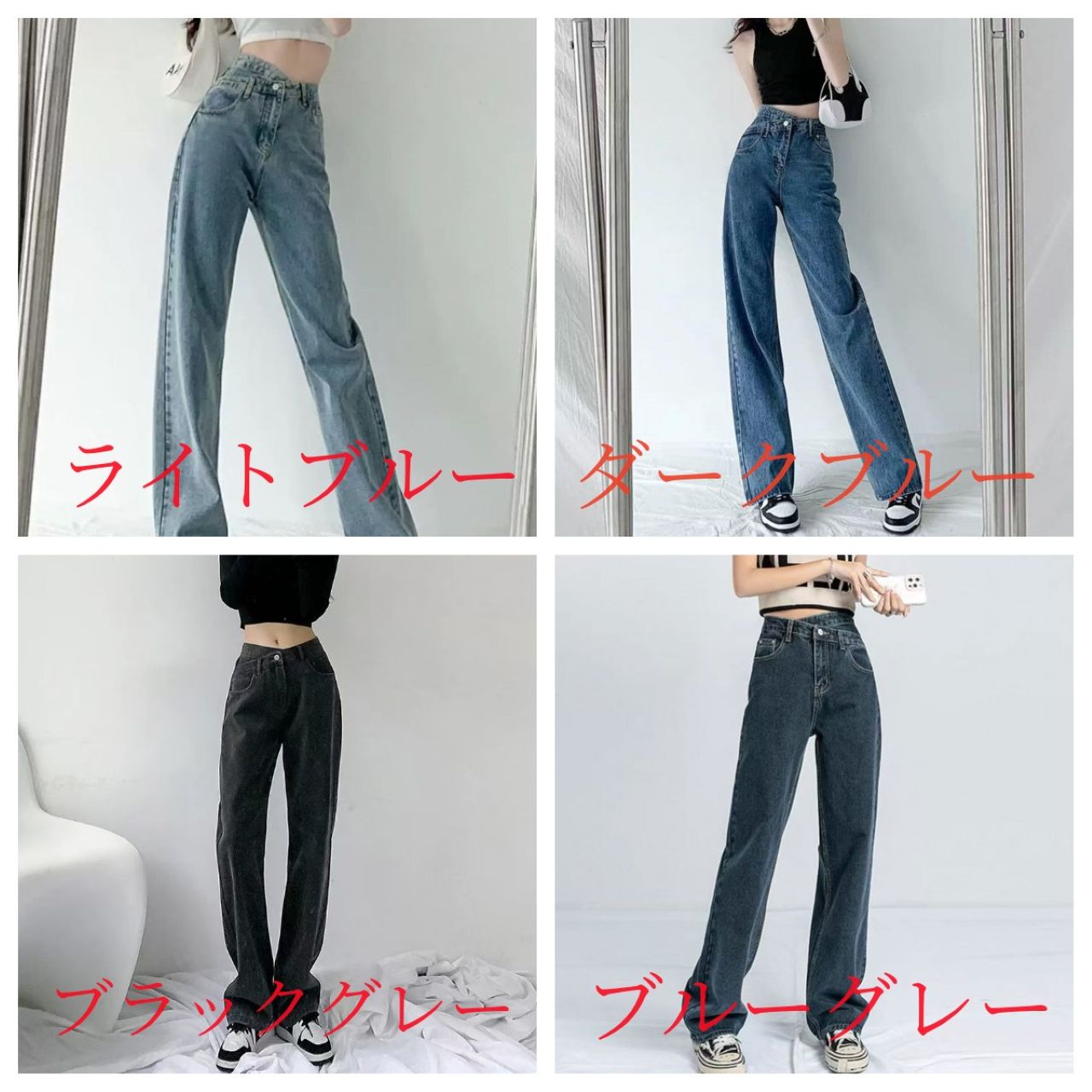 骨格デザインハイウエスト着痩せ効果デニムジーンズ