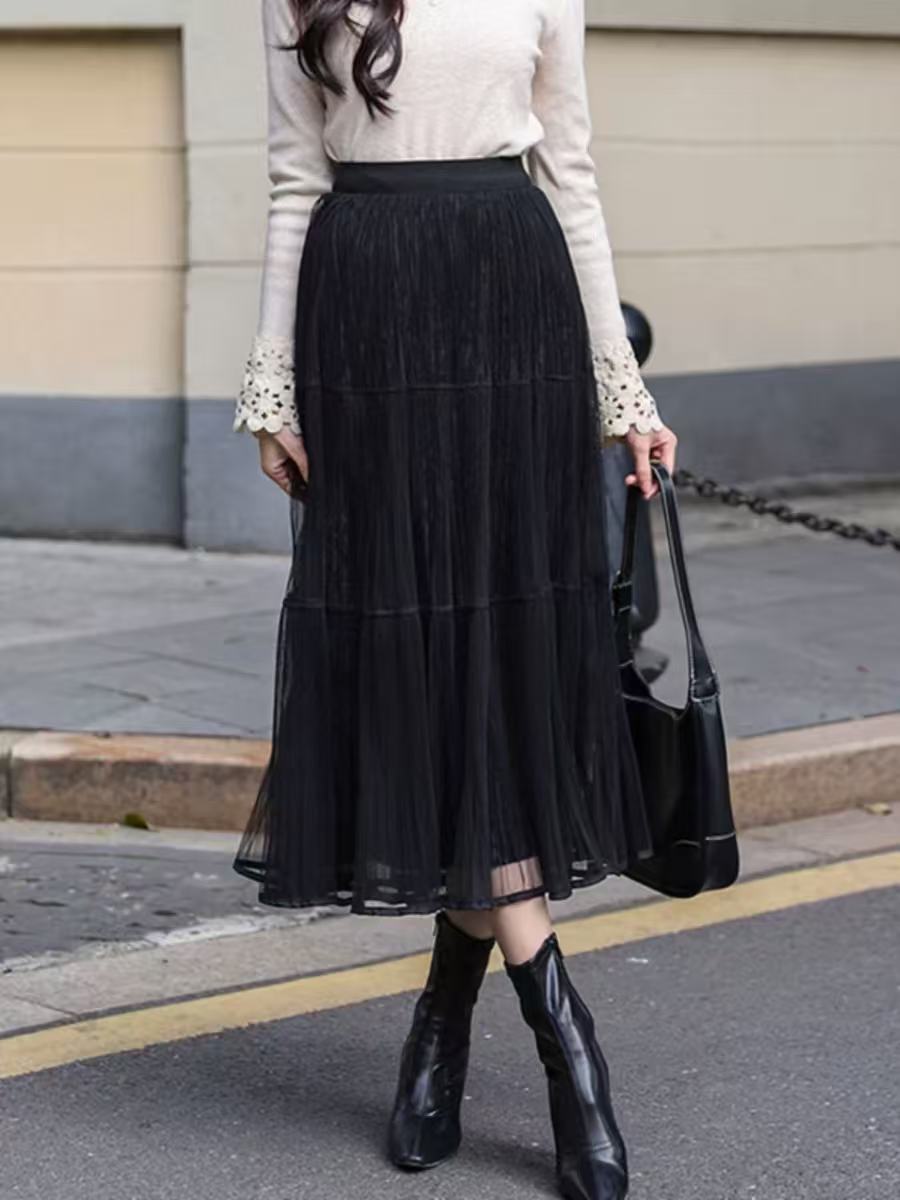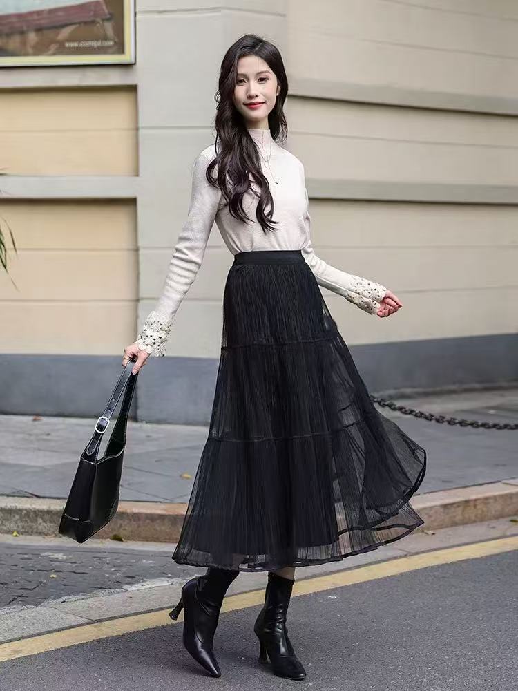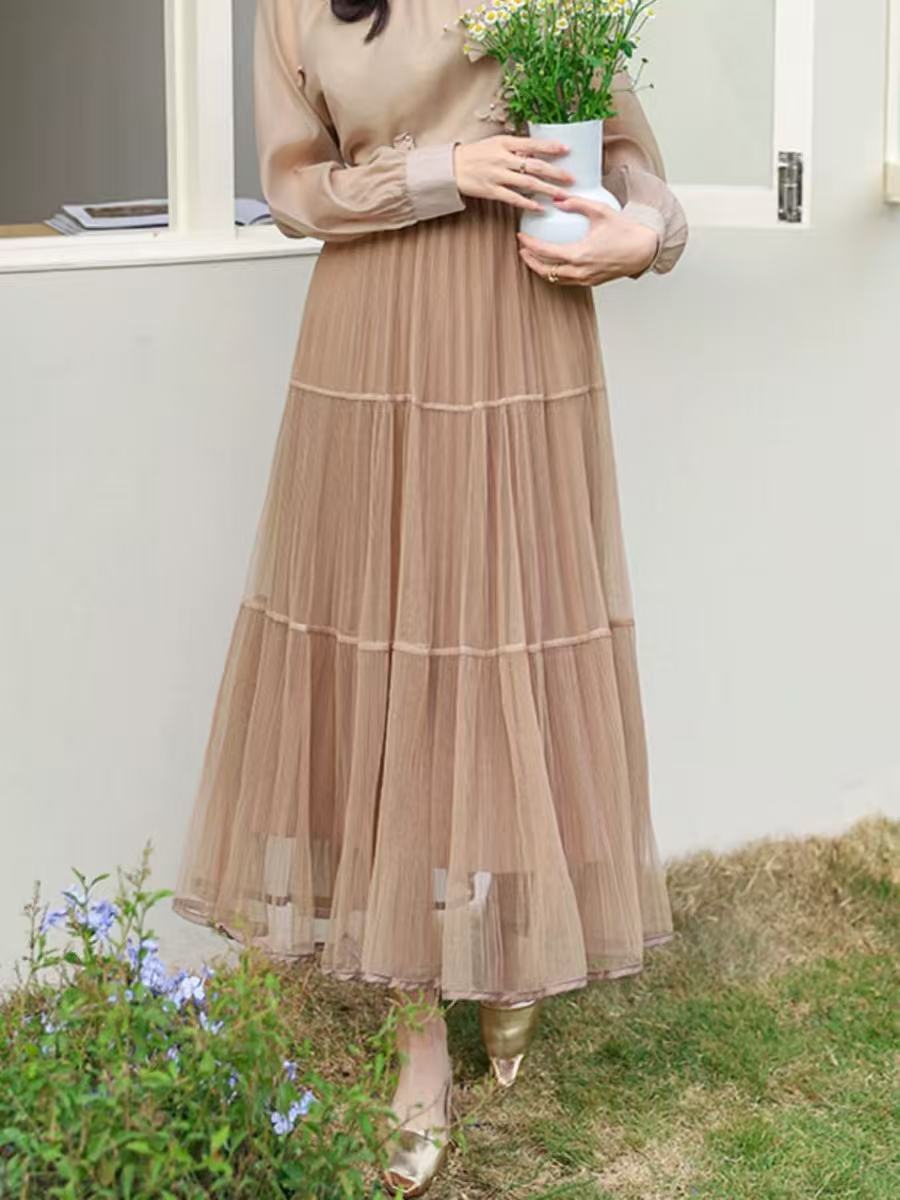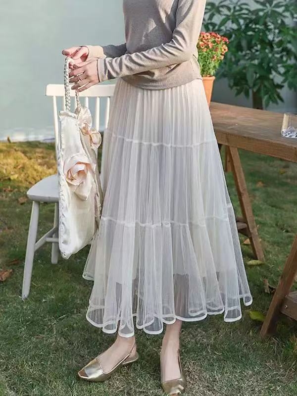 骨格ウェーブ向けフレアチュールスカート。美しくフィットするシルエットと軽やかなチュール素材が女性らしさを演出。フレアデザインで裾が優雅に広がり、360度どこから見ても美しいラインを楽しめます。カジュアルから特別なシーンまで活躍するフェミニンな一着です。
