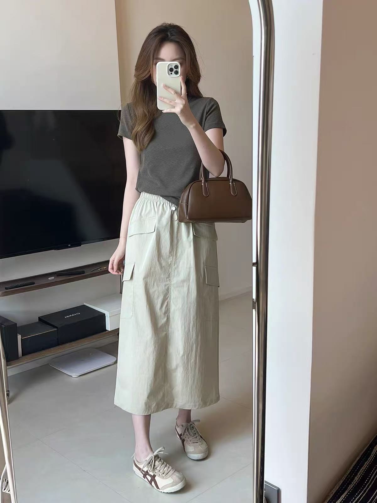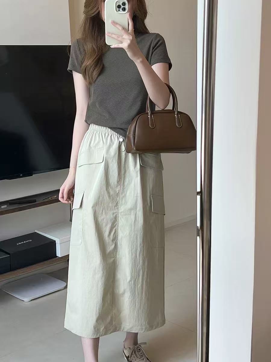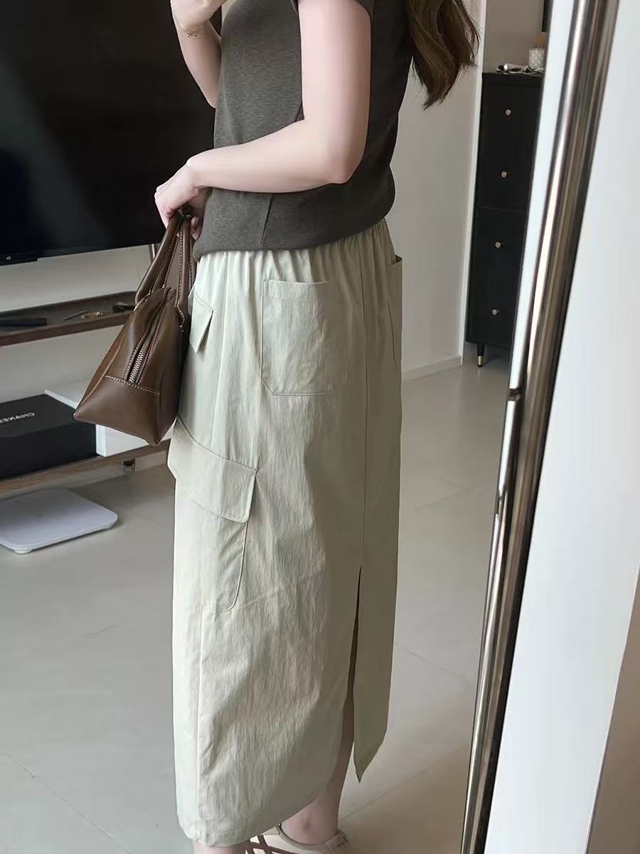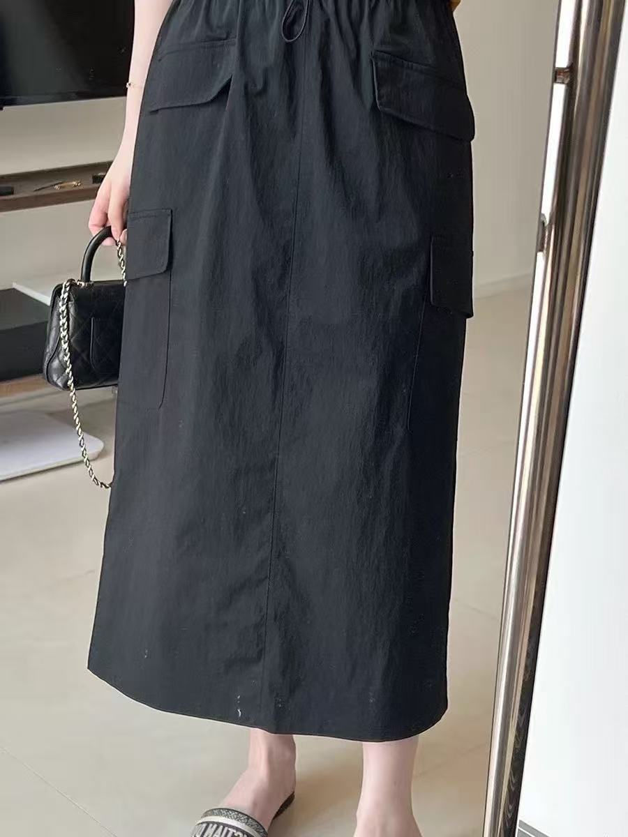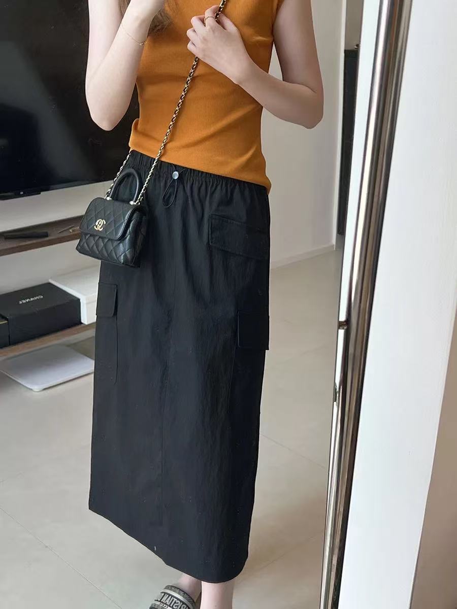 骨格ウェーブ ハイウエストカーゴロングスカート