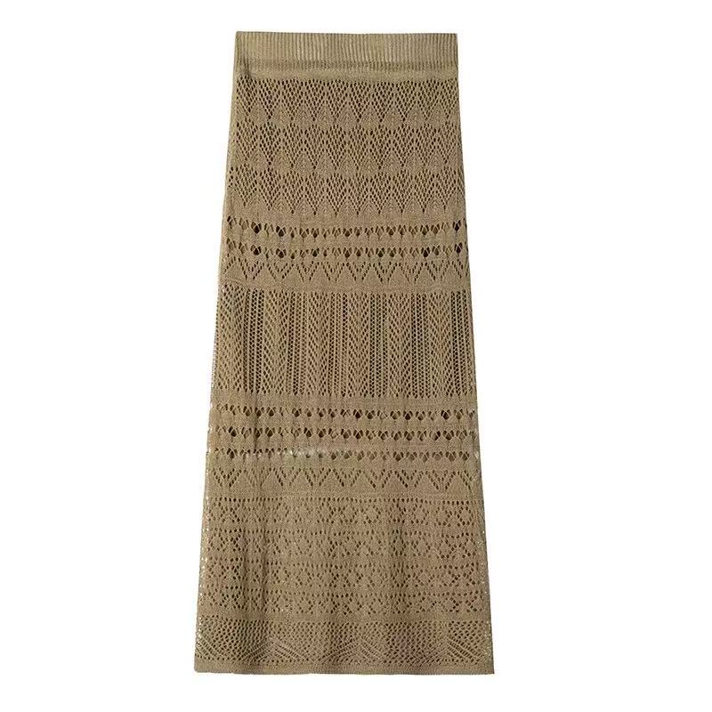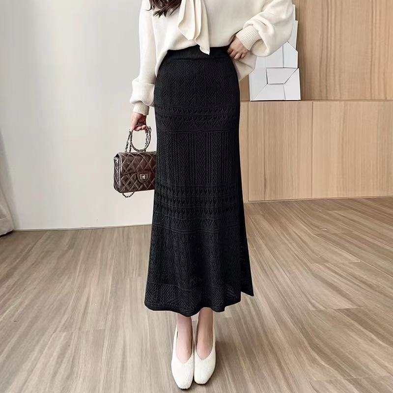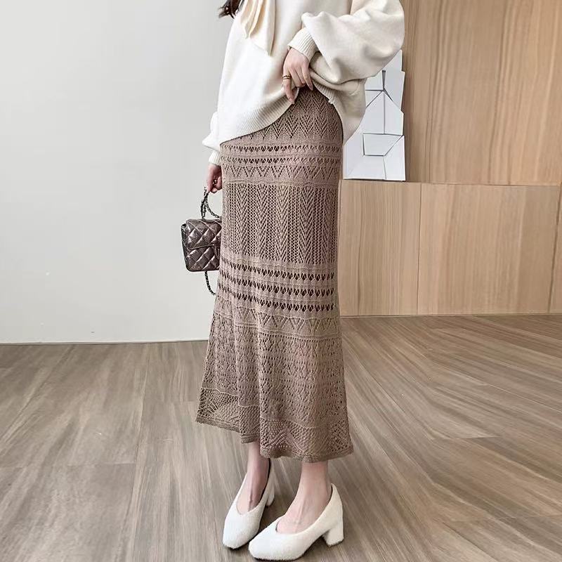 骨格ウェーブ クロシェ編みニットロングマーメイドスカート