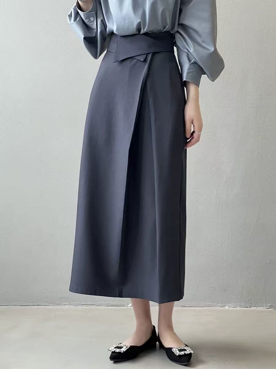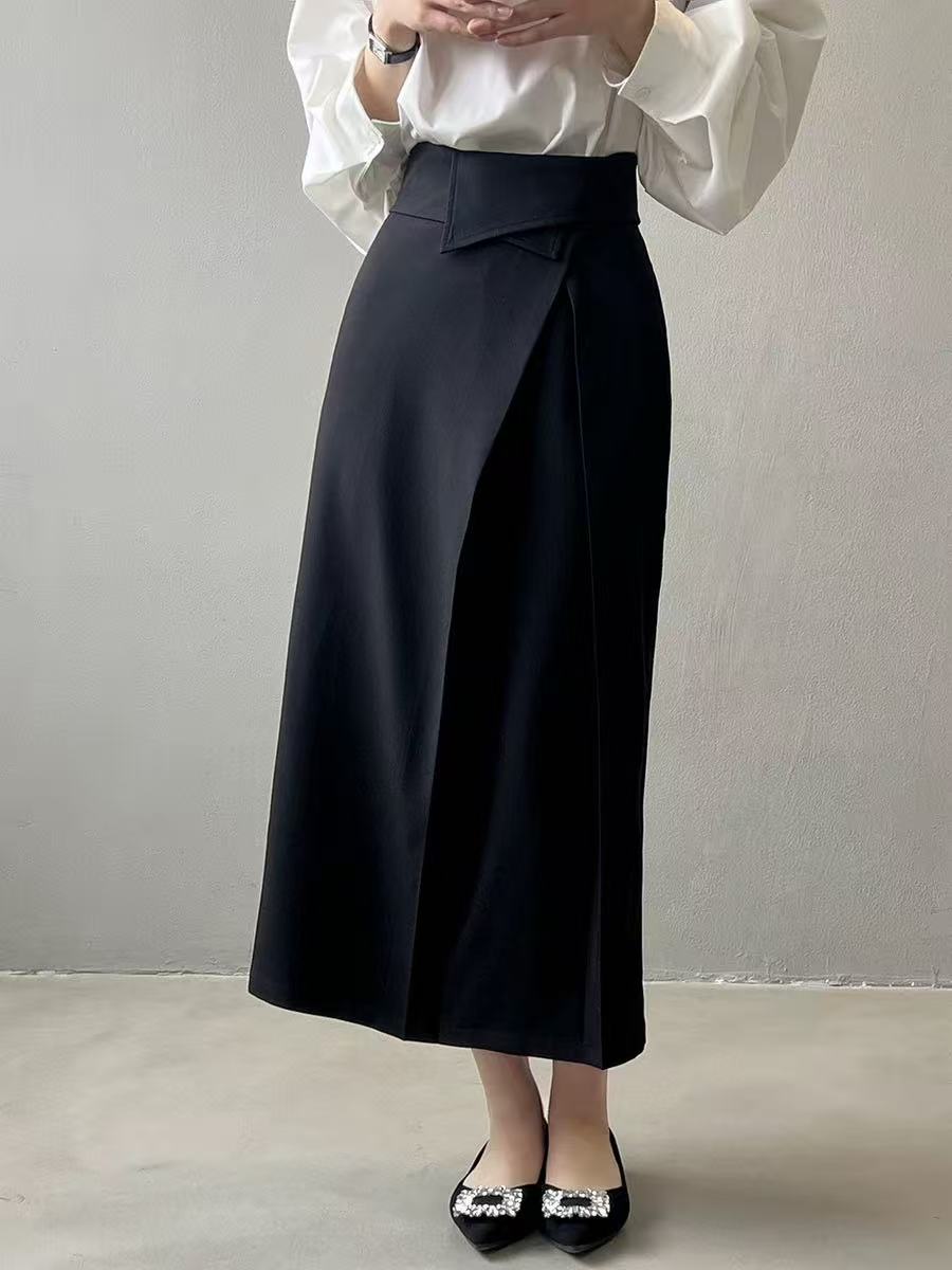 骨格ウェーブ向けアシンメトリーストレートプリーツスカート。美しくフィットするシルエットとアシンメトリーデザインが個性的な印象を演出。流れるストレートラインが脚を美しく見せ、シンプルながら存在感のあるスタイルを叶える一着です。