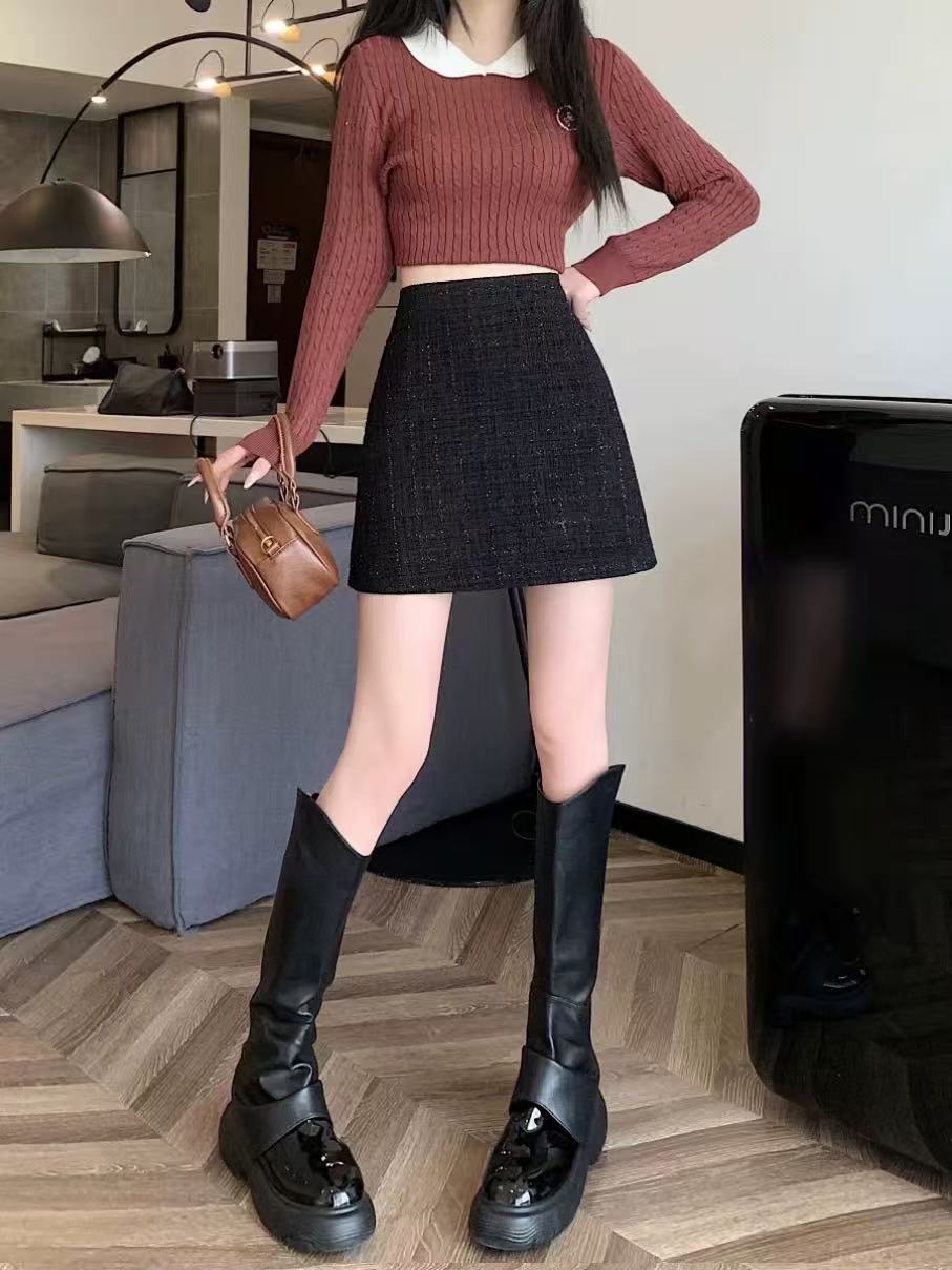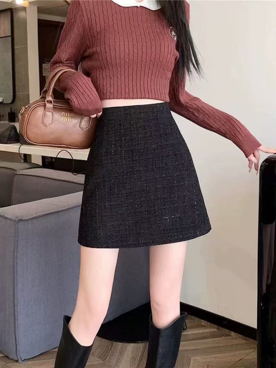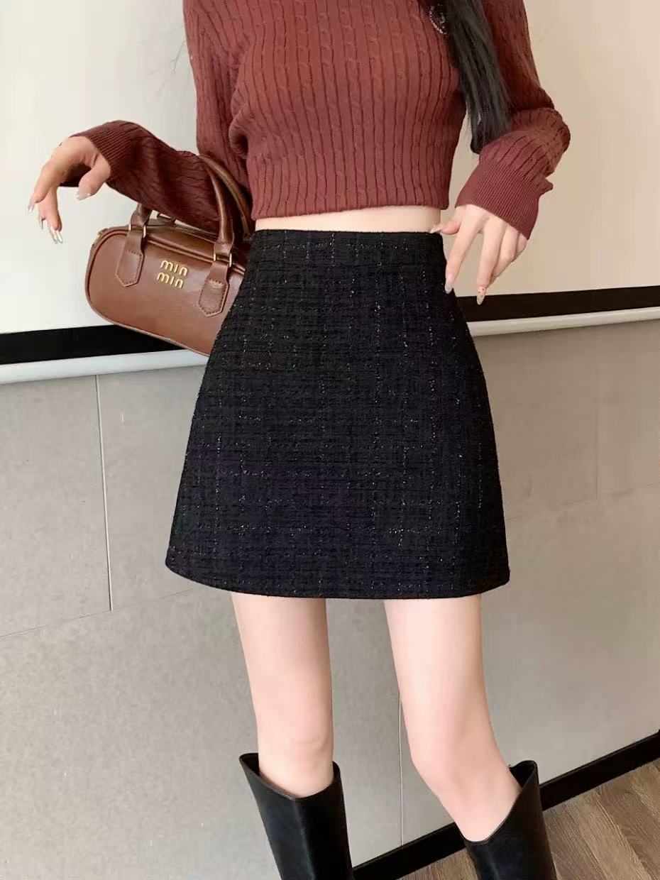 骨格ウェーブ ハイウエストツイードミニ台形スカート