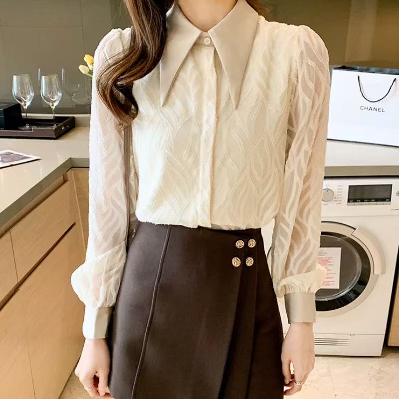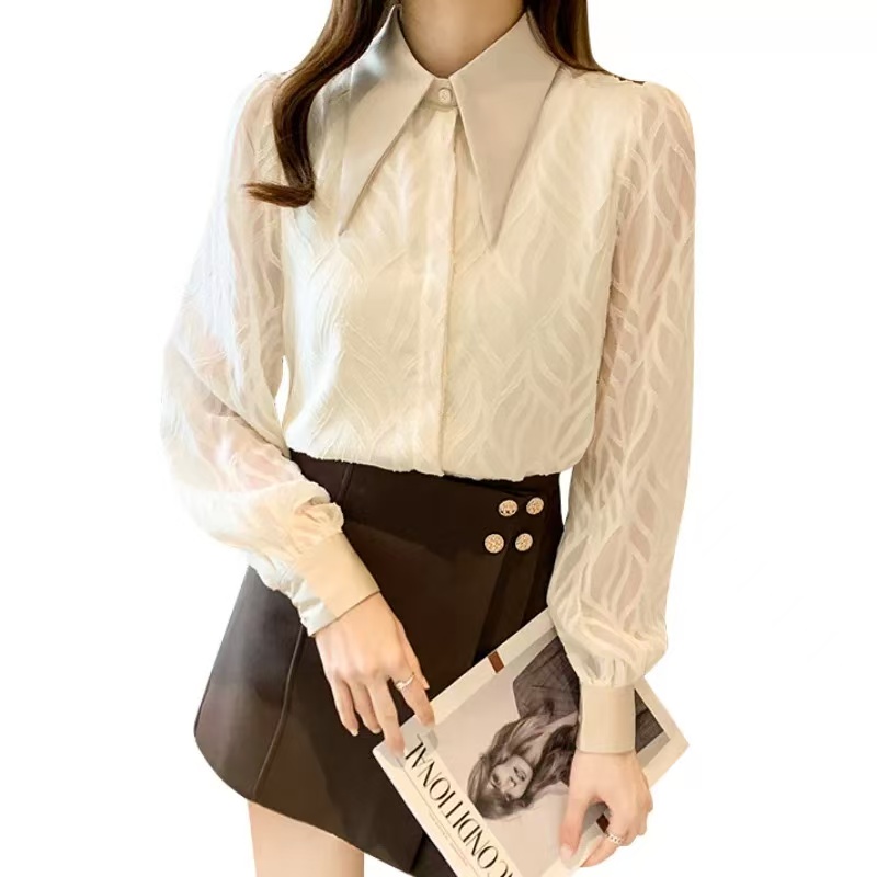 骨格ウェーブ シアーレースカフスデザインブラウス