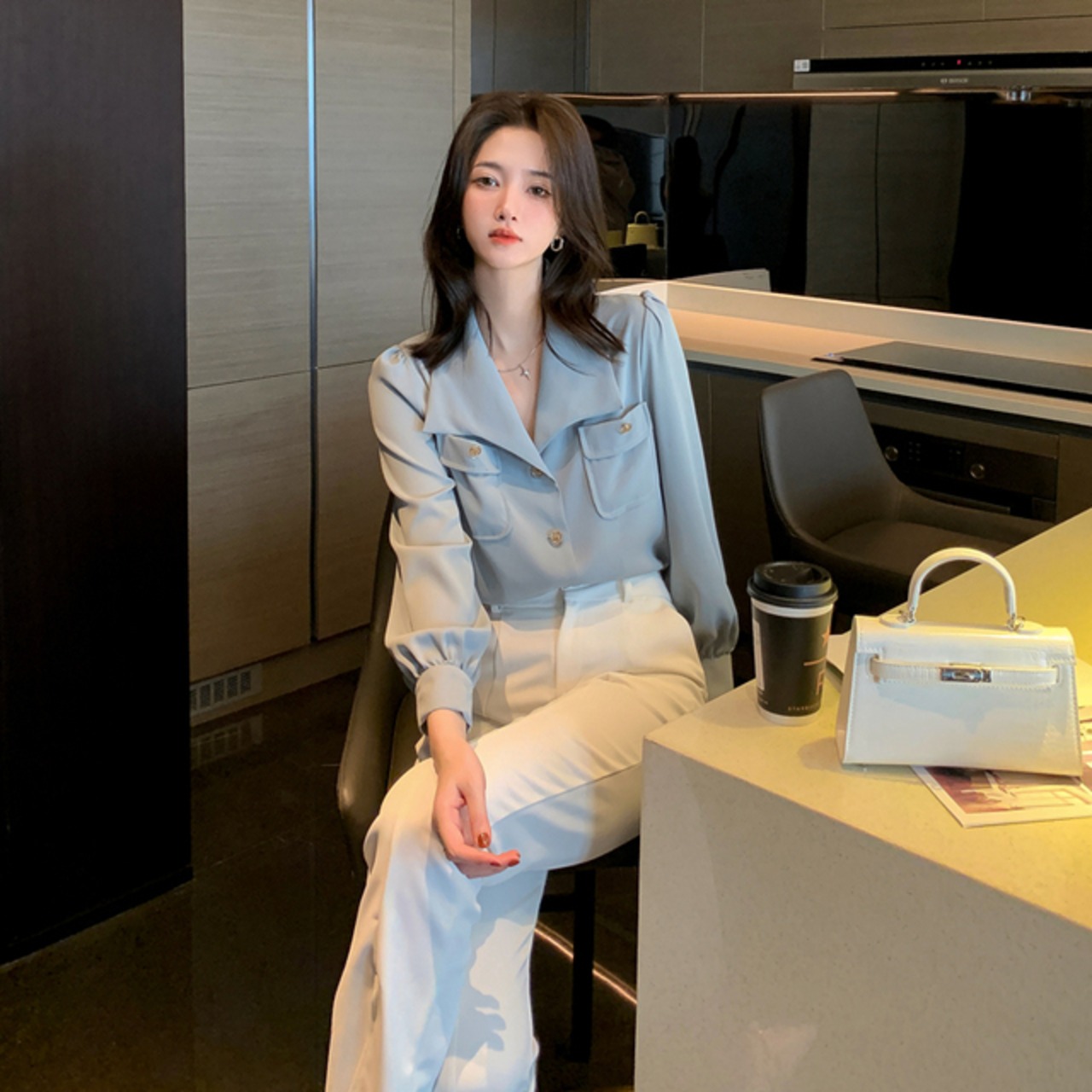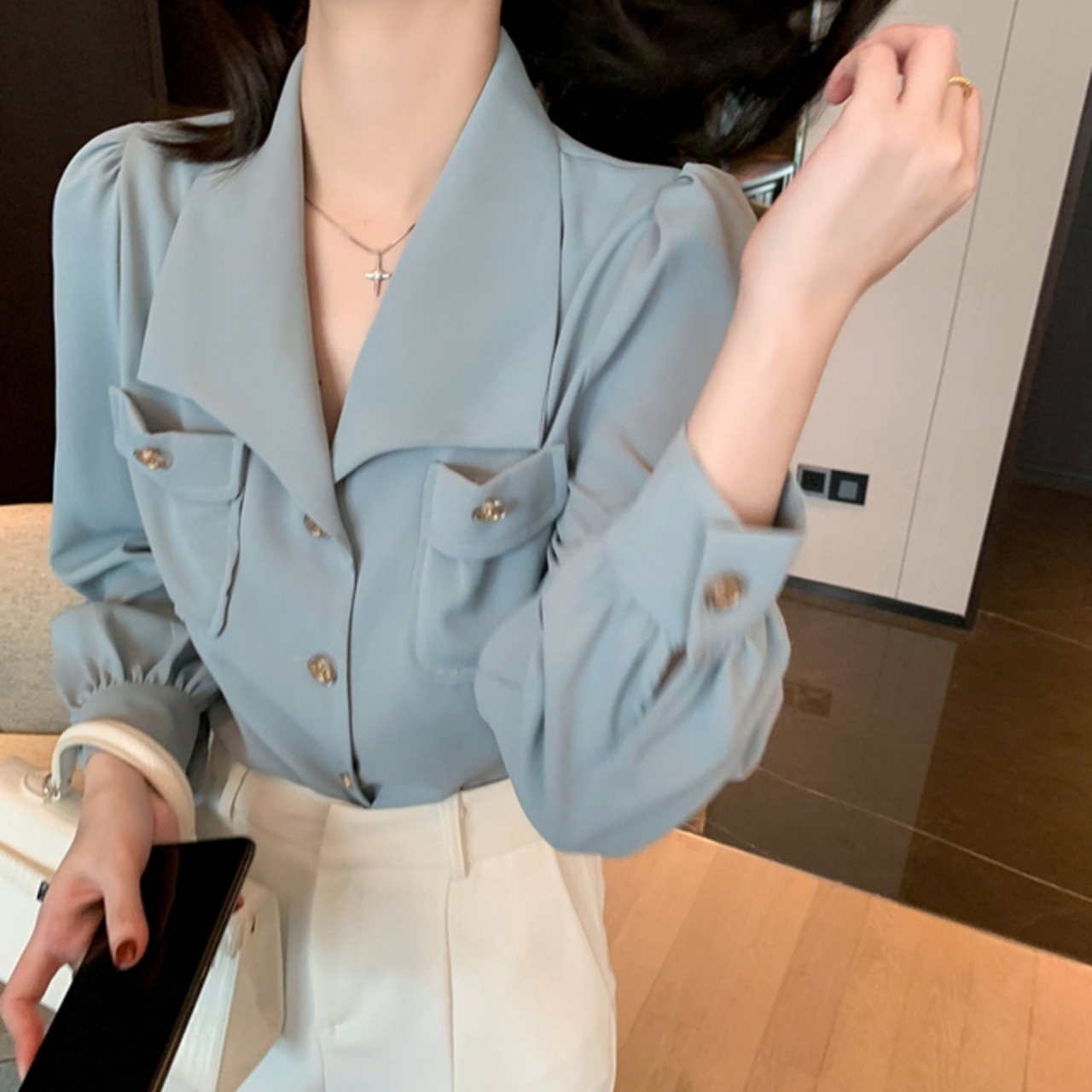 骨格ウェーブ ふんわりシフォン×ビッグカラー シャツブラウス