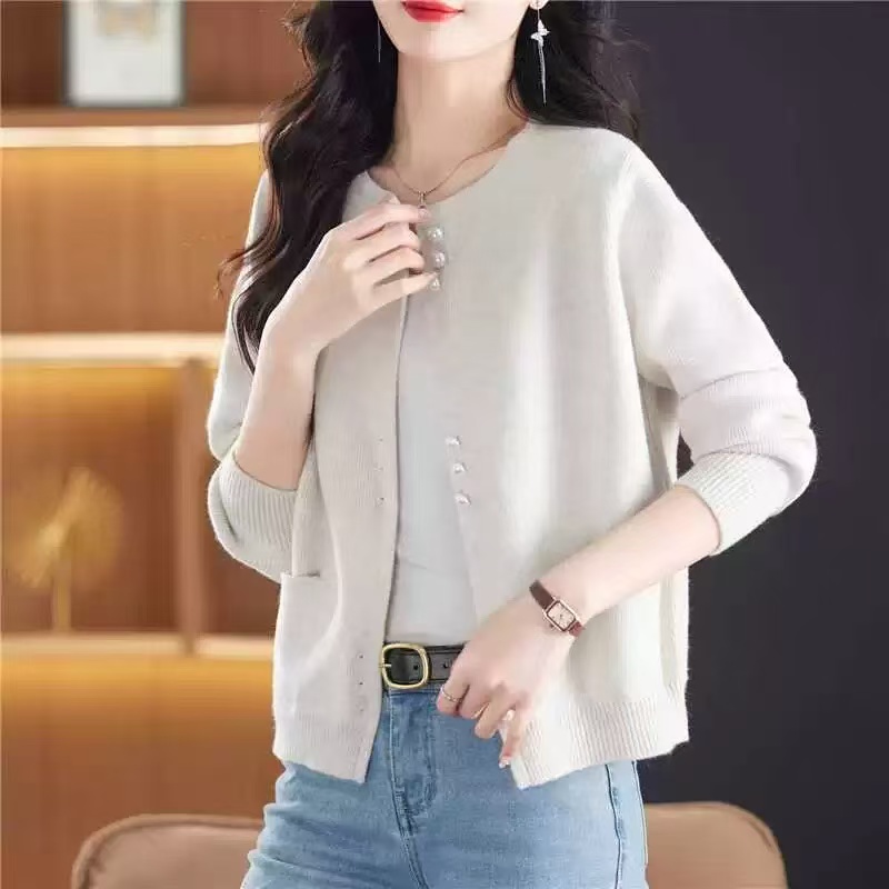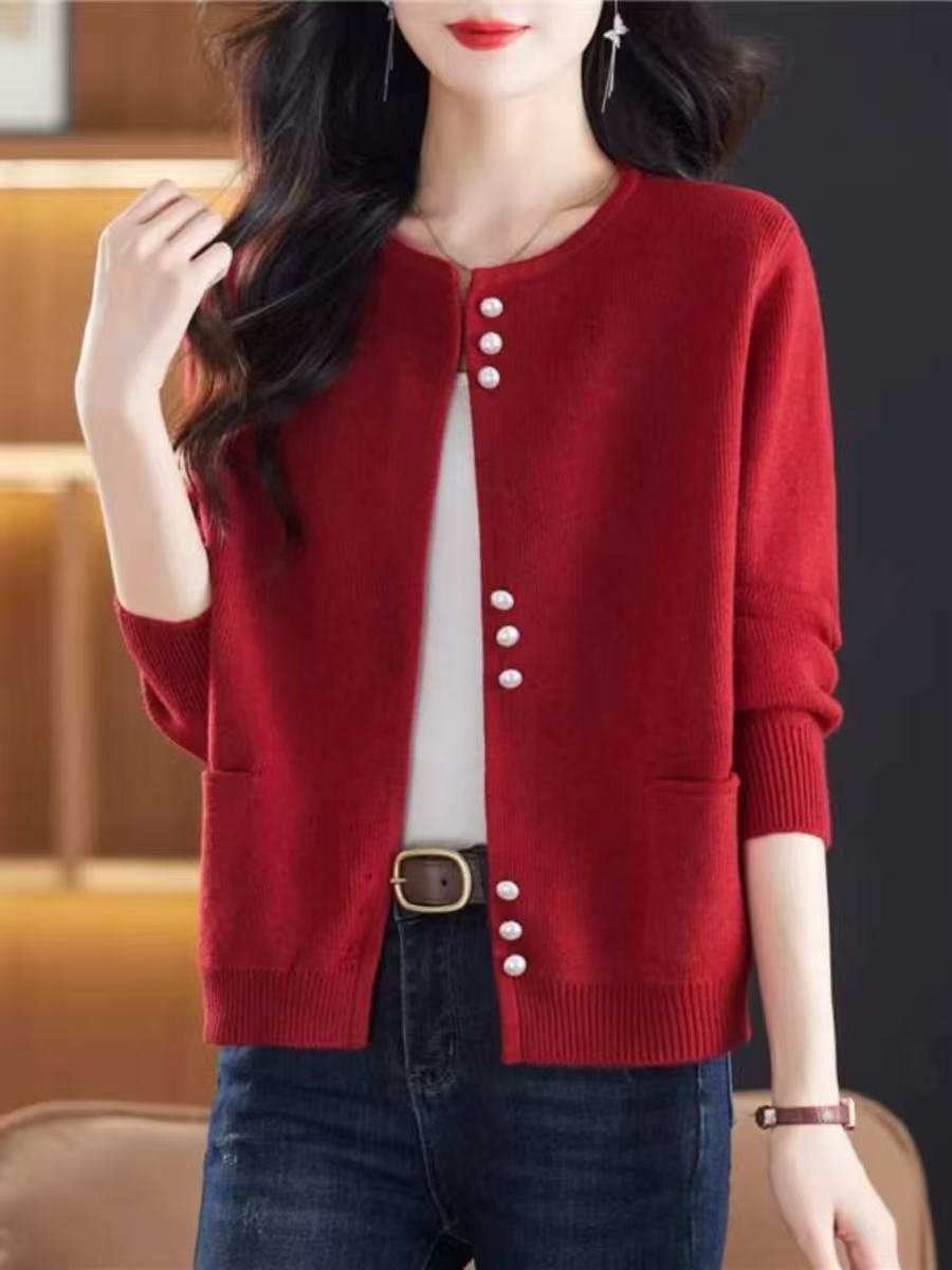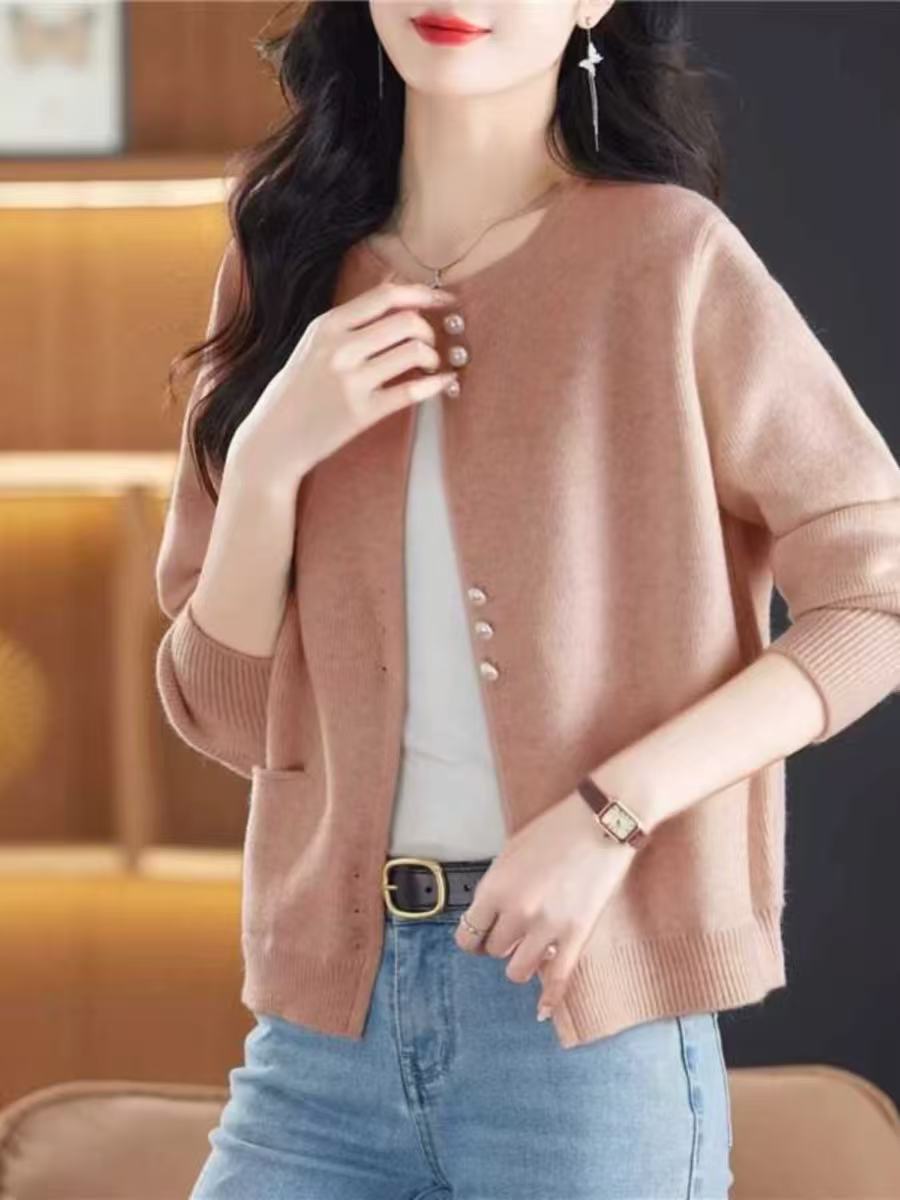 骨格ウェーブに最適なラウンドネックと上品なパールボタンが魅力のニットカーディガンです。柔らかく肌触りの良い素材で快適な着心地を実現し、季節を問わず活躍します。カジュアルからフォーマルまで幅広いスタイルに対応し、洗練された印象を与える一着です。