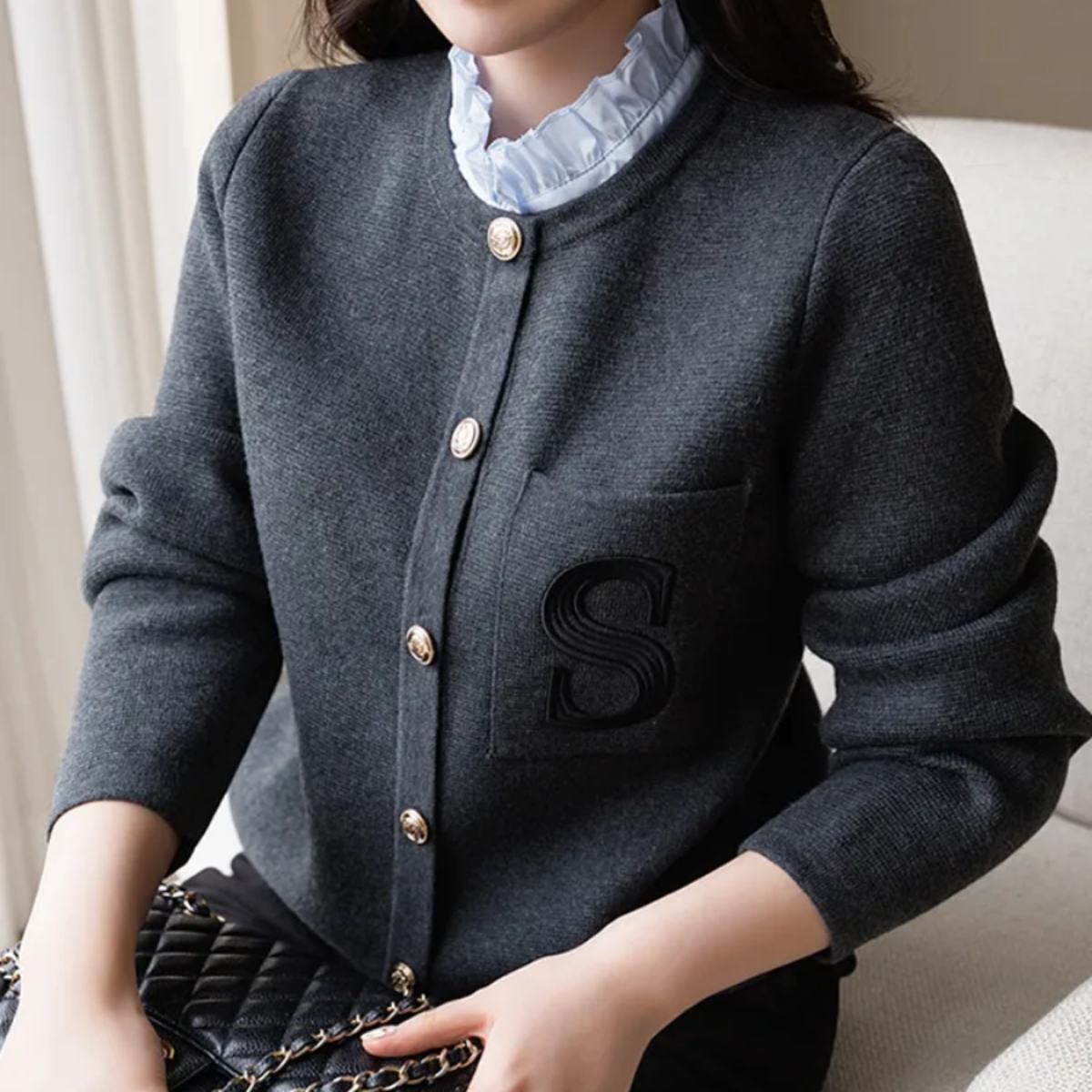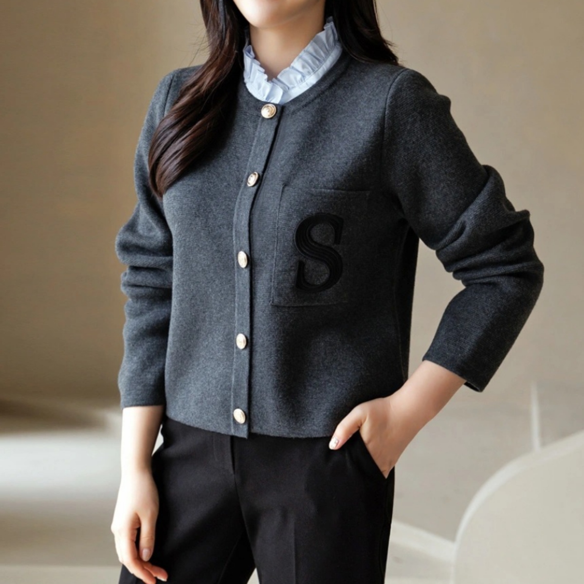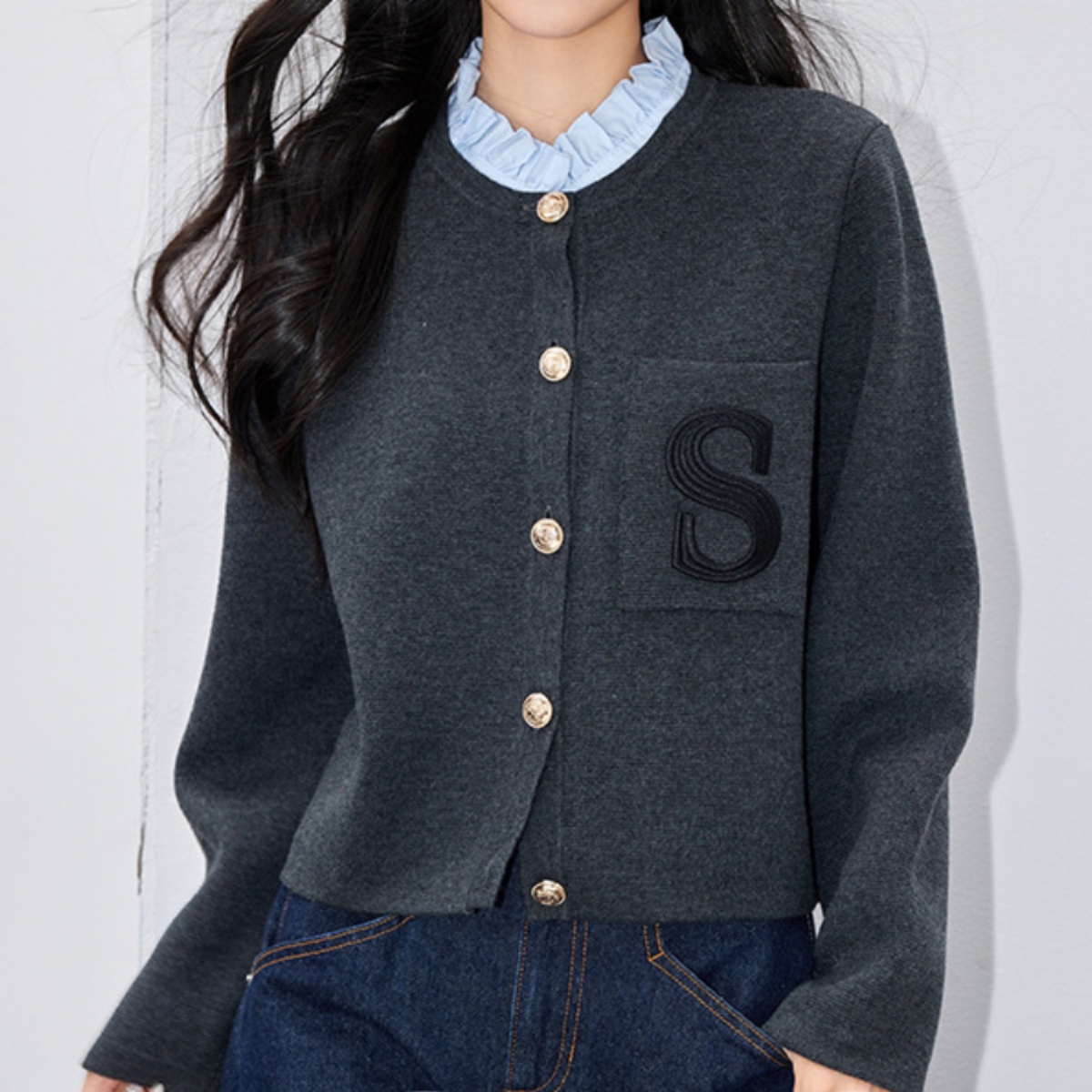 骨格ウェーブさんの理想シルエットを叶える、主役級カーディガンが登場。 顔周りを華やかに彩るフリル襟が、上半身の華奢さを引き立て視線を上へ集め、スタイルアップを実現します。さらに、骨格ウェーブにぴったりのショート丈設計で腰位置を高く見せ、フレアスカートやハイウエストパンツと合わせるだけで脚長黄金比シルエットが完成。 胸元の立体的な「S」ロゴワッペンとゴールドボタンが上品なアクセントを添え、柔らかなニット素材は肌馴染みが良く女性らしい曲線美を美しく演出。デイリーから特別な日まで、着るだけで垢抜ける、ウェーブさんのための計算された一着です。
