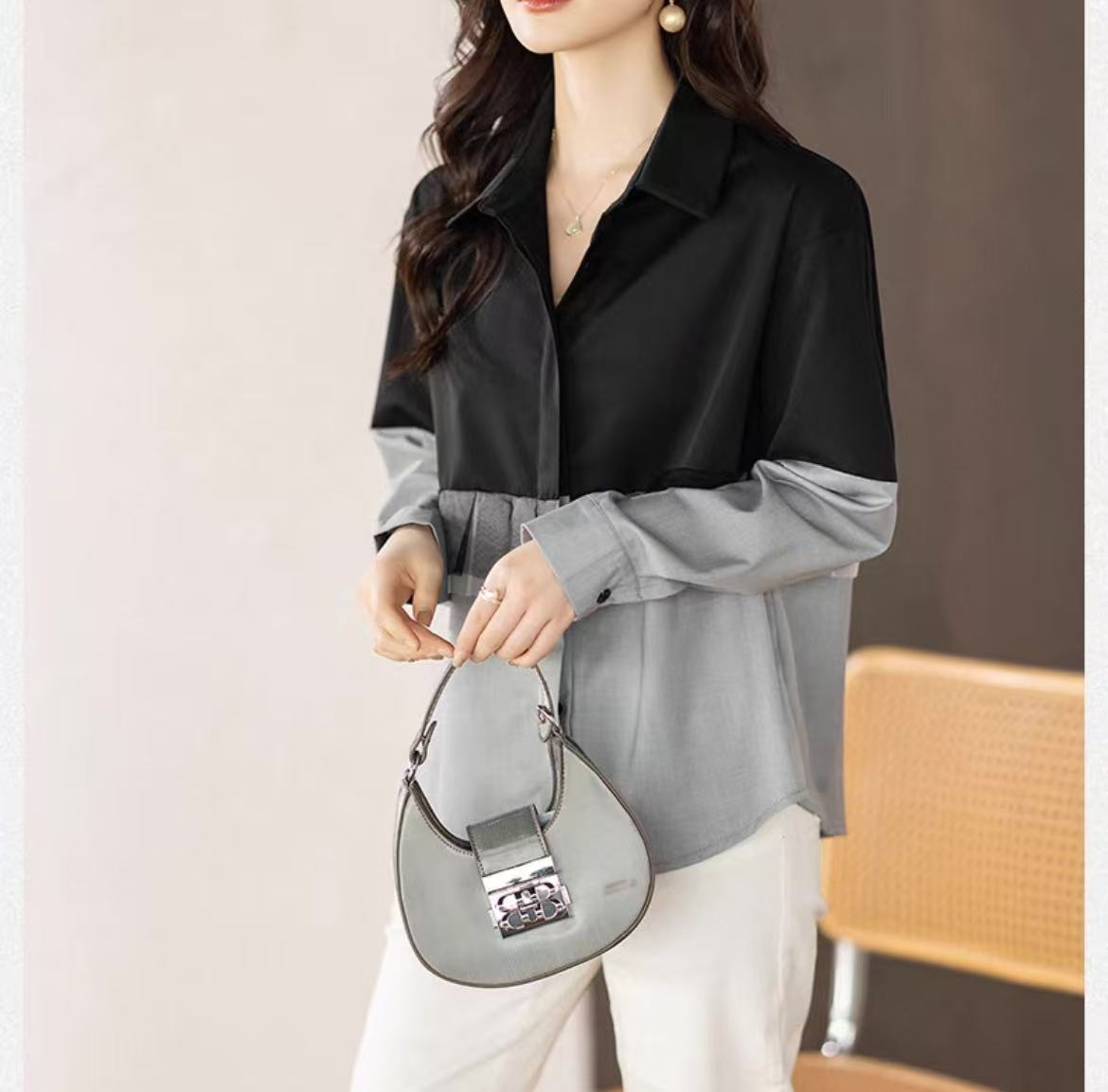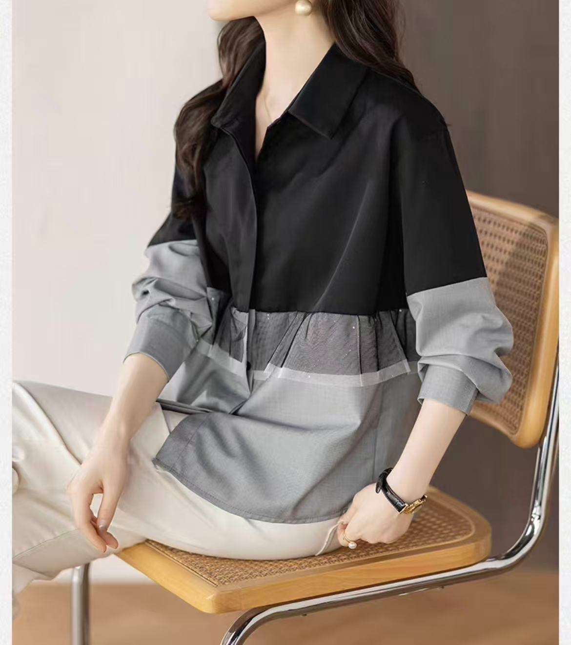 「骨格ウェーブフリル切替シャツ」は、フェミニンさとモダンさを兼ね備えた魅力的な一枚。骨格ウェーブに合うデザインで、フリルが女性らしさを引き立てます。軽やかなコットン素材で肌に優しく、快適な着心地。カジュアルからきれいめまで幅広く活躍します。