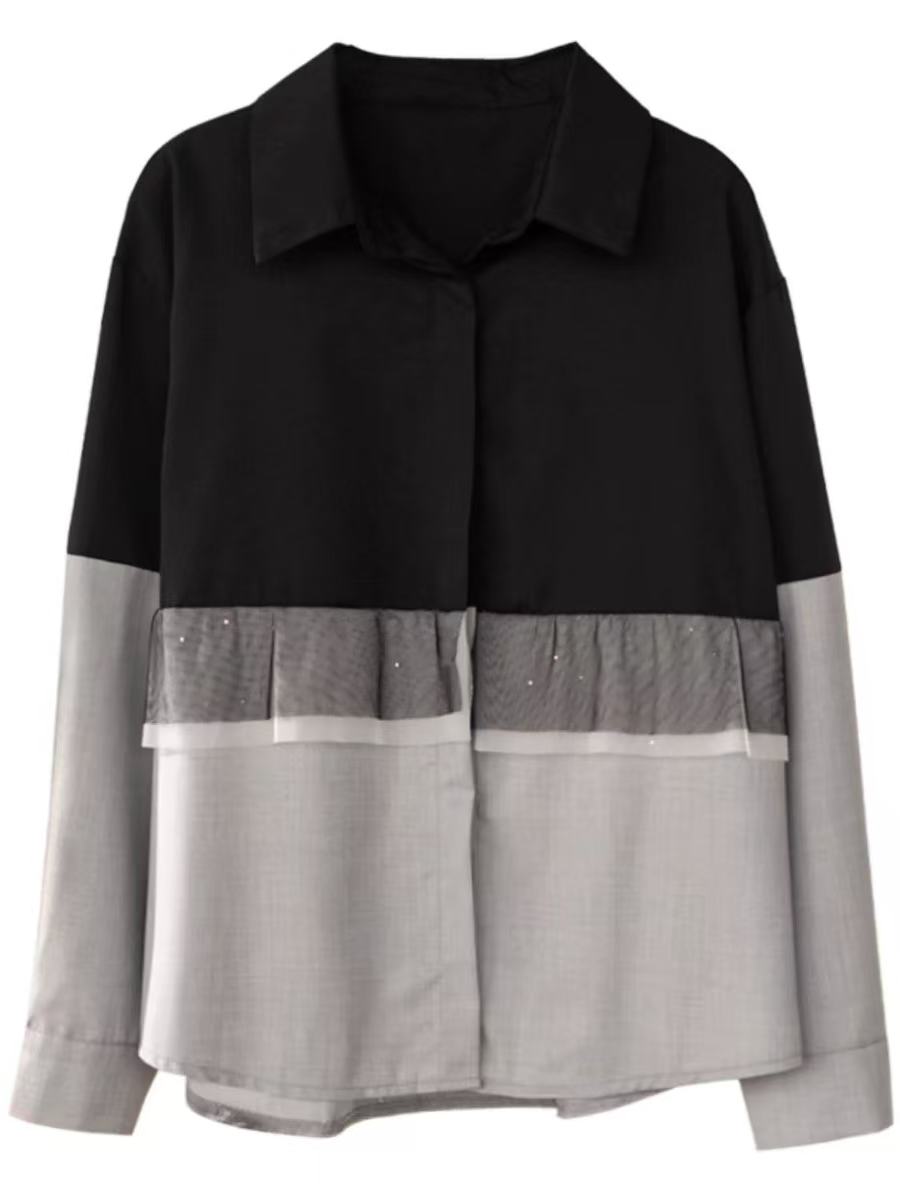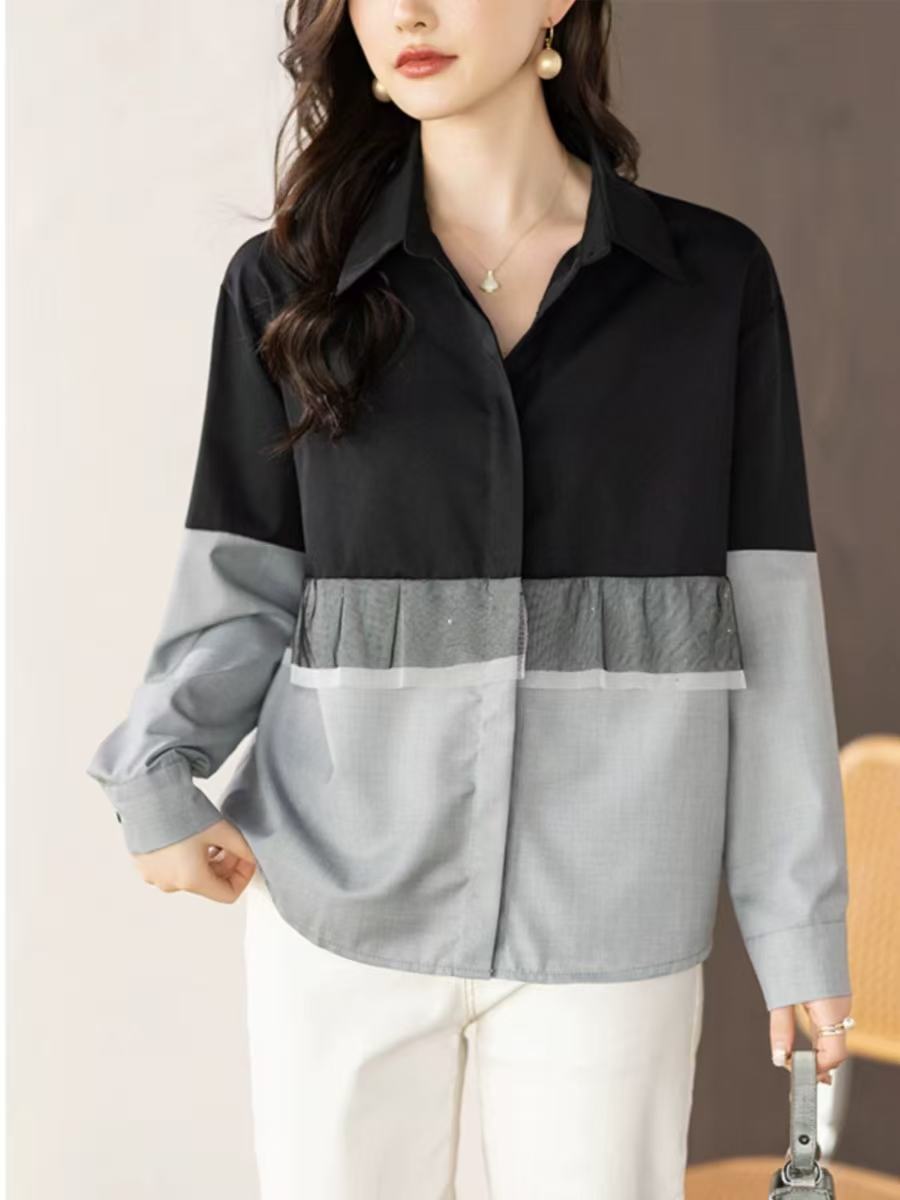 骨格ウェーブ フリル切替シャツ
