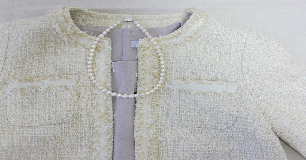 具体的なアイテムとしては、上品なノーカラージャケットや、細かいラメや織り地が特徴のツイードジャケットが挙げられます。