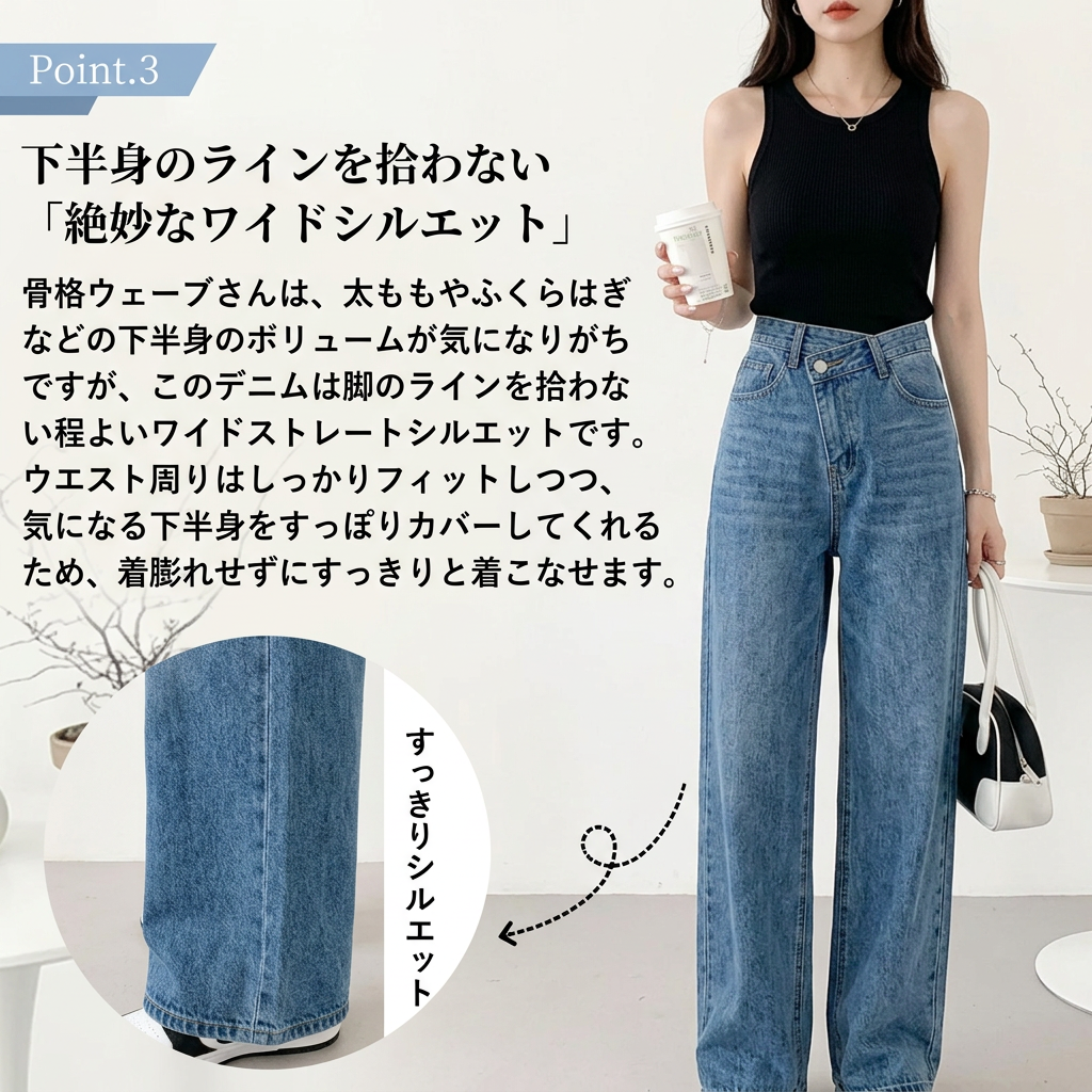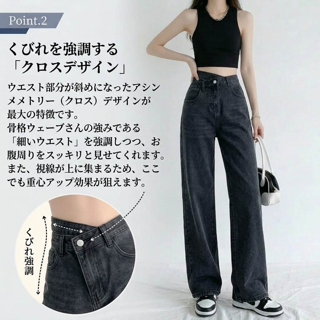 骨格ウェーブ クロスウエスト 着痩せ効果 デニムパンツ