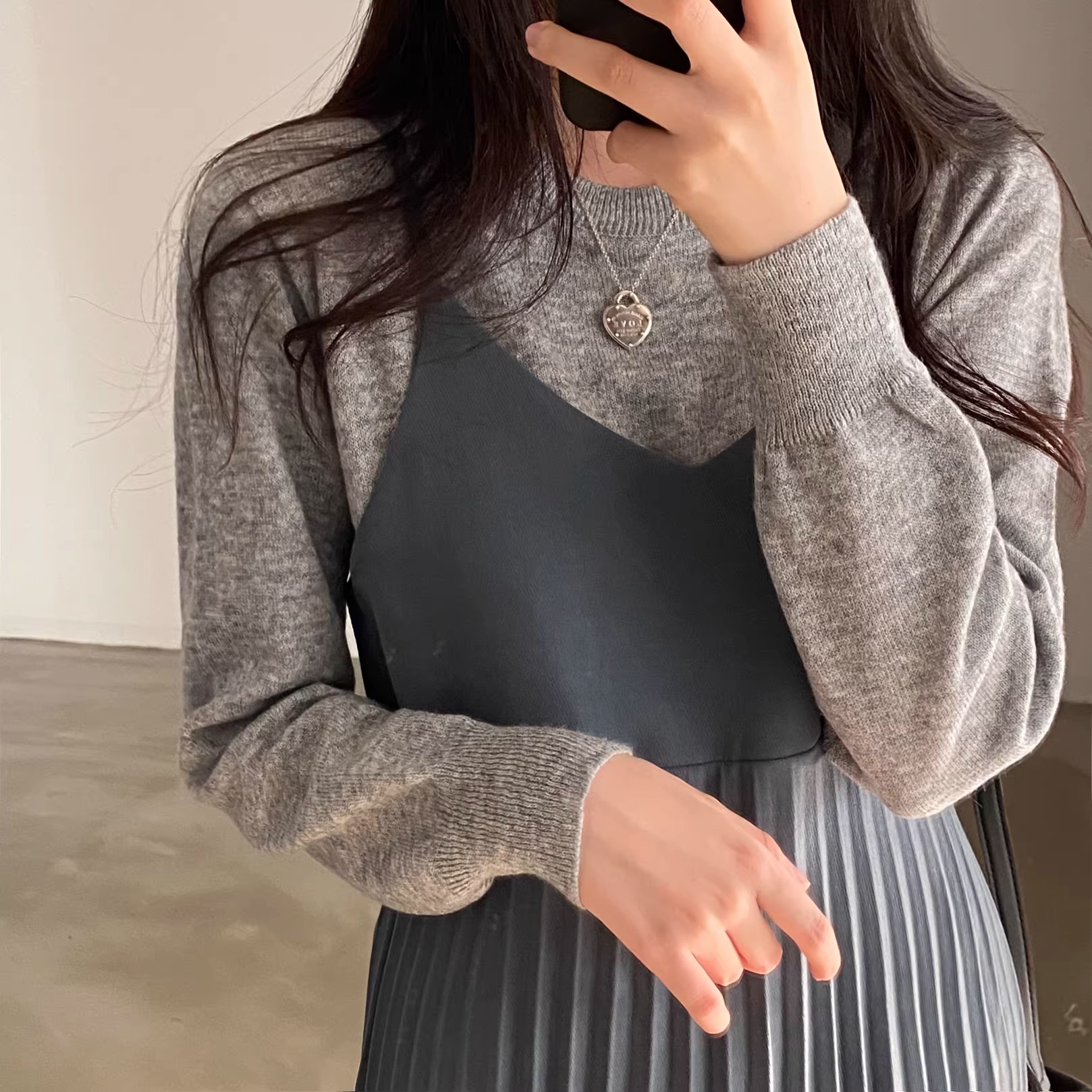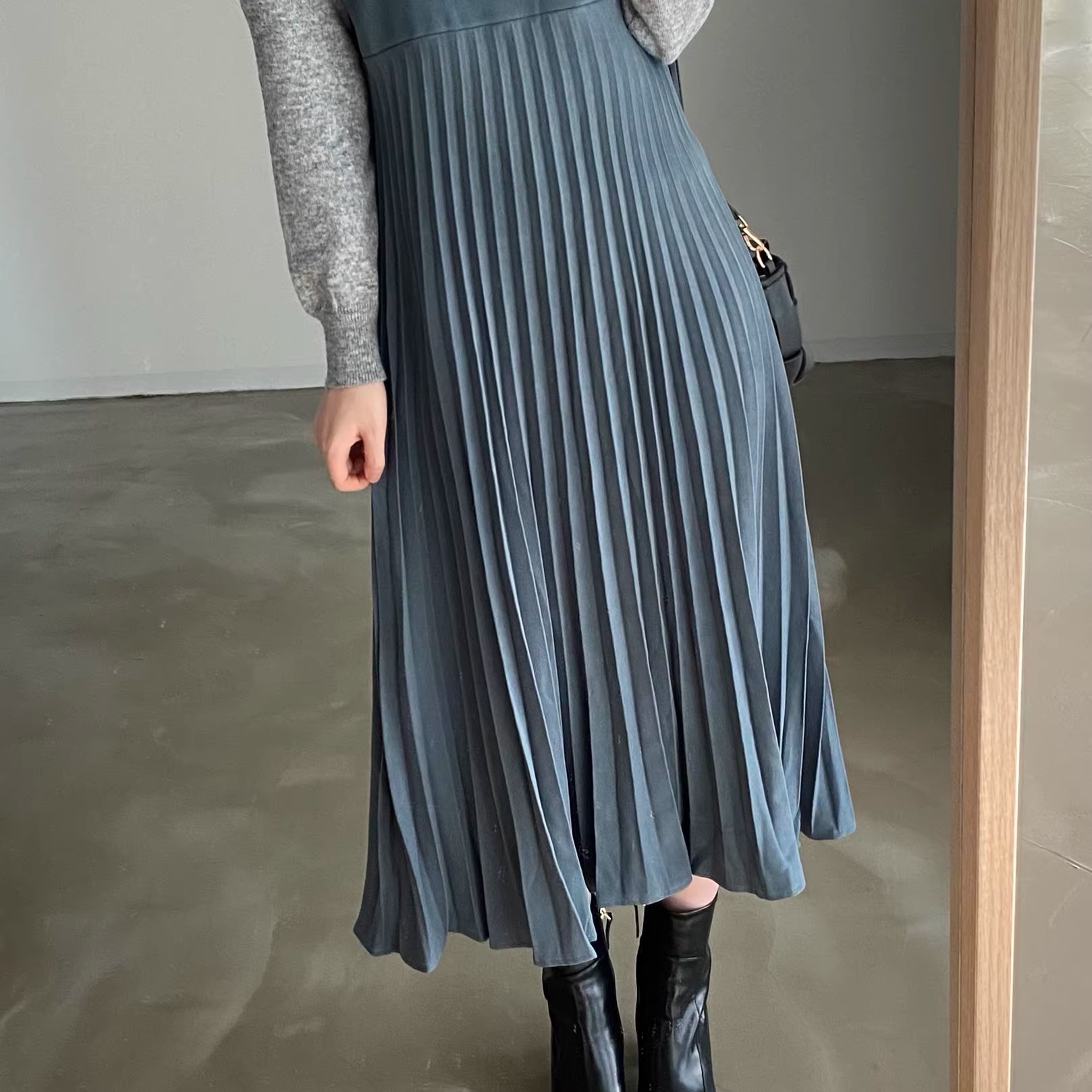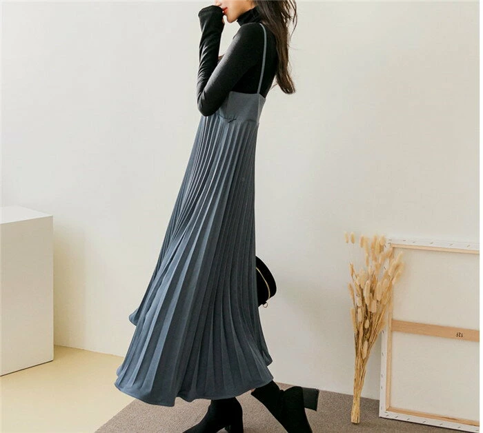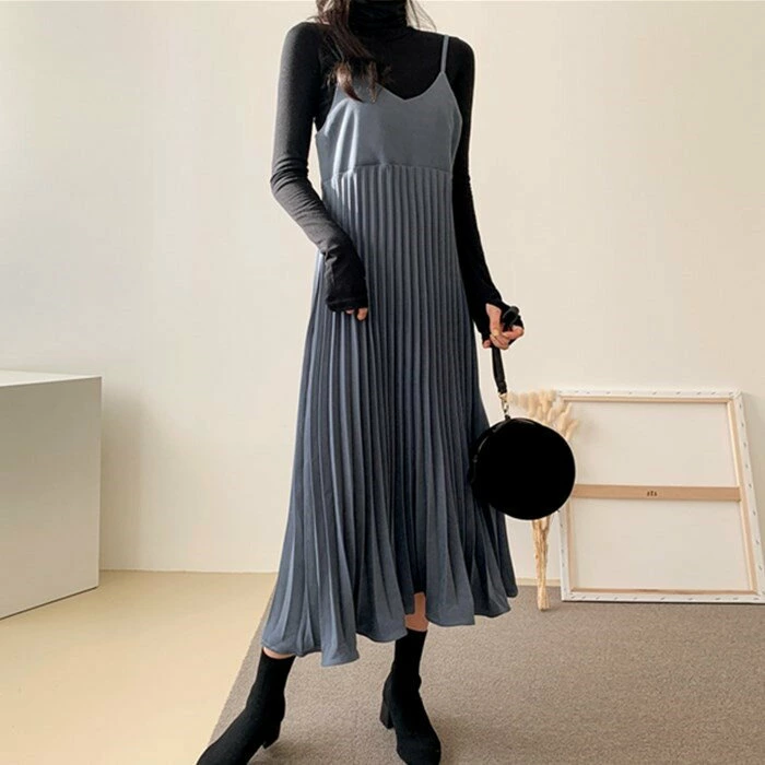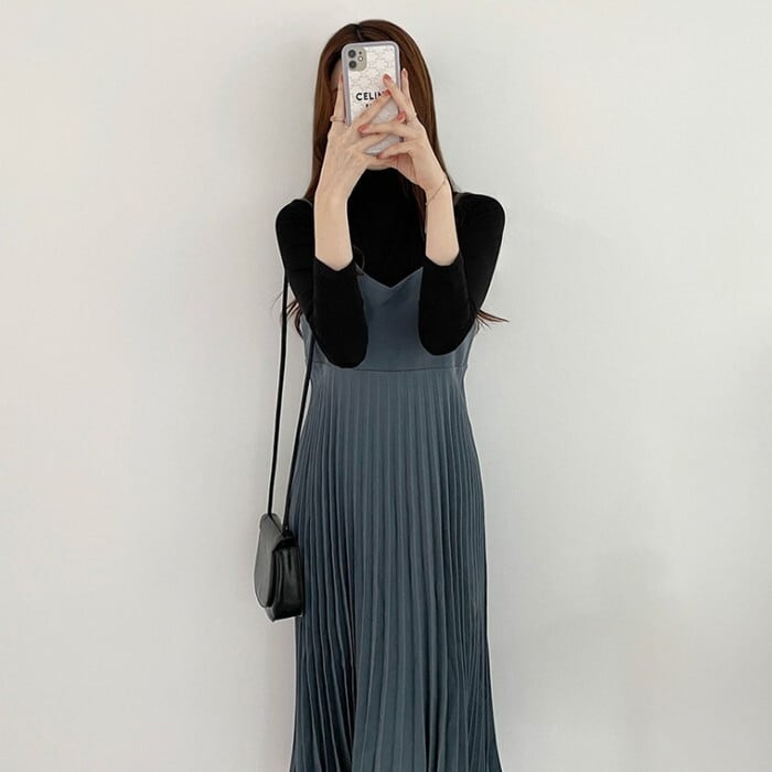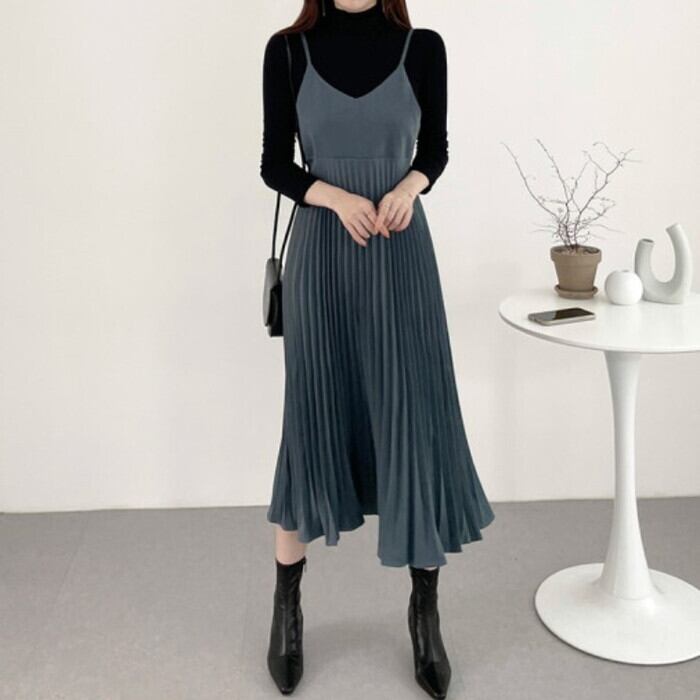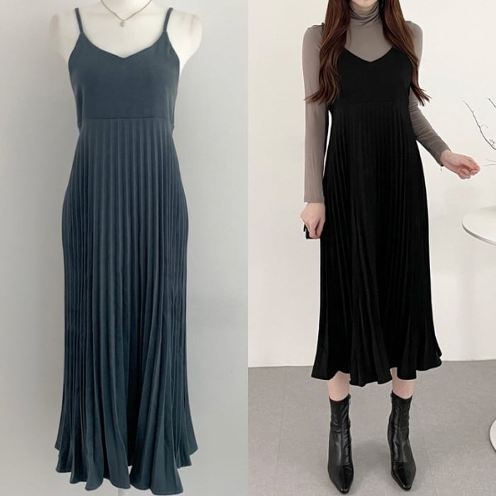 骨格ウェーブ 高見え 細プリーツキャミワンピース