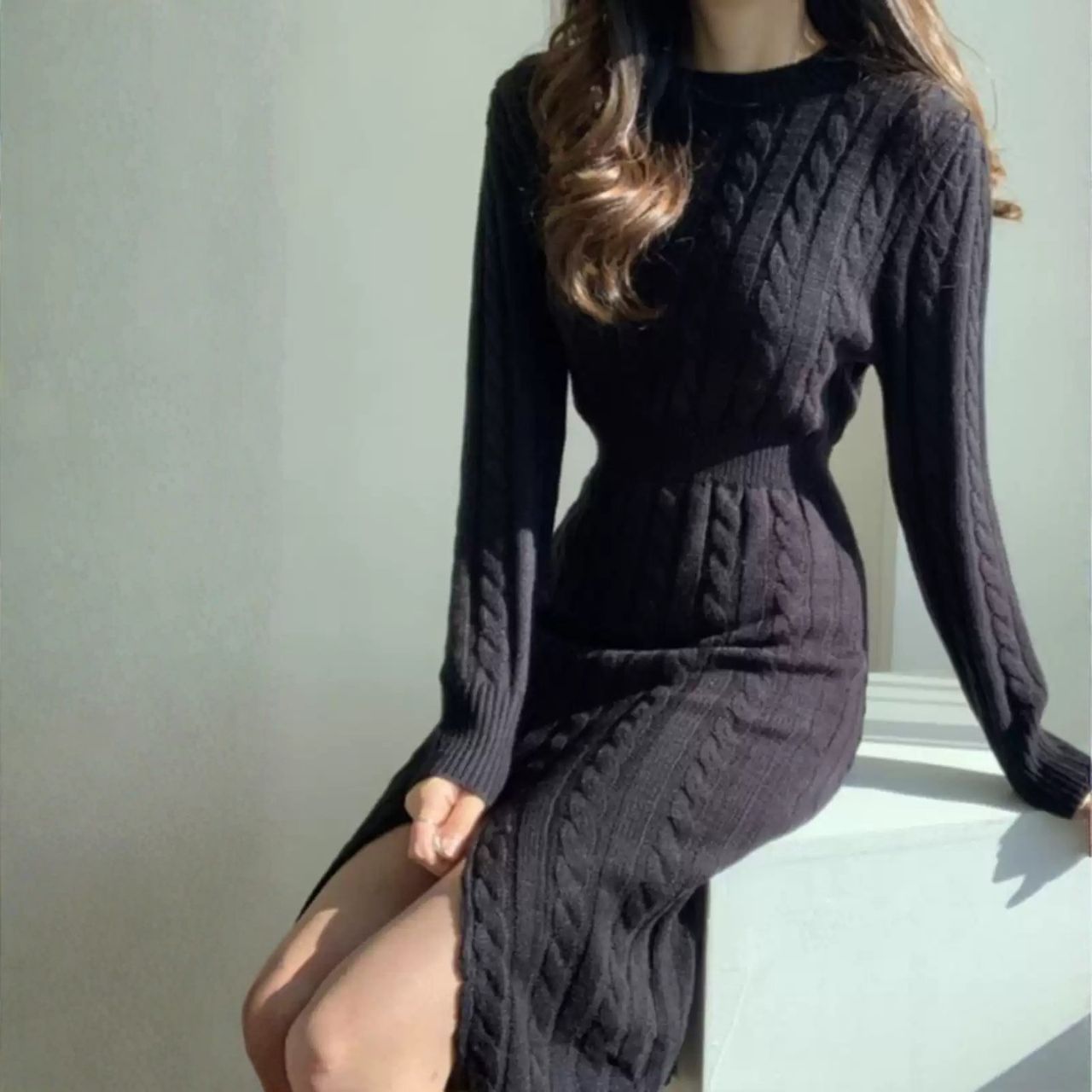 骨格ウェーブ【前後2WAY ケーブルニットワンピース】は、柔らかなニット素材とケーブル編みが女性らしいシルエットを引き立てるアイテムです。前後どちらでも着られる2WAY仕様で、ラウンドネックとカシュクールの印象を使い分け可能。太ももまで入ったスリットが上品な抜け感を演出します。リラックスタイムからデート、友人とのお出かけまで幅広く活躍し、オフホワイト・ブラックの2色展開です。