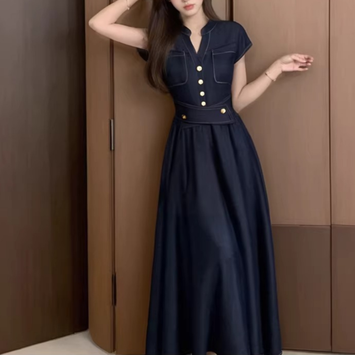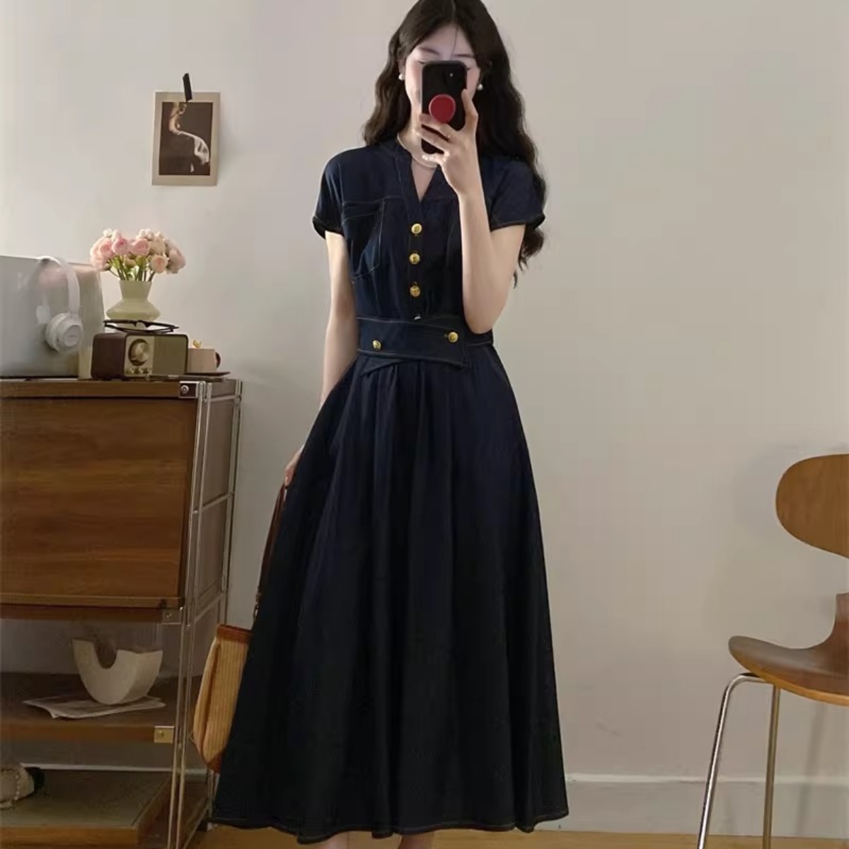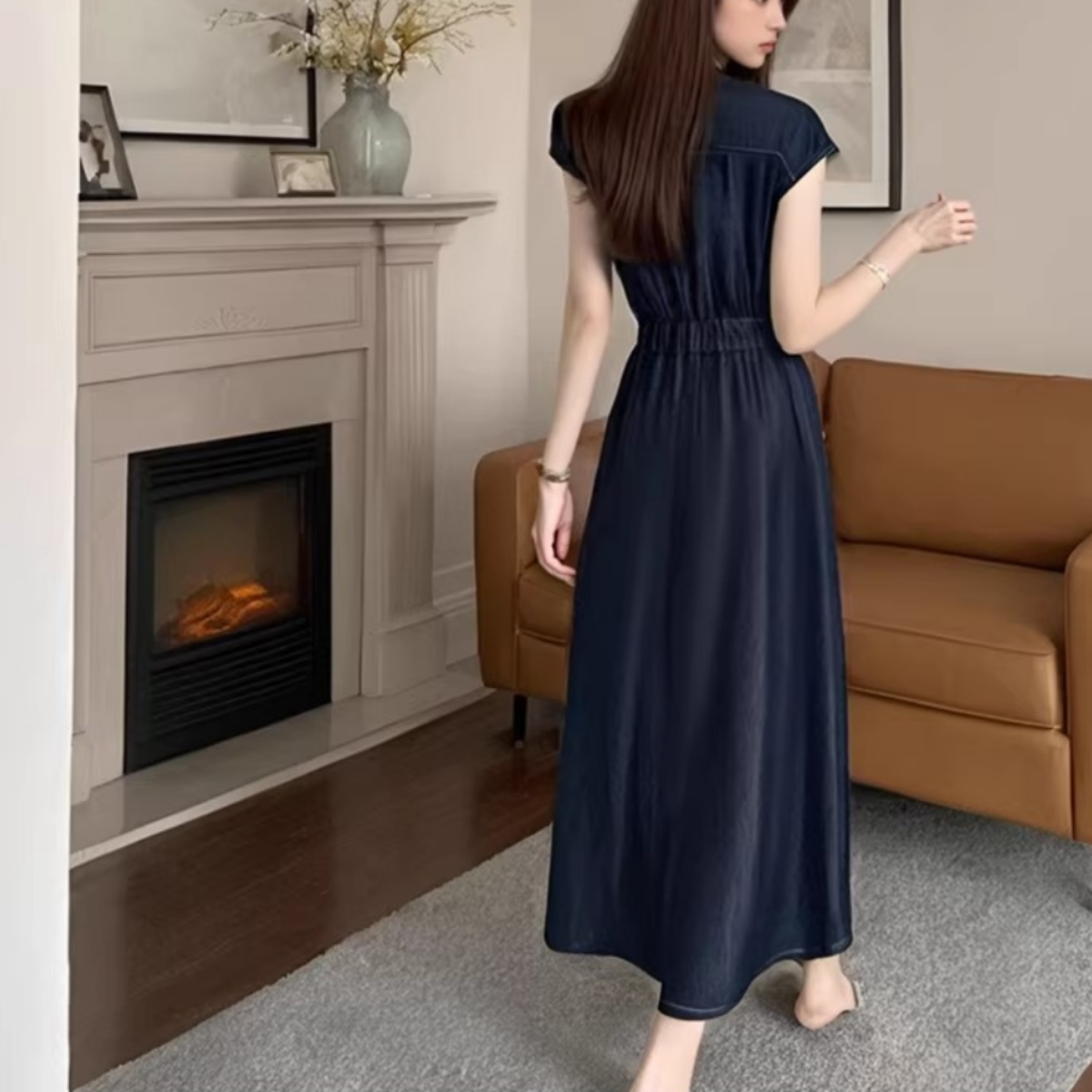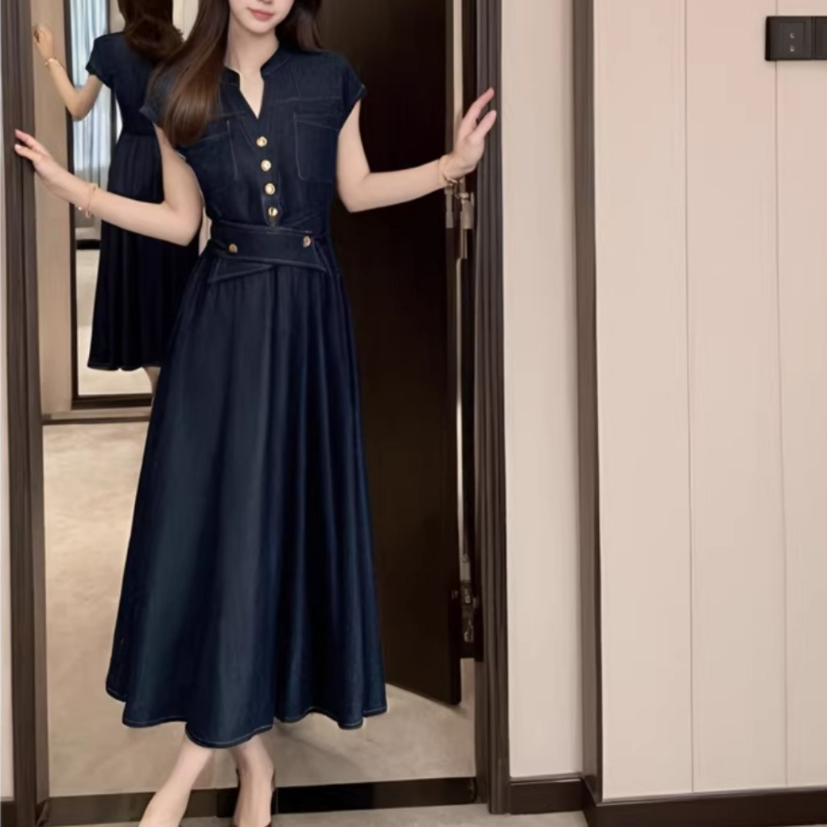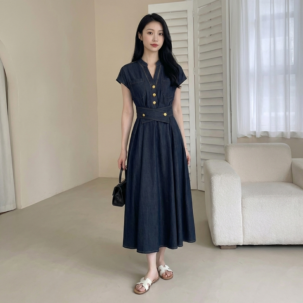 骨格ウェーブさんの「デニムはカジュアルすぎる…」という悩みに寄り添う、上品で女性らしいデニムワンピース。