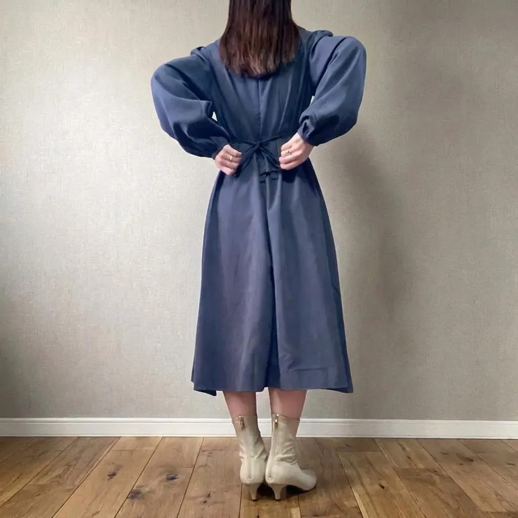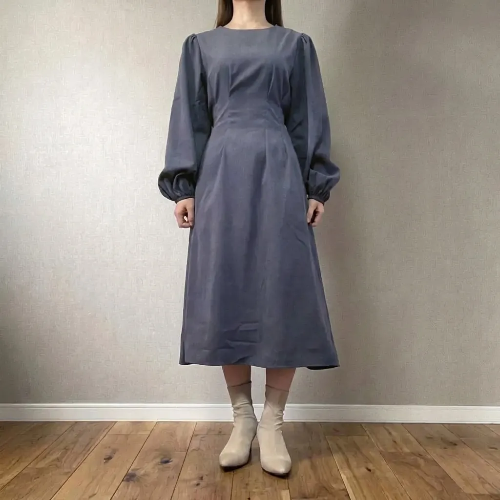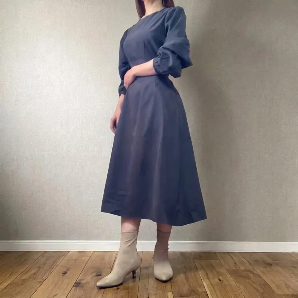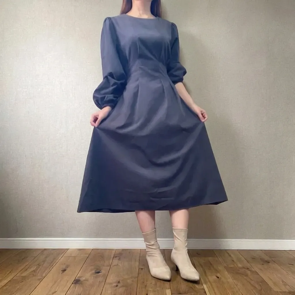 高めのウエスト切り替えとほどよいボリュームスリーブが、自然にスタイルアップを叶えてくれます。