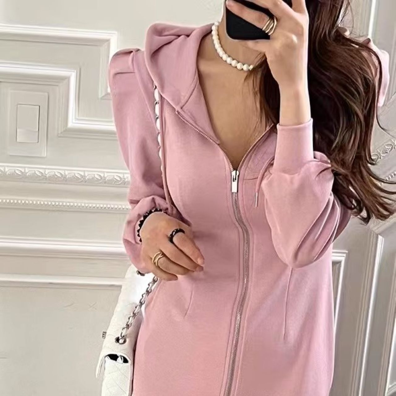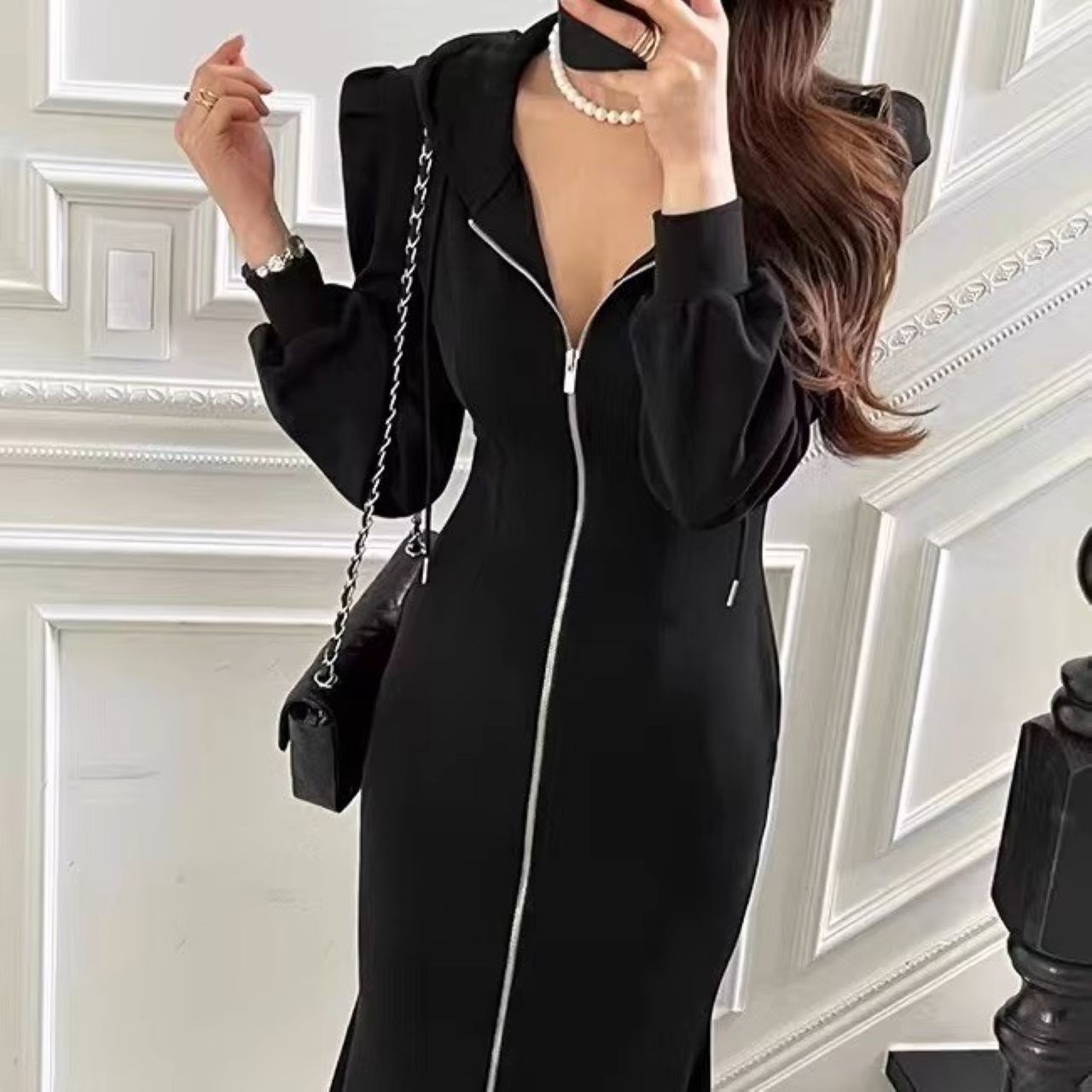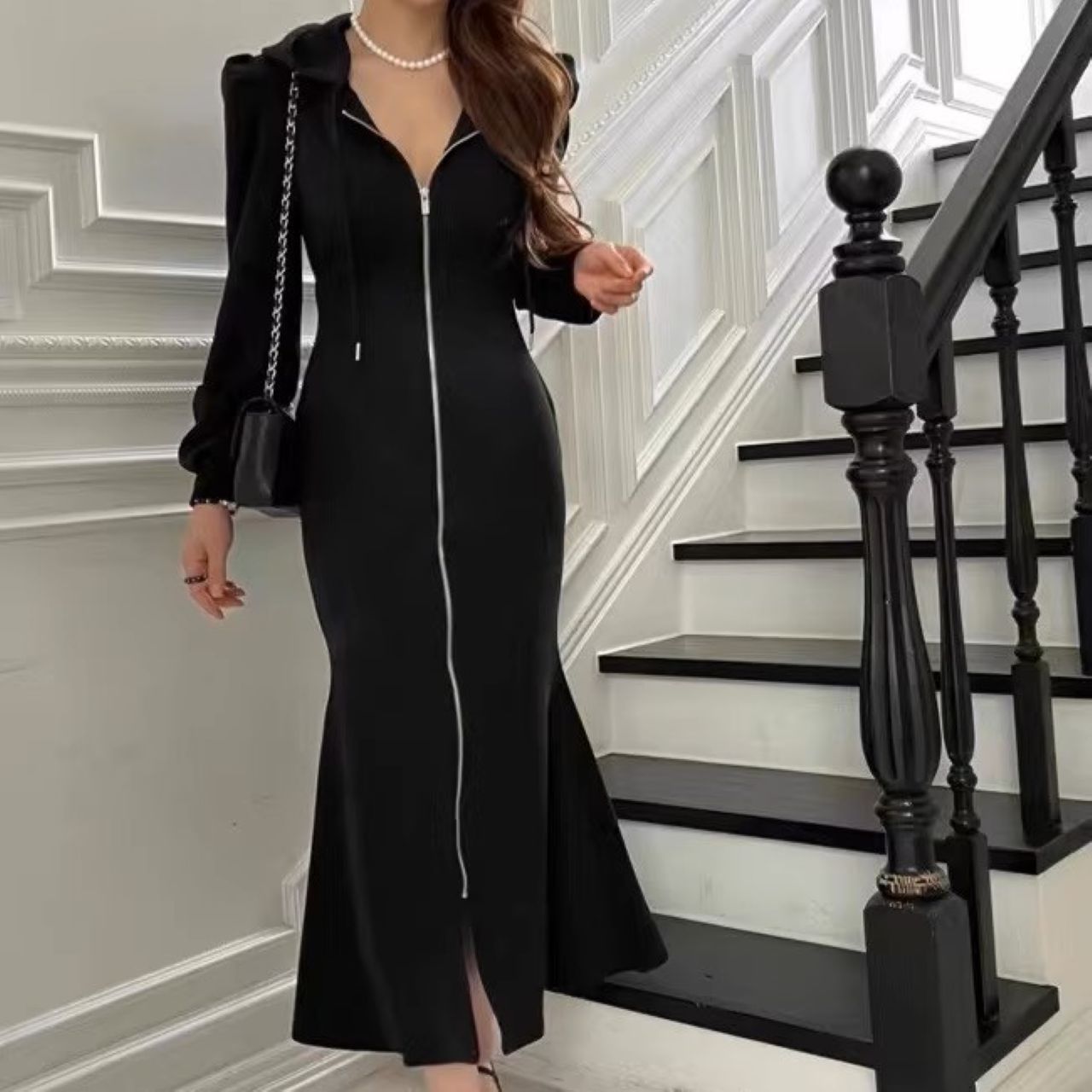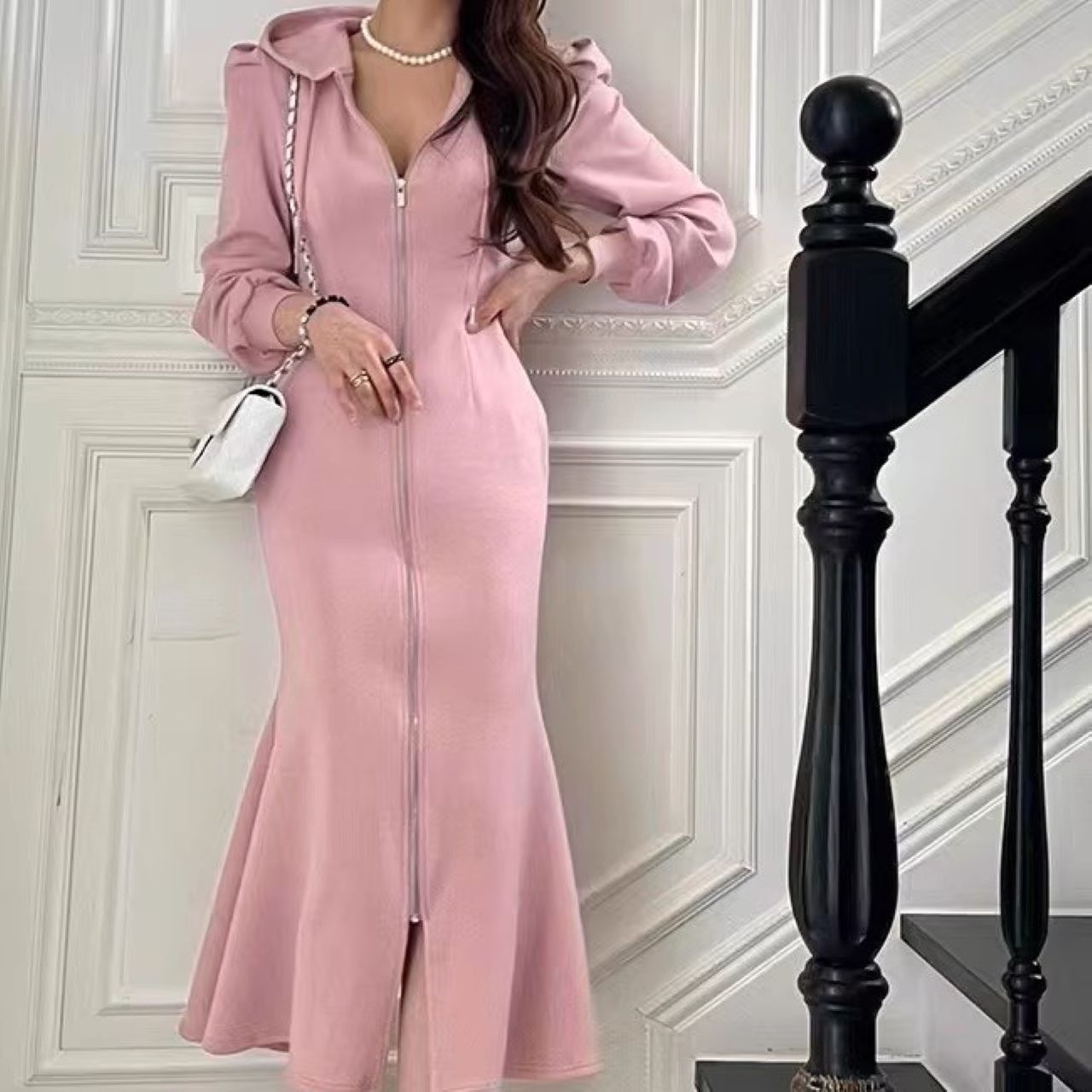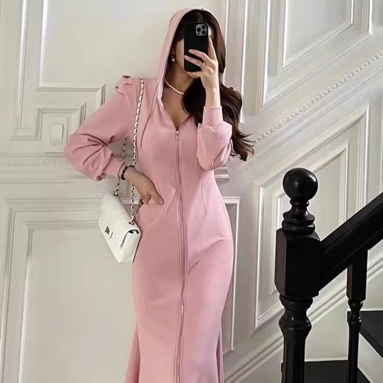 【骨格ウェーブ マーメイド長袖ワンピース ジップアップ ロング丈】は、エレガントさと快適さを兼ね備えた一枚です。骨格ウェーブにフィットするマーメイドシルエットが女性らしさを引き立て、ロング丈が上品な印象を演出します。フード付きの襟でカジュアルさもプラスし、ジップアップ仕様で着脱もスムーズ。長袖で肌寒い季節にも安心です。デートやパーティー、カジュアルなお出かけまで、幅広いシーンで活躍する万能ワンピースです。