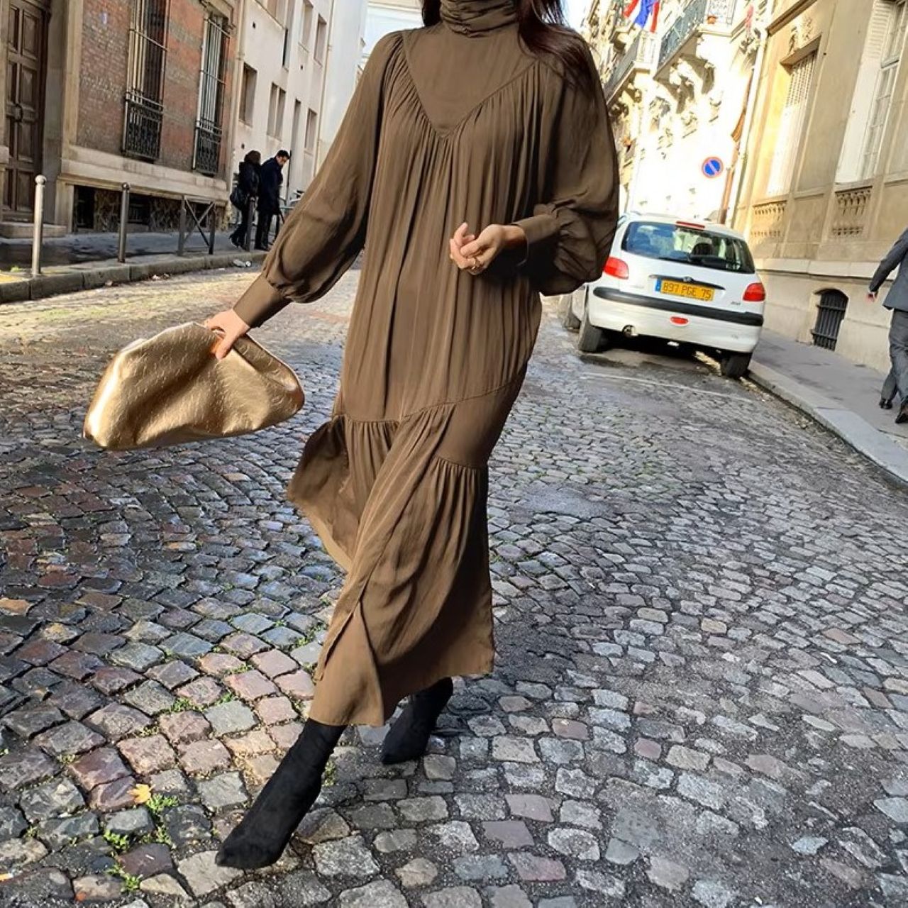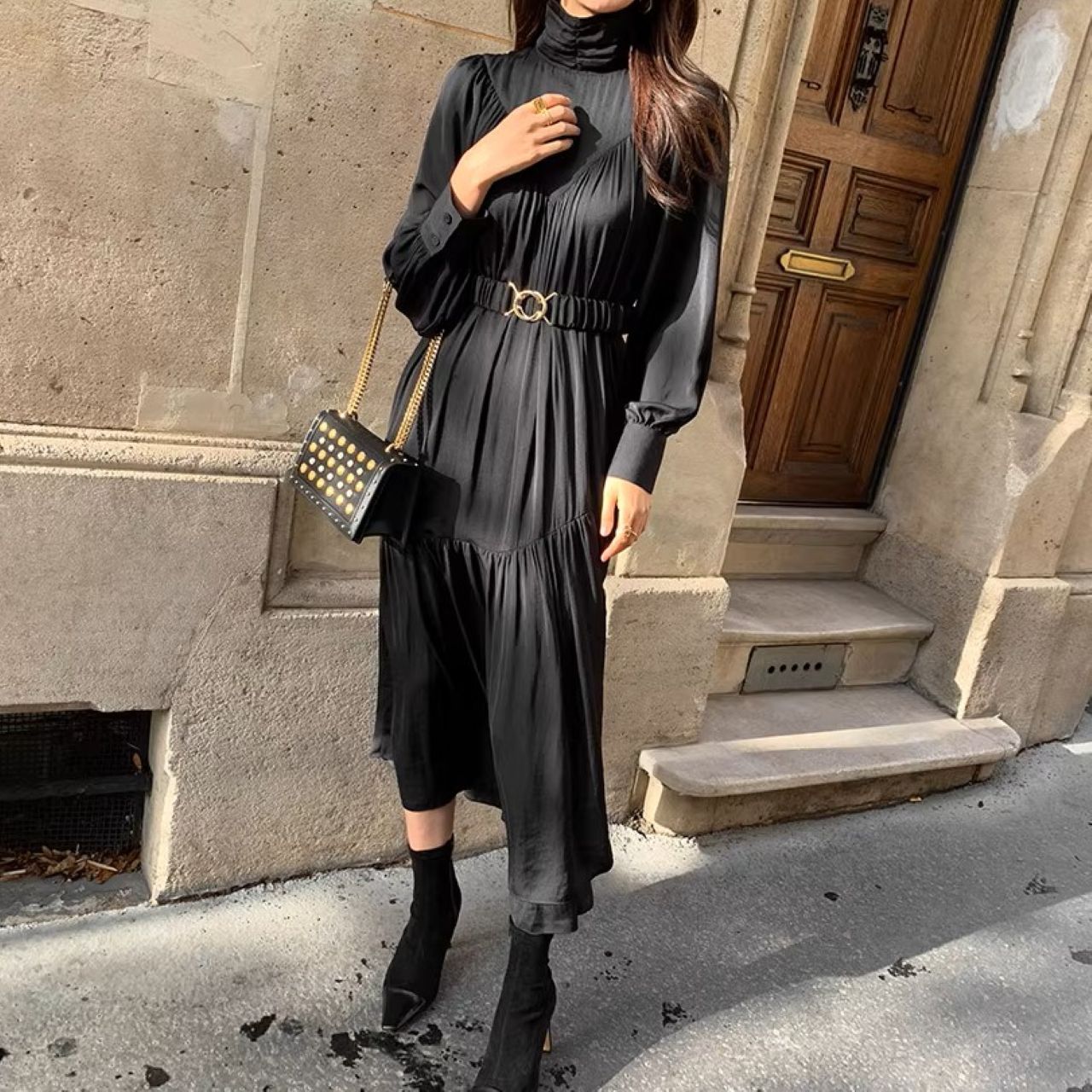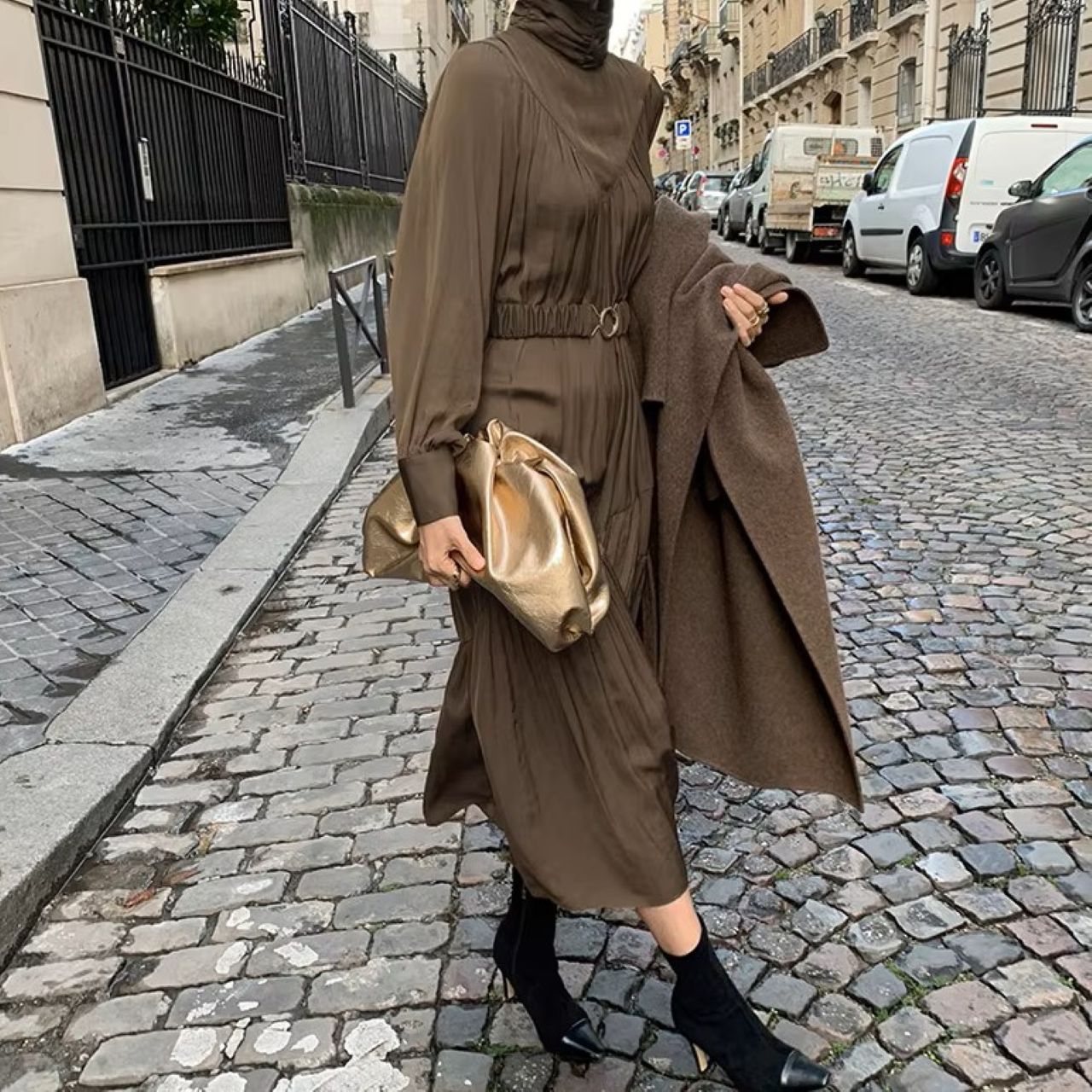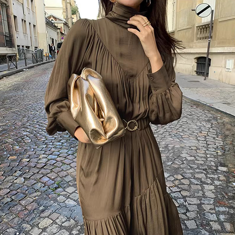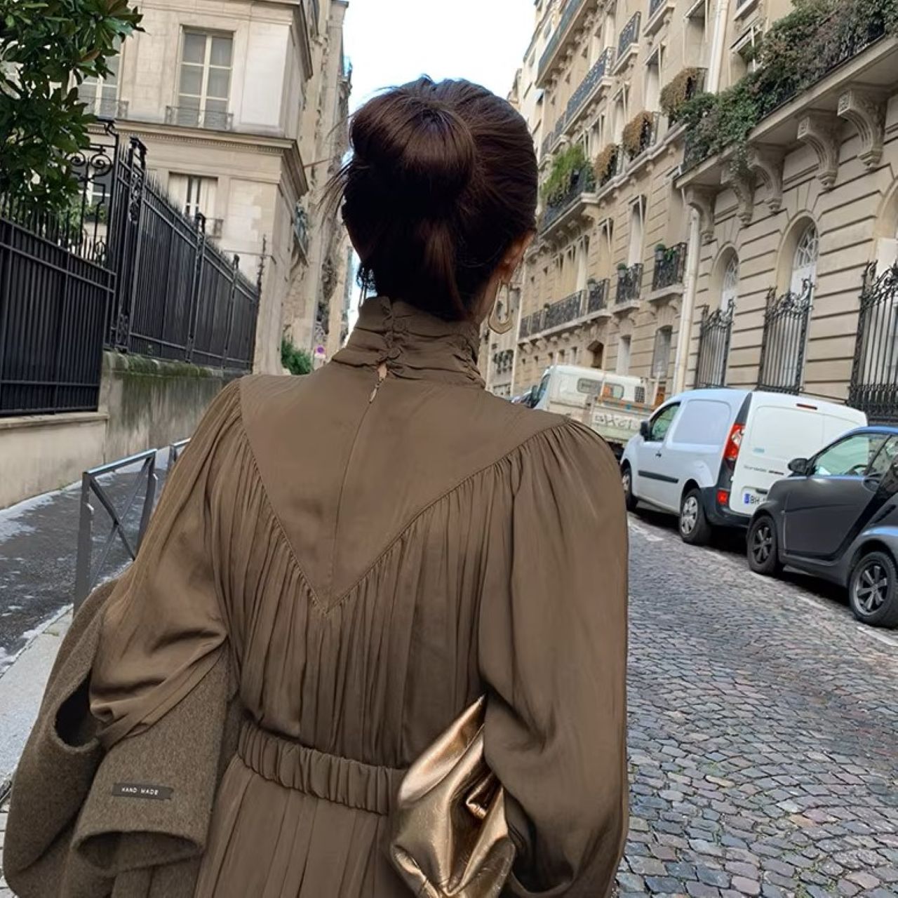 【骨格ウェーブ 切り替えプリーツワンピース ウエストマーク】は、切り替えデザインとプリーツが織りなす美しいシルエットが魅力の一枚です。動くたびに優雅さを演出し、さらりとした肌触りで快適に着られます。首元をすっきり見せるハイカラーと上品なパフスリーブで、華奢見え効果も抜群。ウエストマークが女性らしいラインを際立たせ、骨格ウェーブにフィットします。特別な日から日常のお出かけまで幅広く活躍する、洗練されたワンピースです。