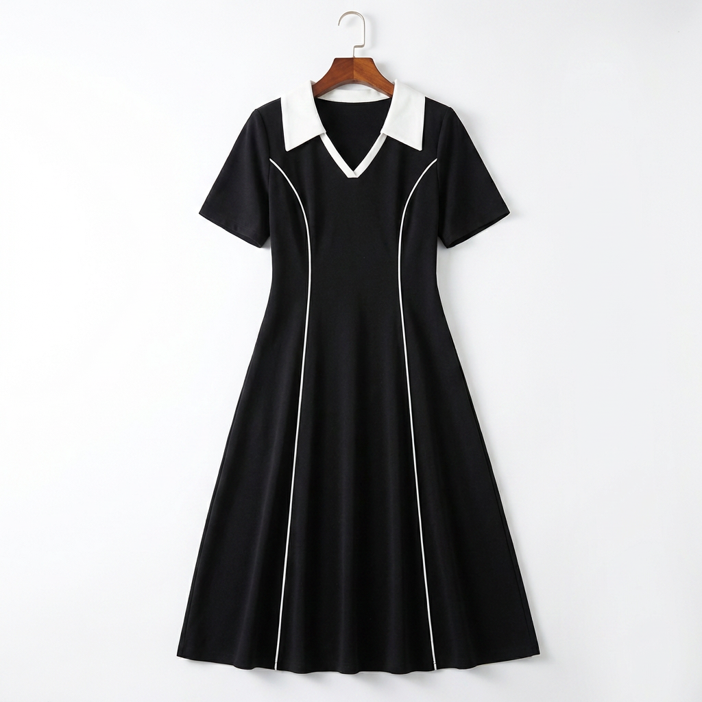 骨格ウェーブさんの魅力を最大限に引き出す、計算されたシルエットのフィット&フレアワンピース。