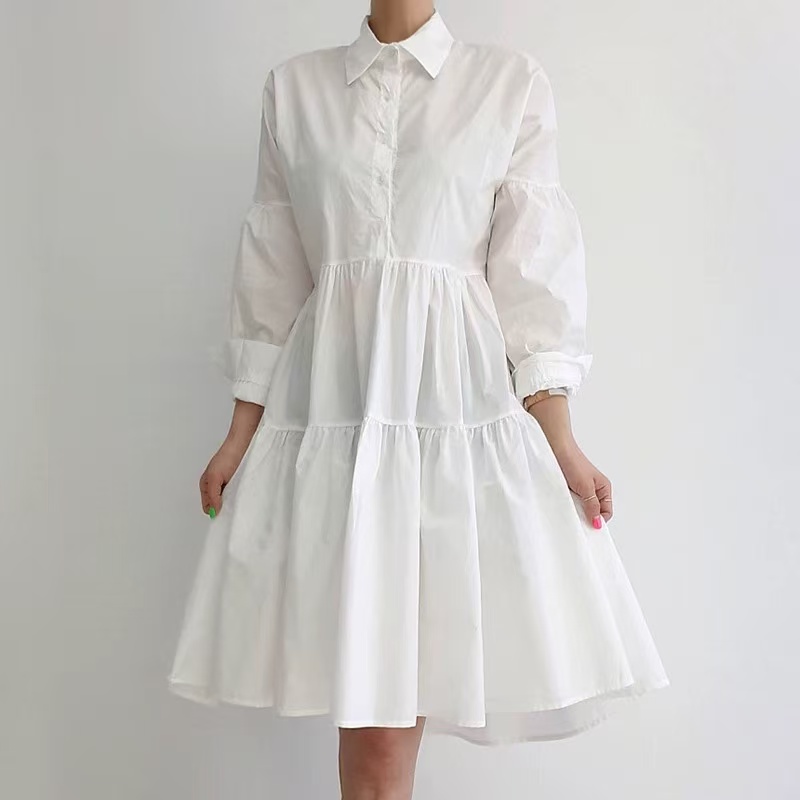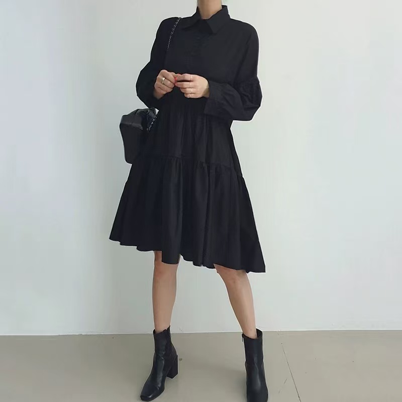 骨格ウェーブ フィッシュテールティアードシャツワンピース