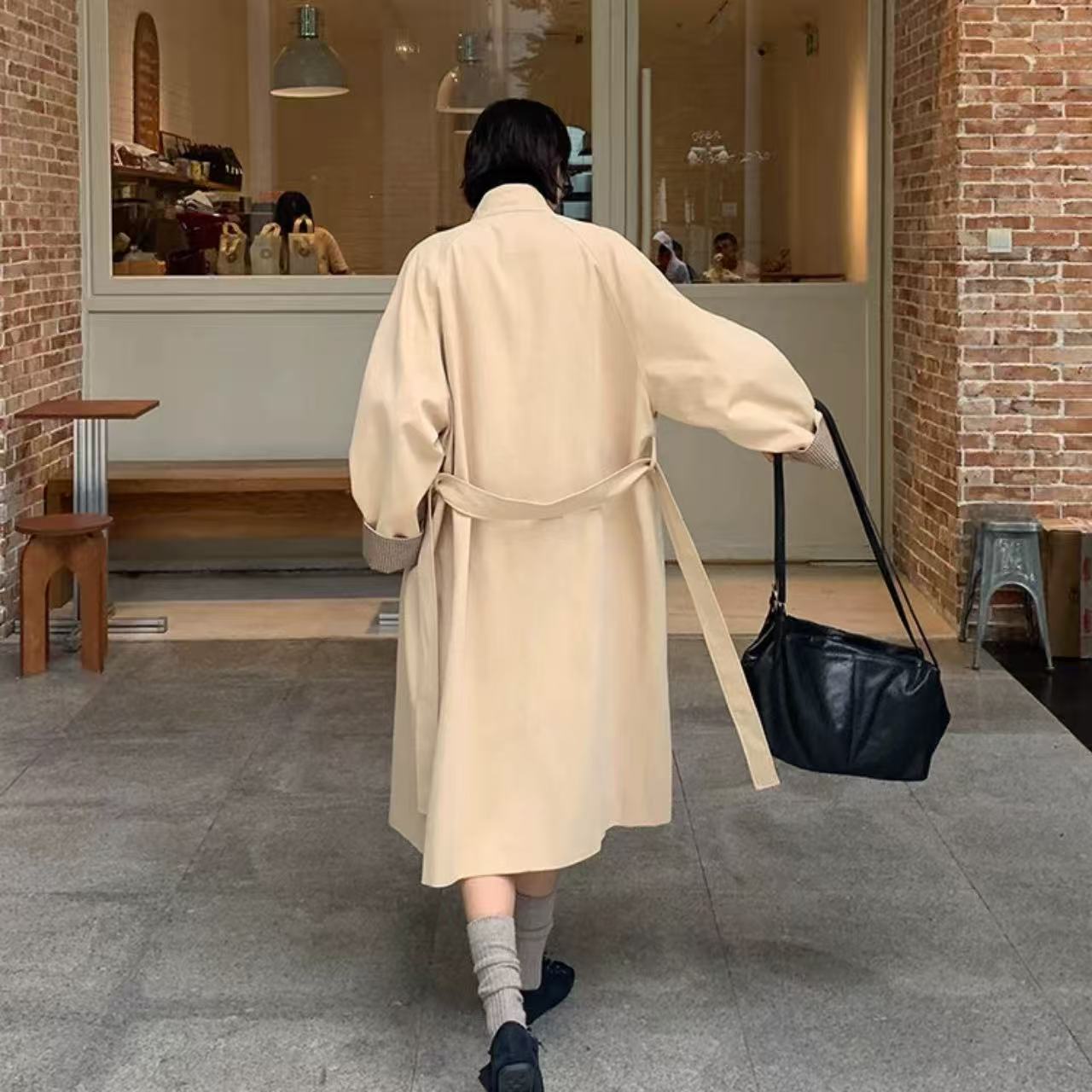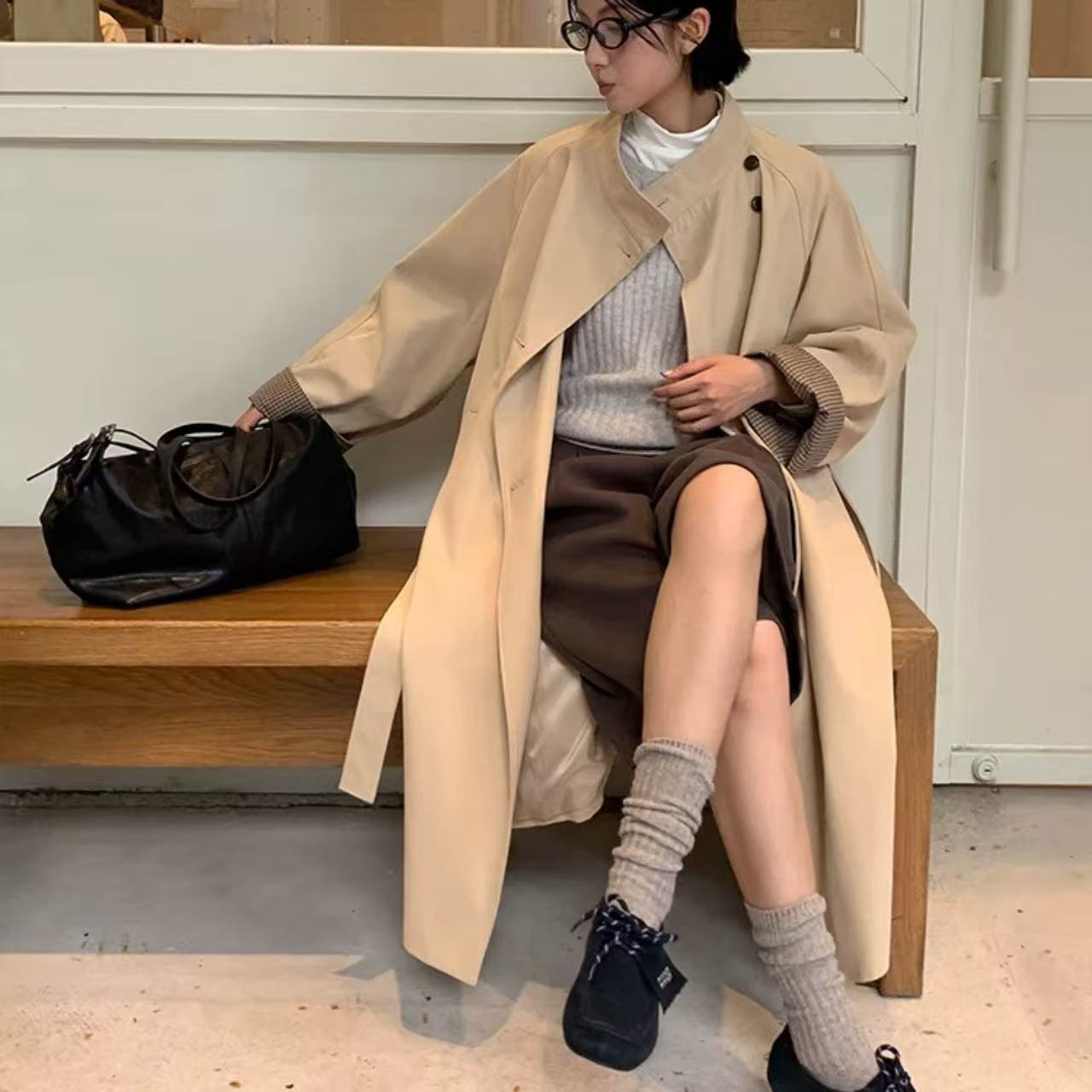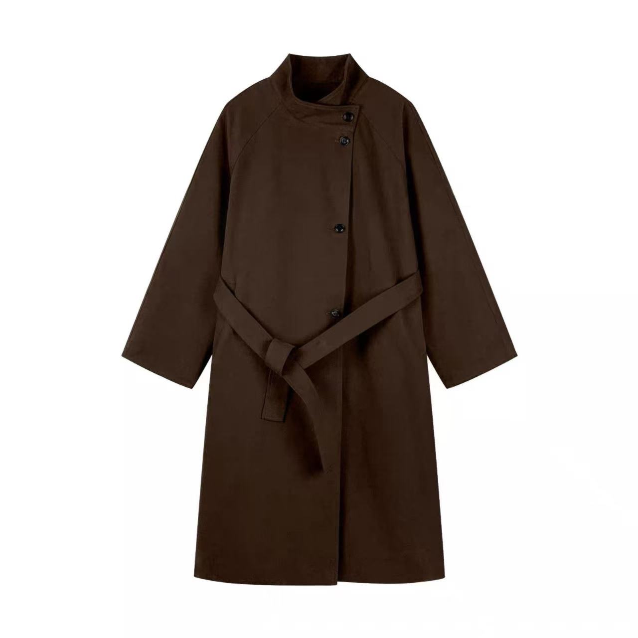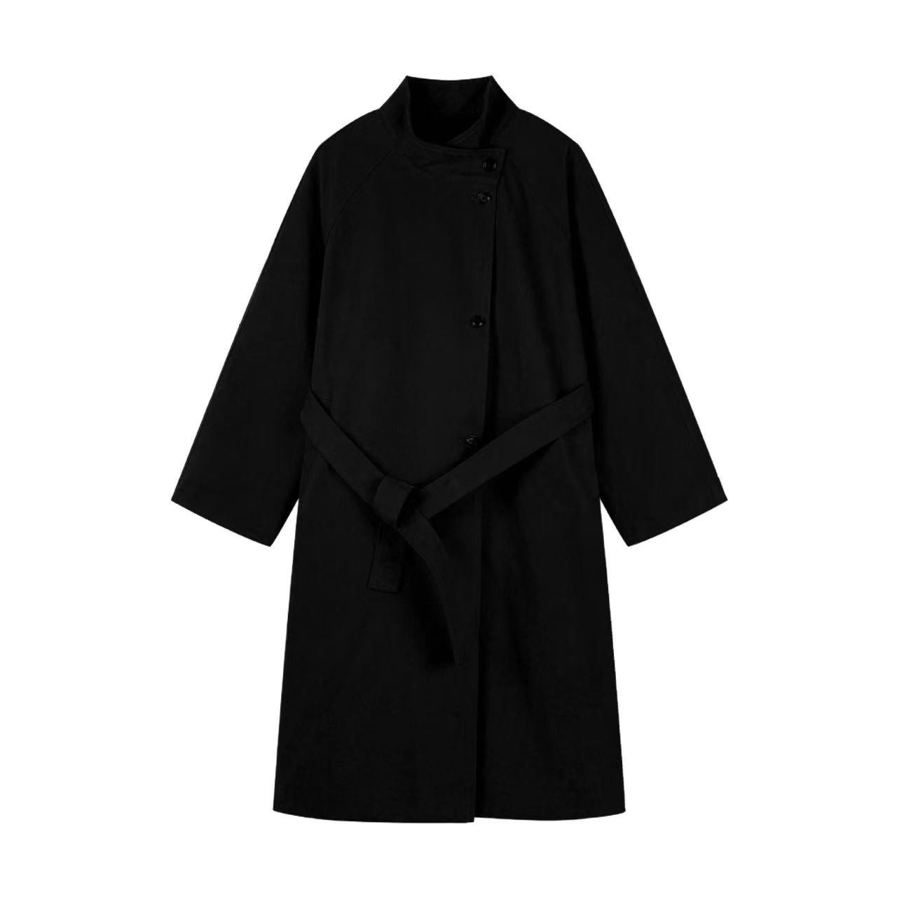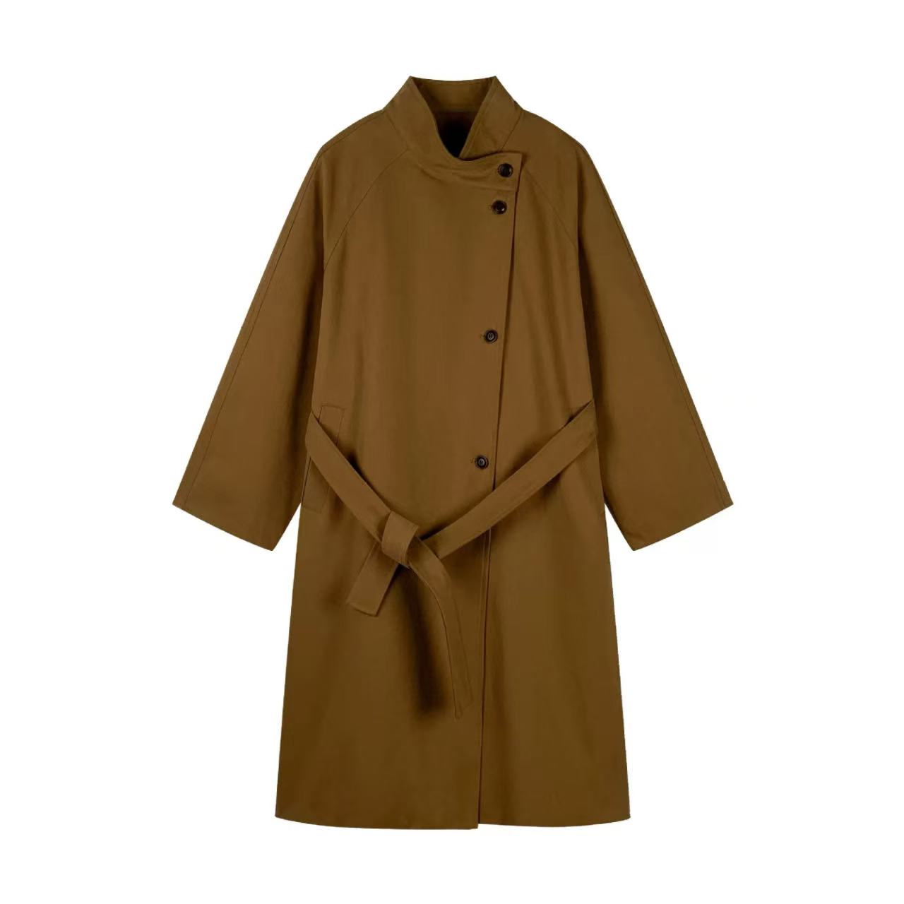 骨格ウェーブ スタンドカラー ロング丈トレンチコート