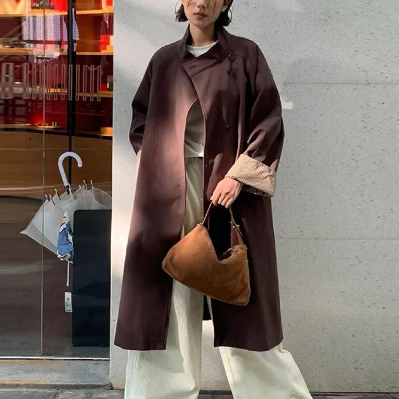 2025年秋冬新作のスタンドカラー付きロングコート。上品で洗練されたシルエットが魅力の一着です。高級感あふれる素材を使用し、軽やかでありながら暖かく、寒い季節でもスタイリッシュに決まります。シンプルながらも立体的なデザインが美しく、通勤やお出かけ、フォーマルシーンにもぴったり。モダンでエレガントな印象を与える、大人の女性におすすめの秋冬アウターです。