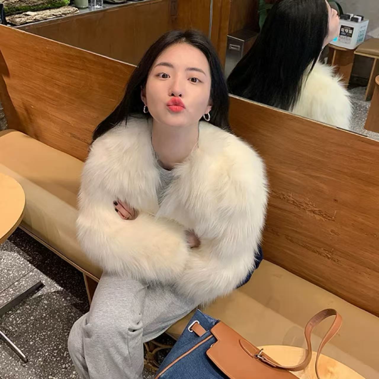 2025年冬新作のフェイクフォックスファーショートコート。若々しいデザインとふわふわの高級感あふれる質感が魅力。軽くて暖かく、Vネック仕様で小顔効果・着痩せ効果も抜群です。トレンドのショート丈で、スカートにもパンツにも合わせやすく、デイリーからお出かけまで幅広く活躍。上品で可愛い印象を与える人気のアイテムです