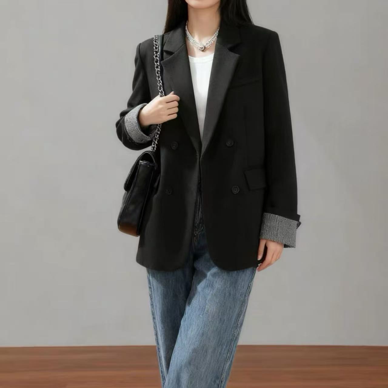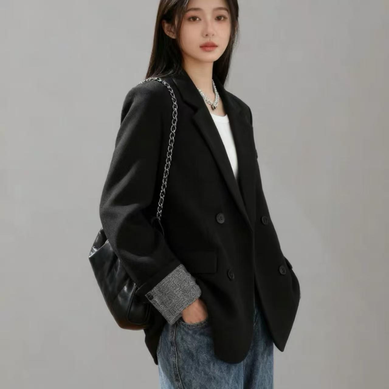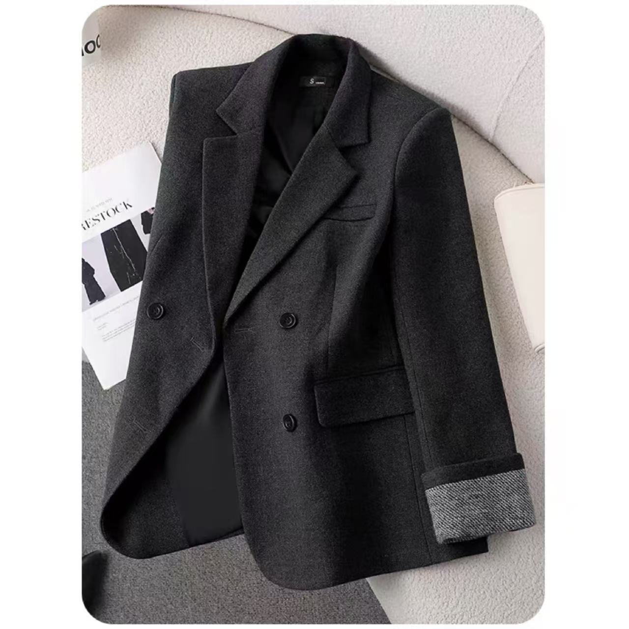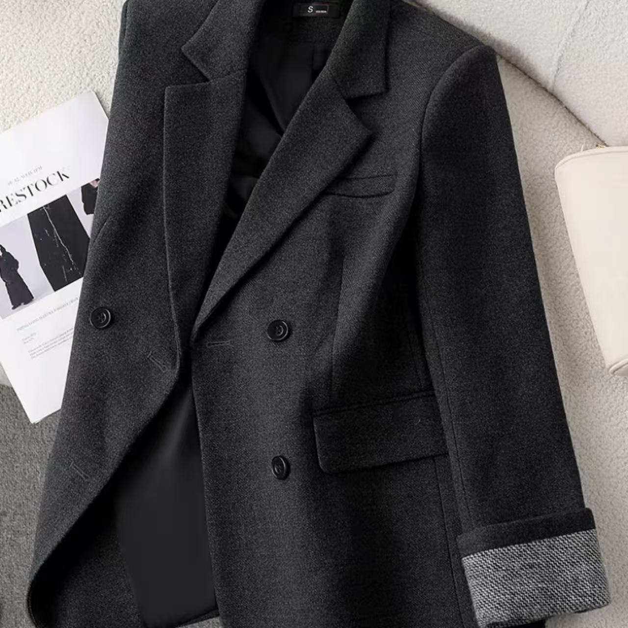 2025年秋冬の新作、ブラックの高級ウールブレザー。上質な毛混素材を使用し、滑らかな質感としっかりしたシルエットが魅力です。洗練されたデザインで、大人の女性らしい上品さと知的な雰囲気を演出。通勤やお出かけ、フォーマルシーンにもぴったり。羽織るだけでスタイルが引き締まり、“女神系”の気品を感じさせる一着です。