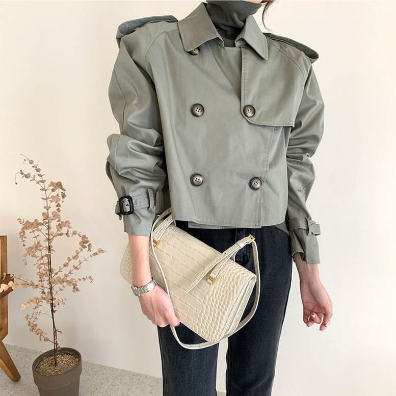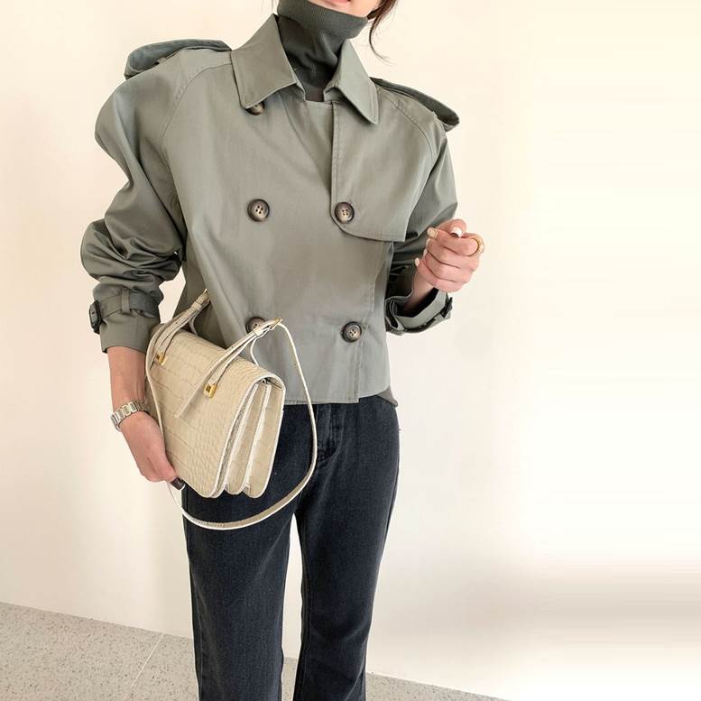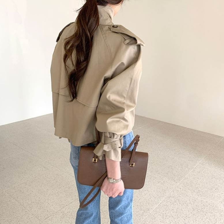 骨格ウェーブ ショート丈 ハンサム大人トレンチコート