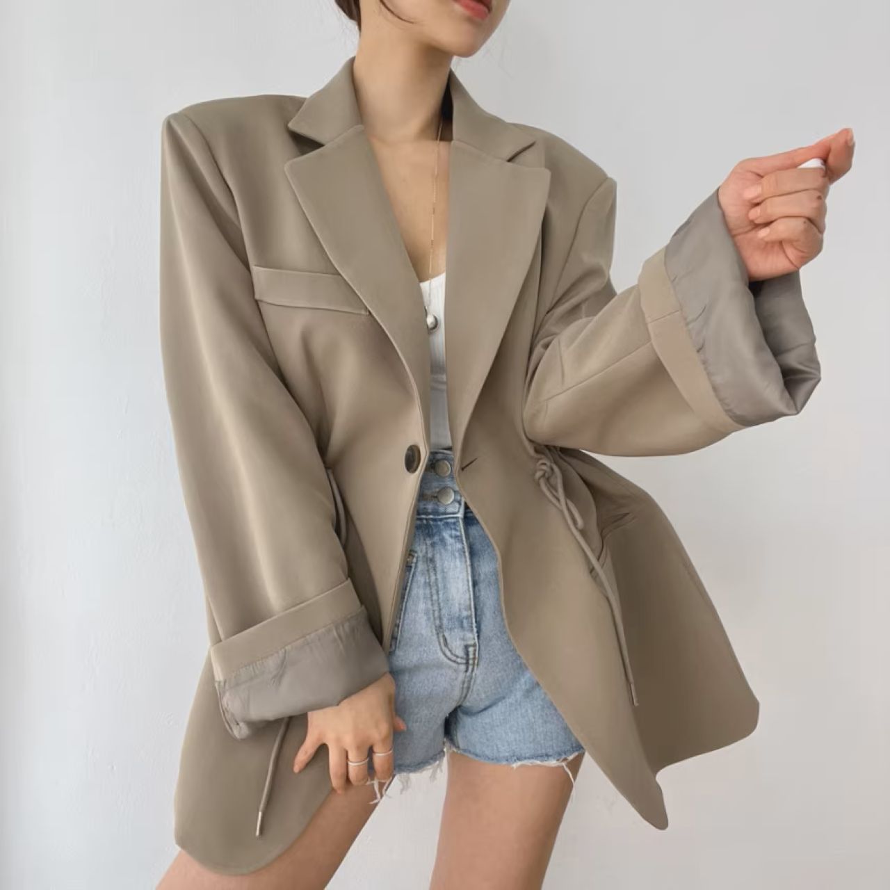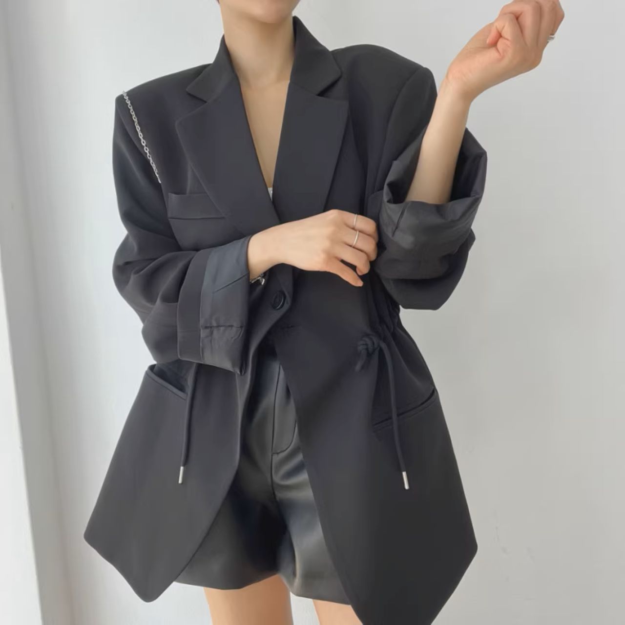 骨格ウェーブ【ドローストリング テーラードジャケット】は、洗練されたテーラードデザインにウエストを絞れるドローストリングを取り入れた、万能な一着です。女性らしいラインを美しく引き立てつつ、ゆったりとした長めの裾で腰回りをカバーし、快適な着心地を実現します。カジュアルにもフォーマルにも対応できるデザインで、オフィスからお出かけ、特別なイベントまで幅広く活躍。骨格ウェーブにぴったりのシルエットで、自分らしいスタイルを演出します。