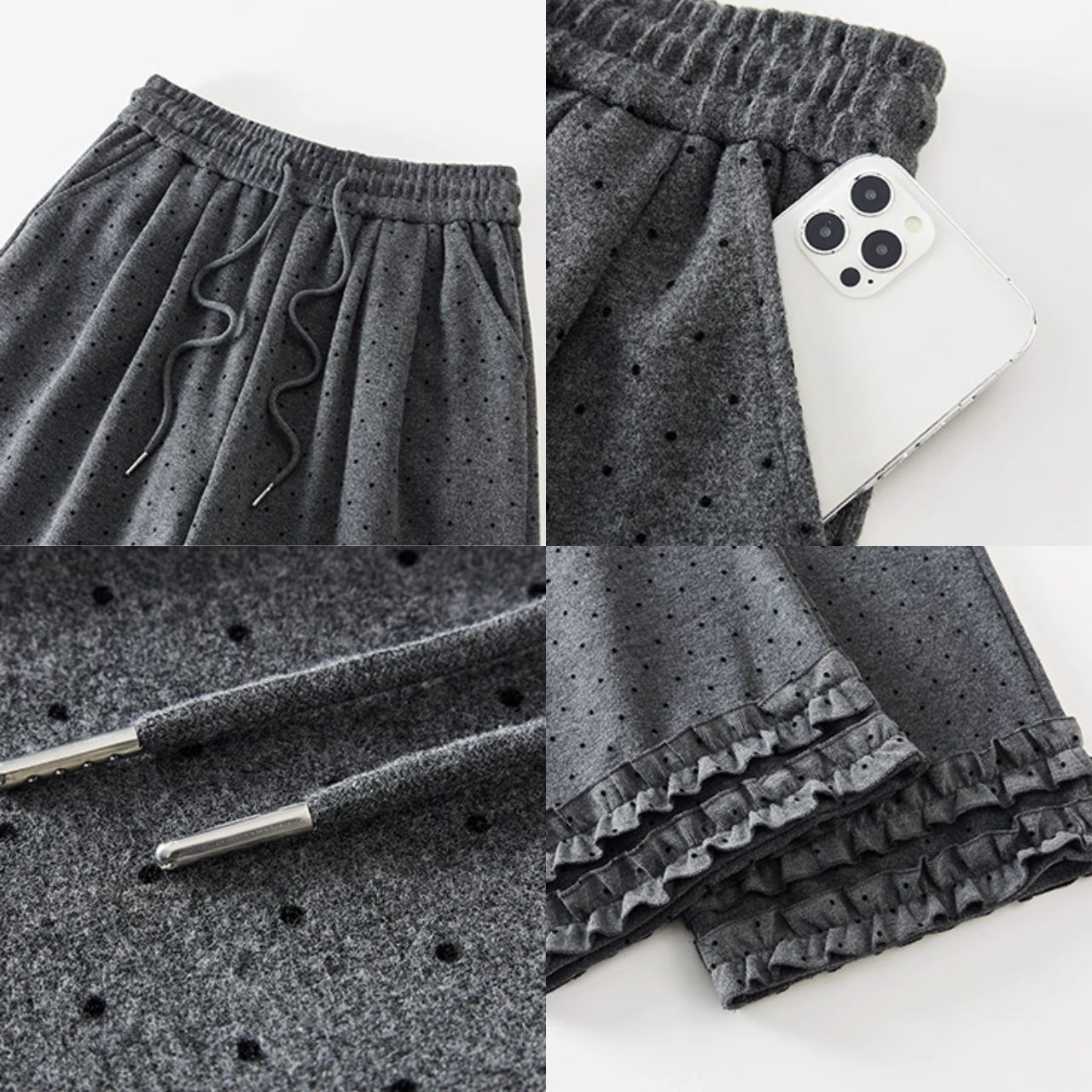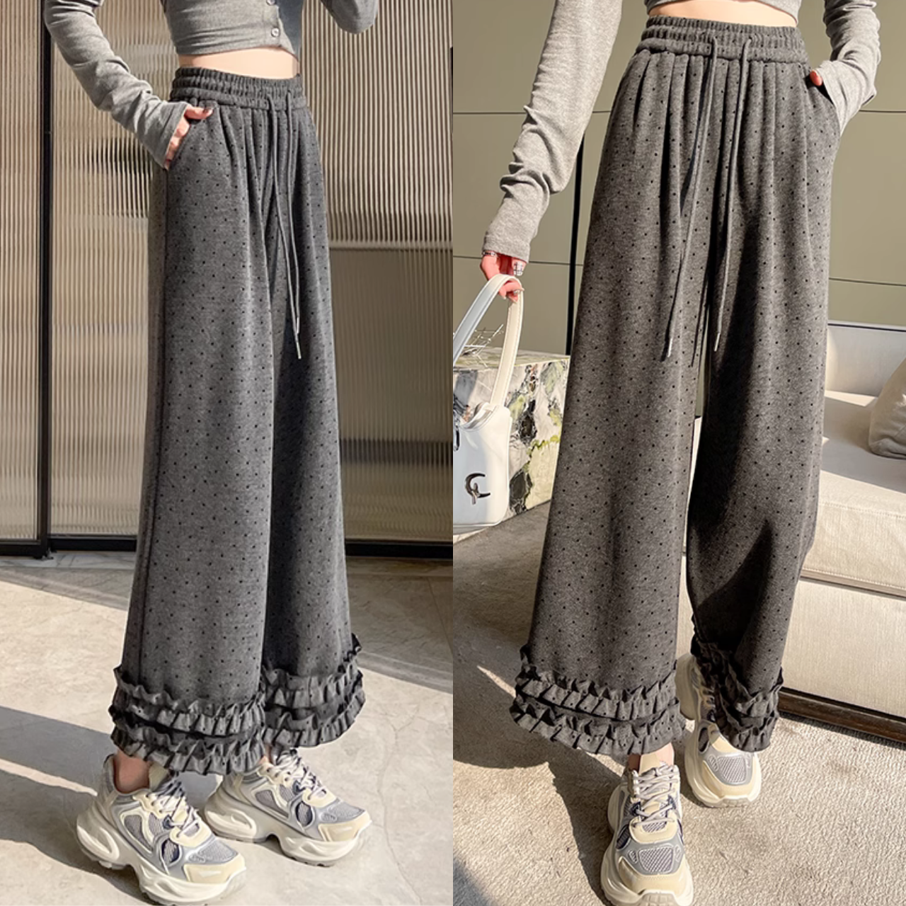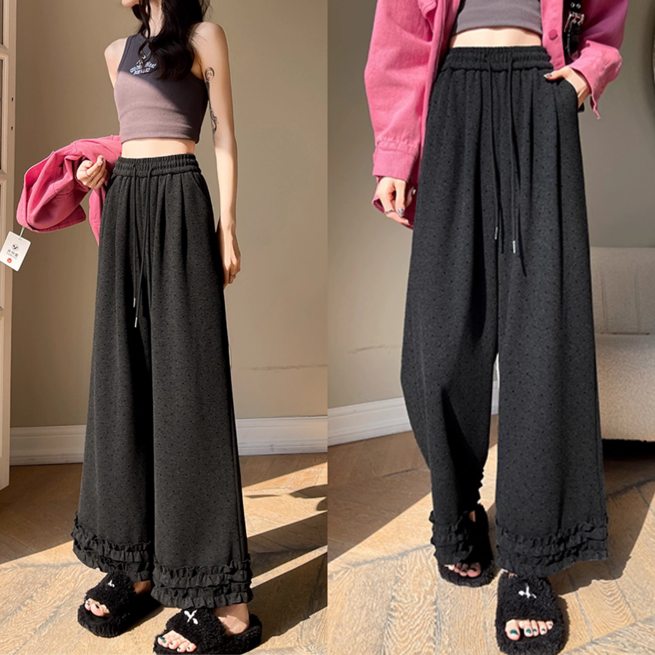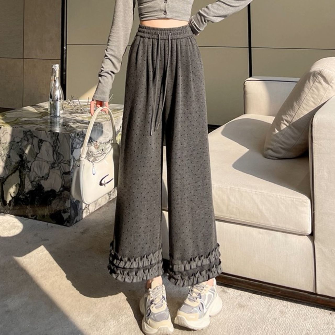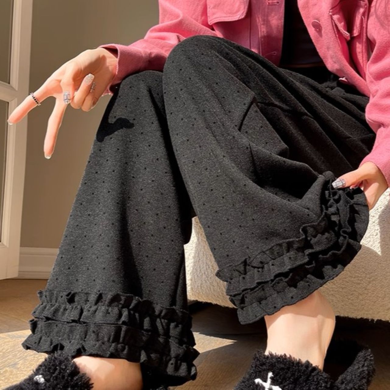 骨格ウェーブ ダブルフリル ドット柄 ワイドパンツ ハイウエスト 8分丈・9分丈