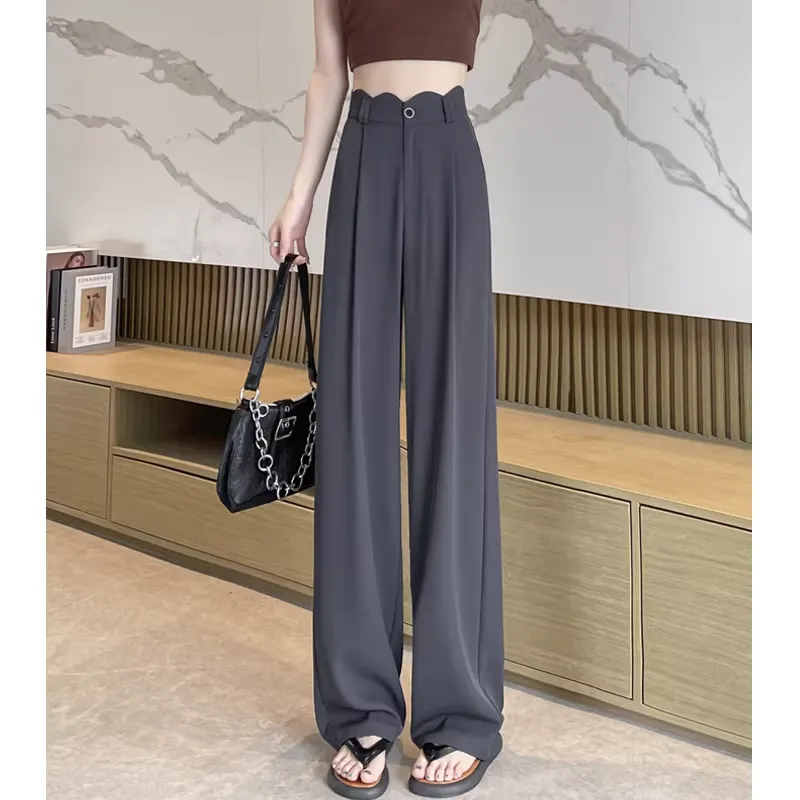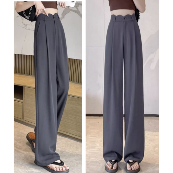 骨格ウェーブ 曲線美 スカラップハイウエスト とろみワイドパンツ