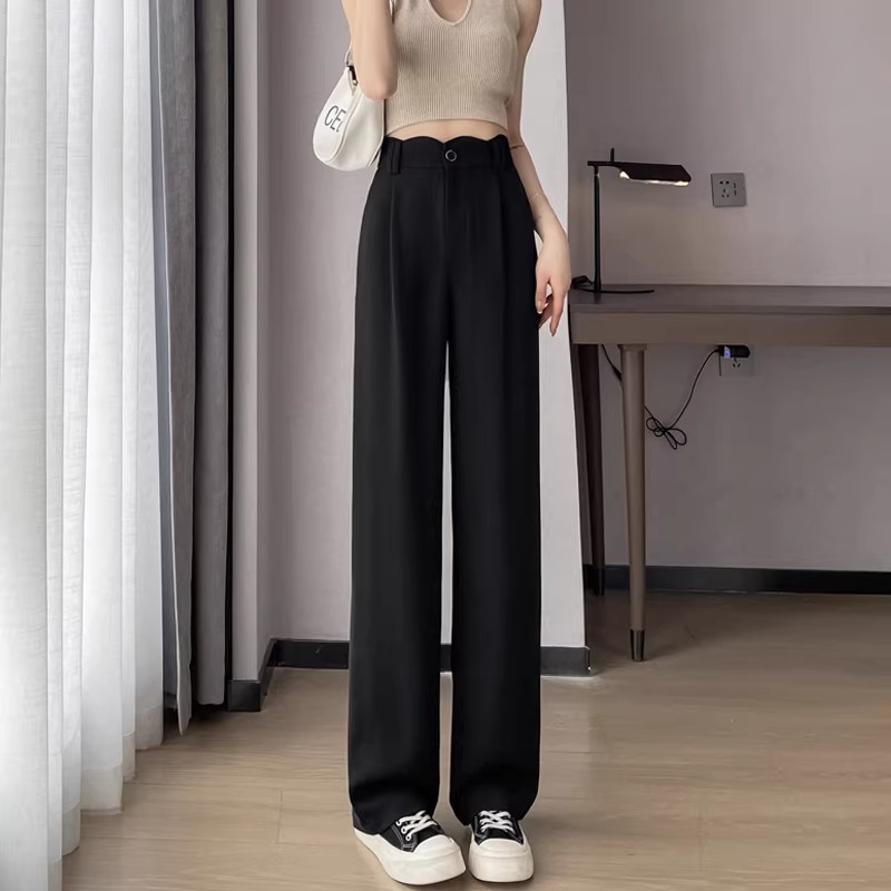 とろみのある落ち感素材でワイドでも着膨れせず、上品な揺れ感が魅力。