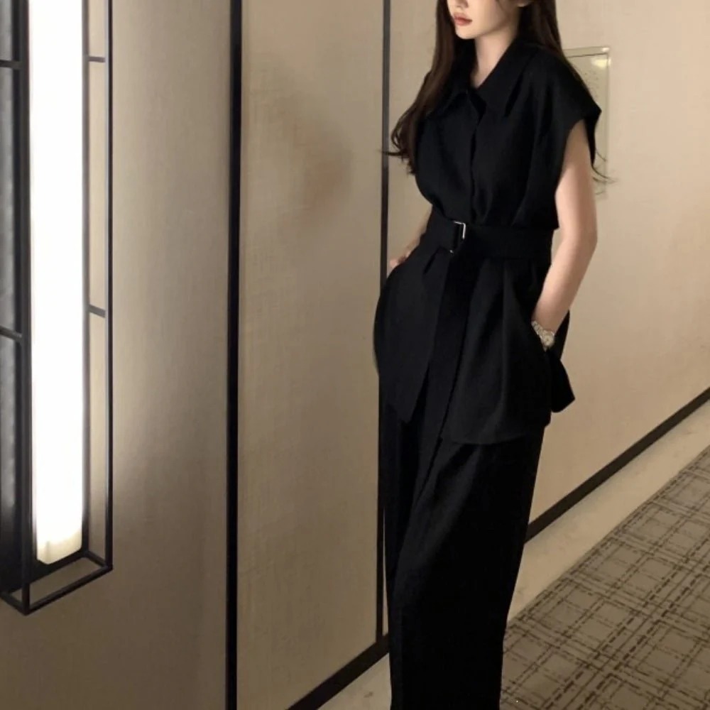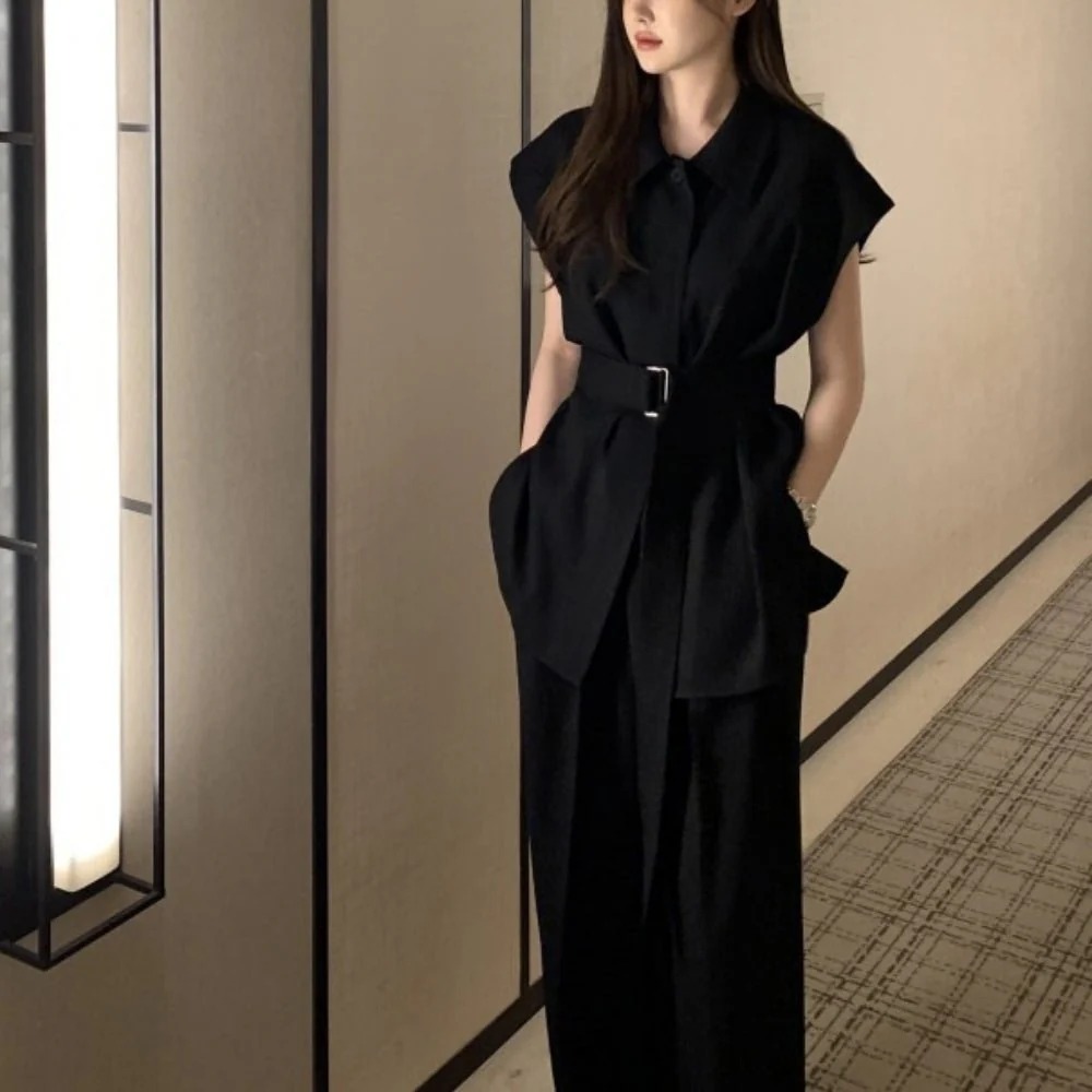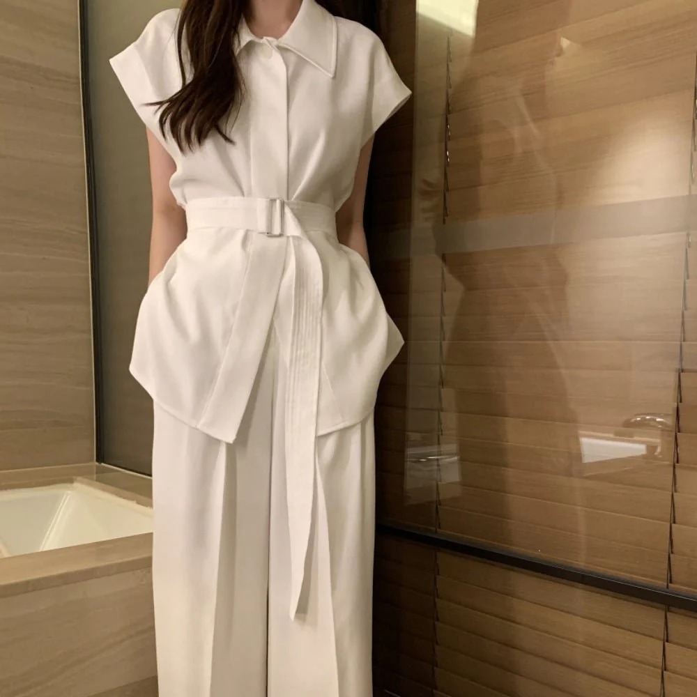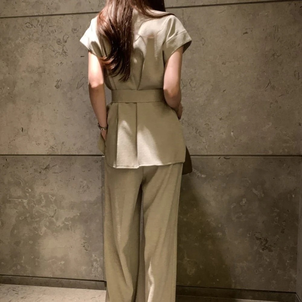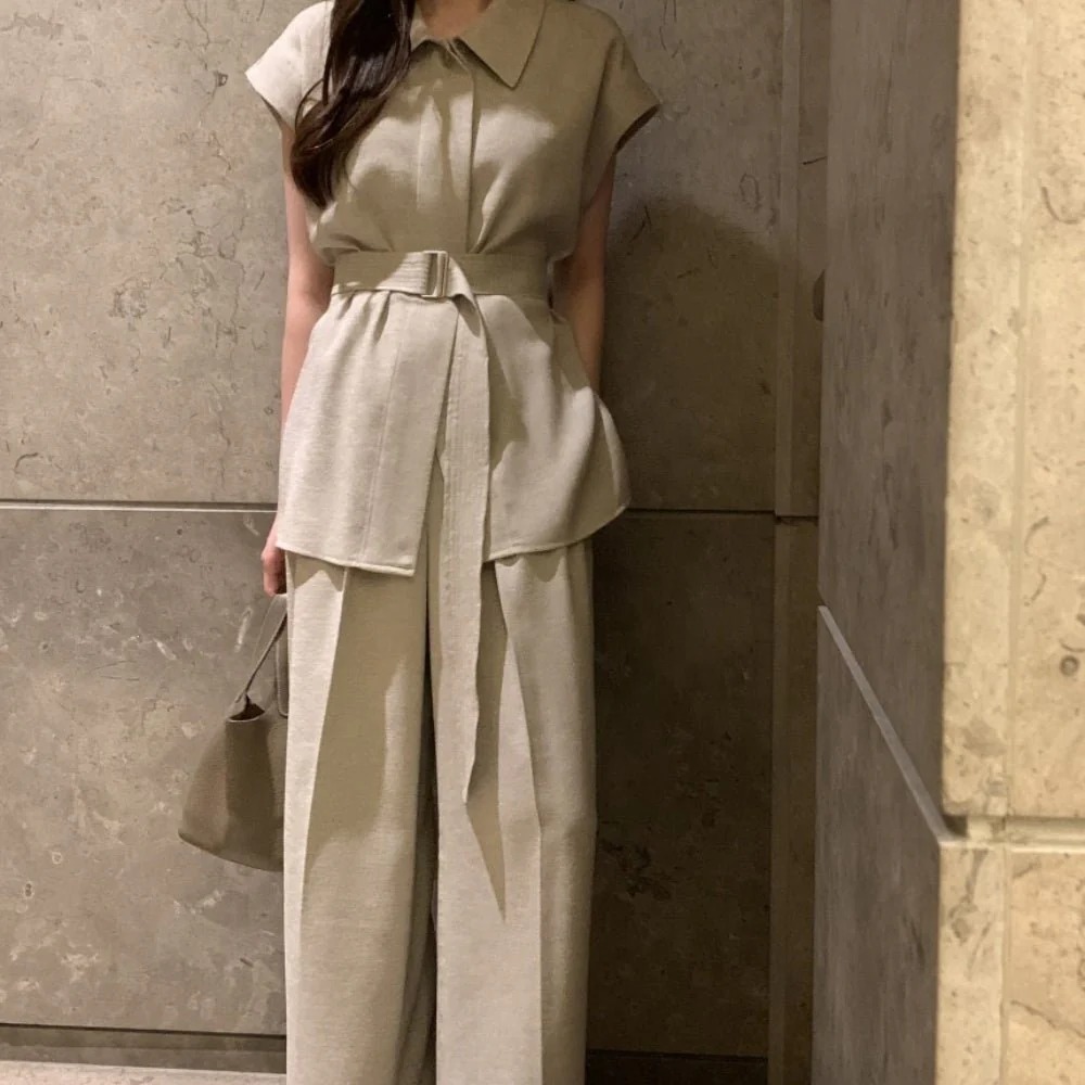 骨格ウェーブ 美くびれメイク・セットアップ フレンチスリーブシャツ&ワイドパンツ