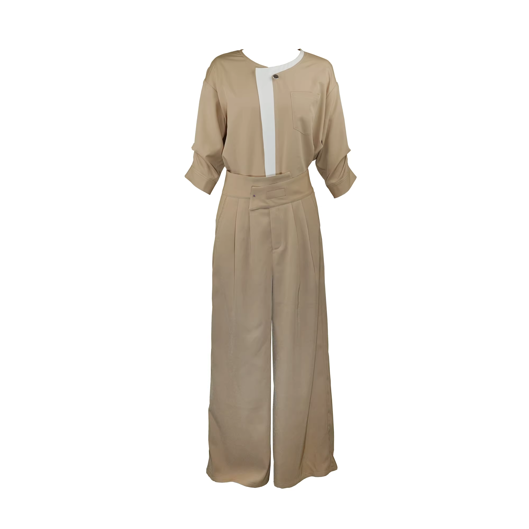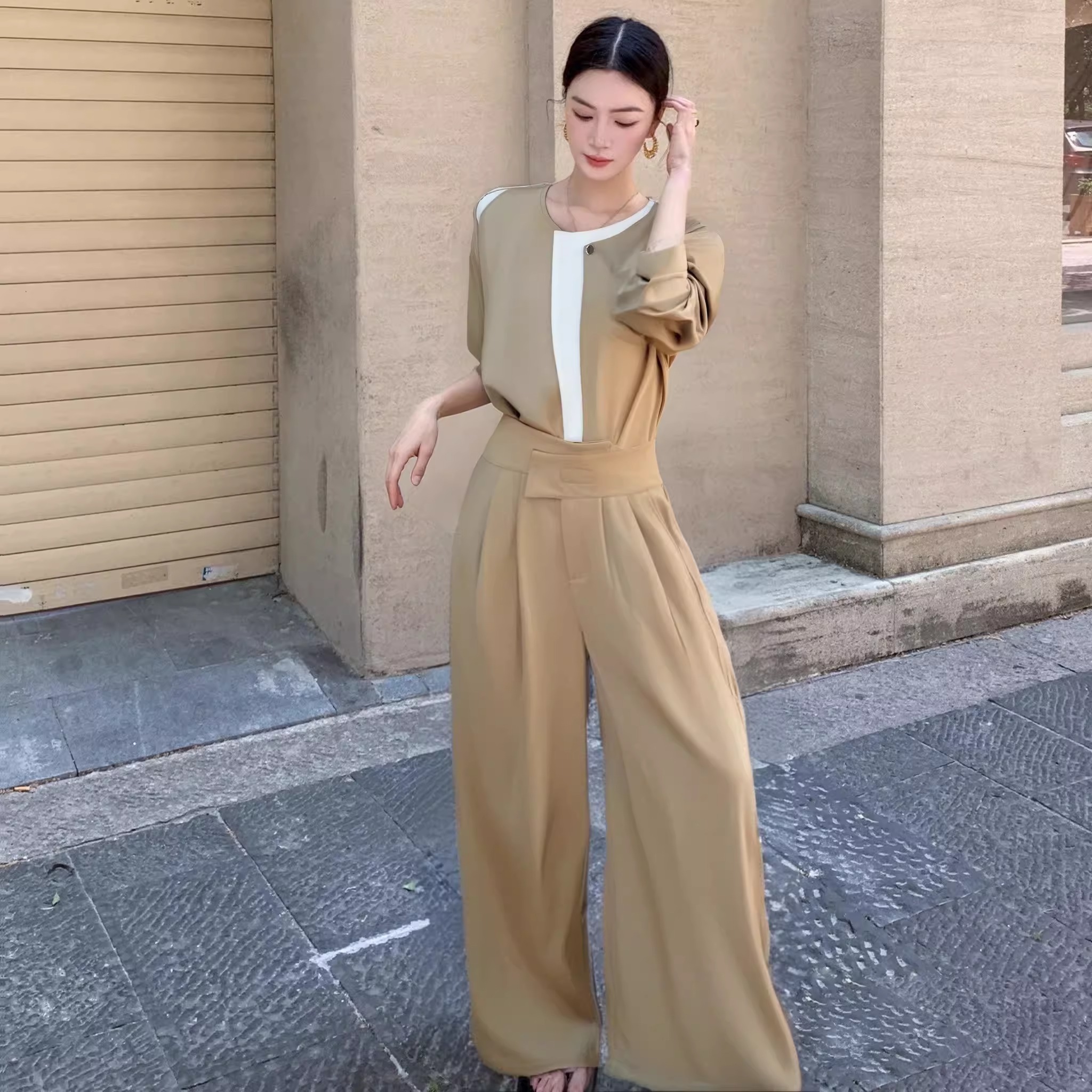 骨格ウェーブ 配色セットアップ(ブラウス&ワイドパンツ)