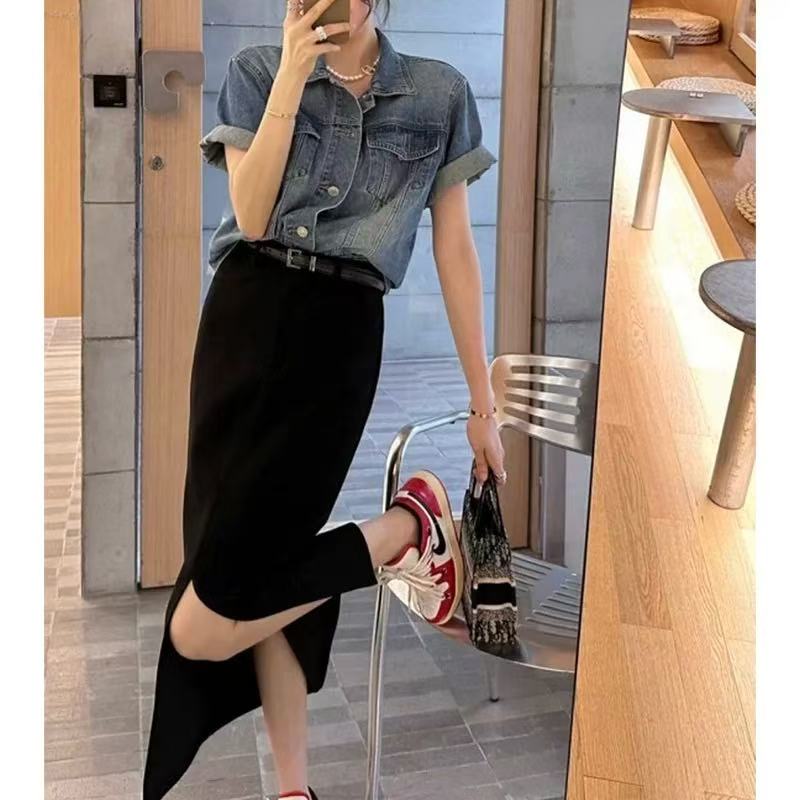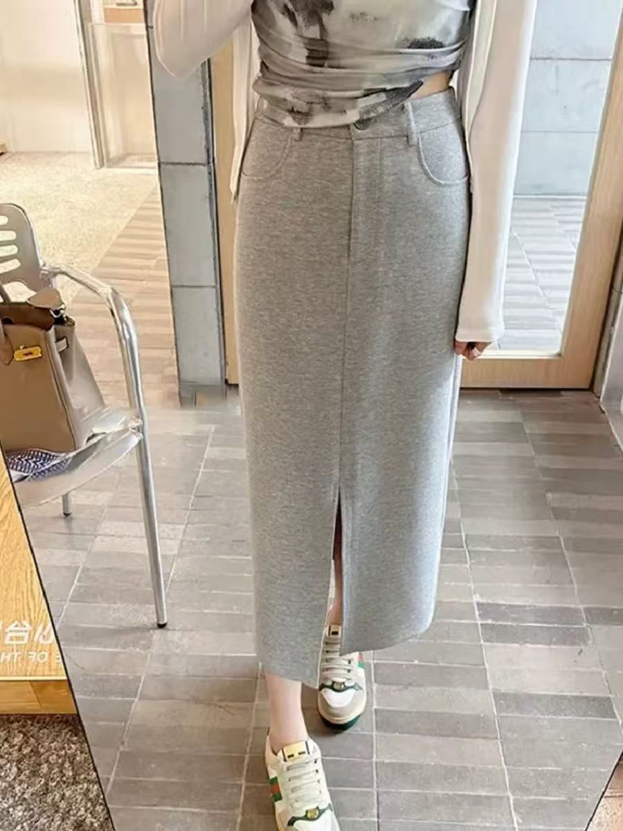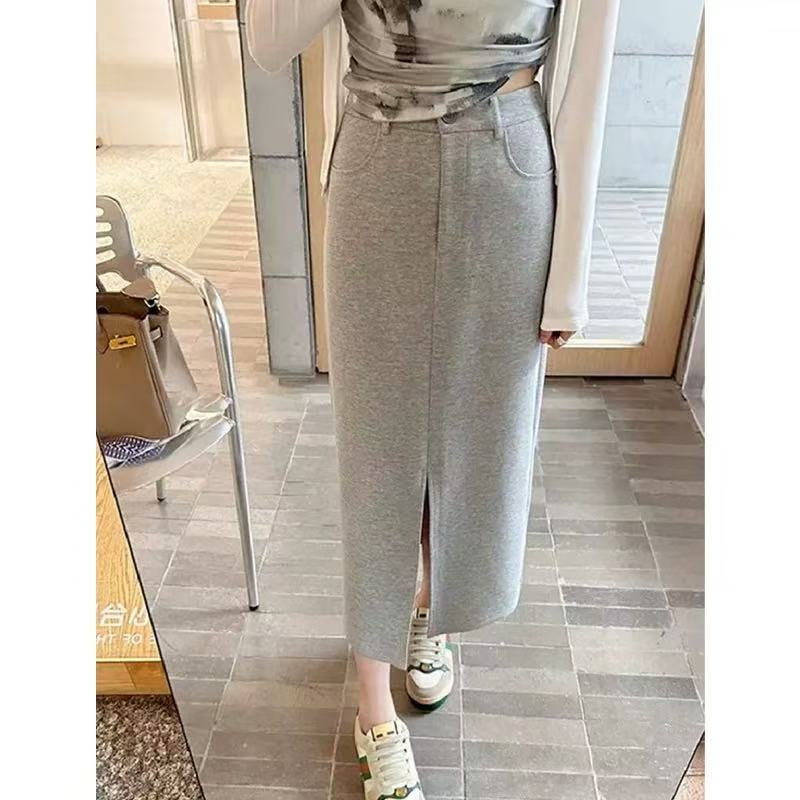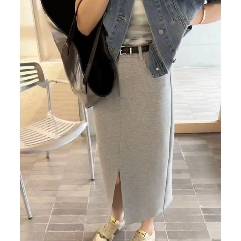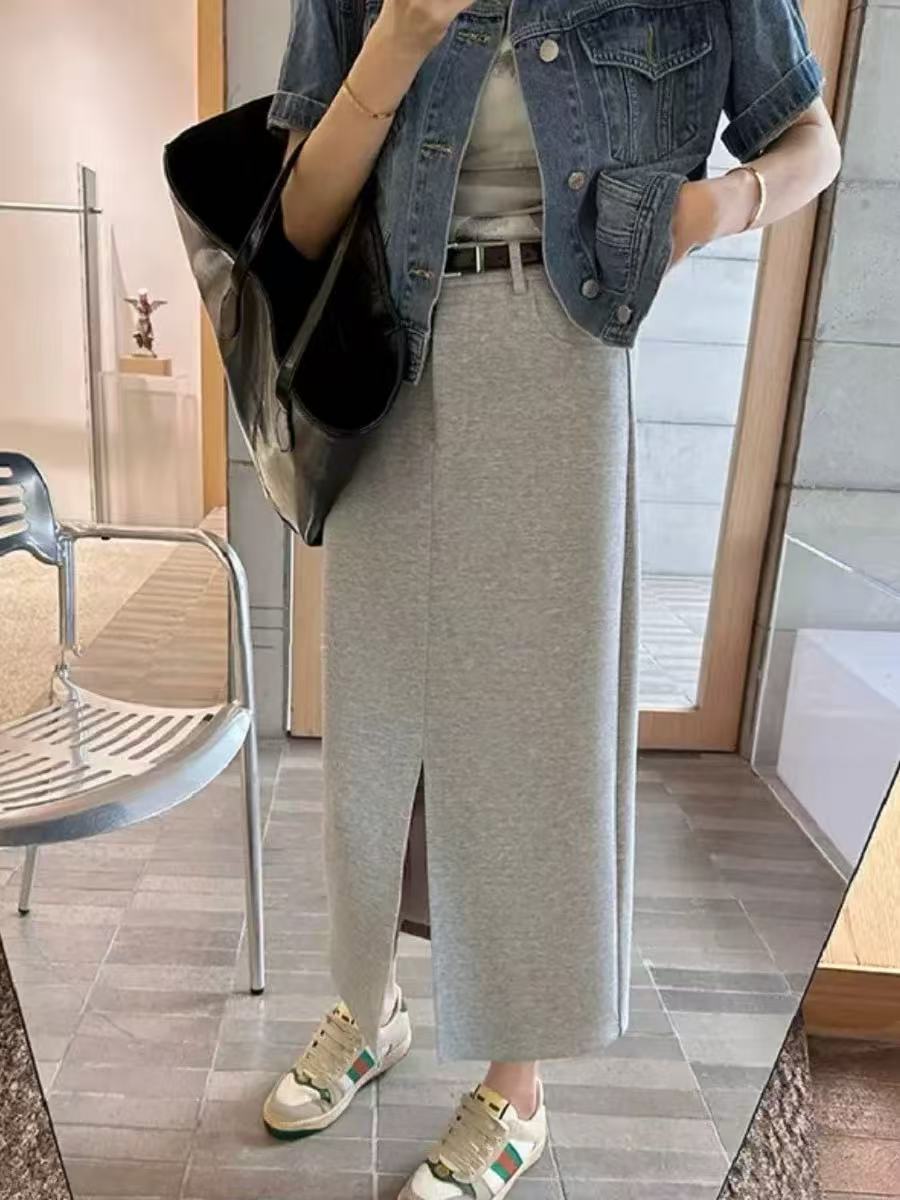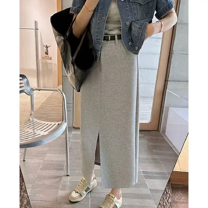 ハイウエストのデザインが脚長効果をもたらし、フロントスリットが印象的なアクセントになっています。カジュアルからフォーマルまで幅広いシーンで活躍するこのスカートは、コーディネートの幅を広げ、あなたの個性を引き立てます。