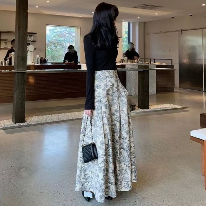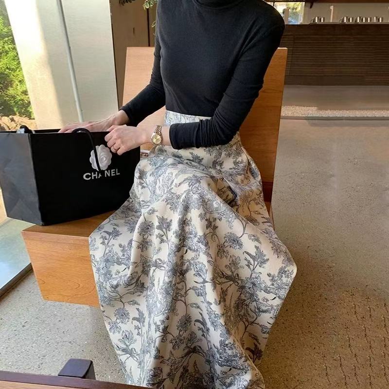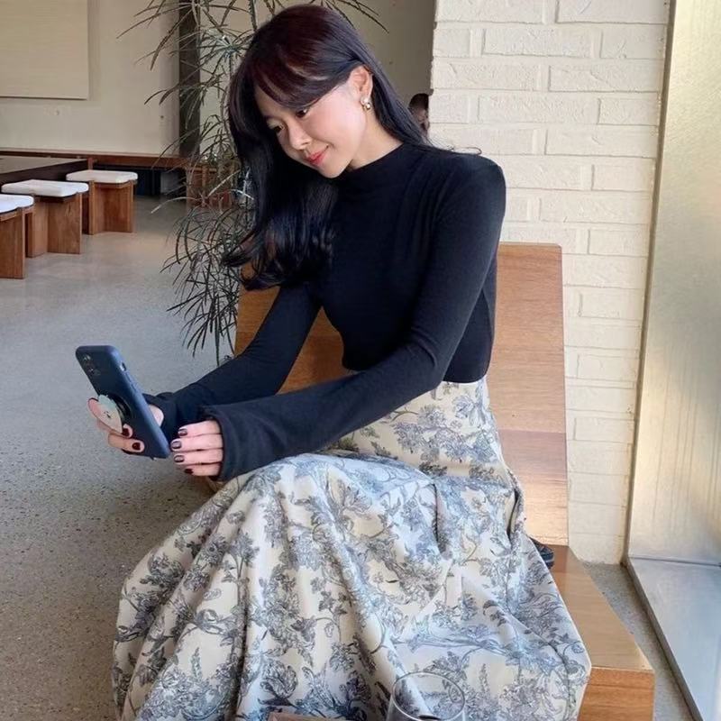 韓国シックなハイウエストフローラルスカート。シンプルで洗練されたTシャツと華やかな花柄スカートが大人の雰囲気を演出。通勤やお出かけなど幅広いシーンで活躍し、快適な着心地で季節の装いに取り入れやすい万能スカートです。