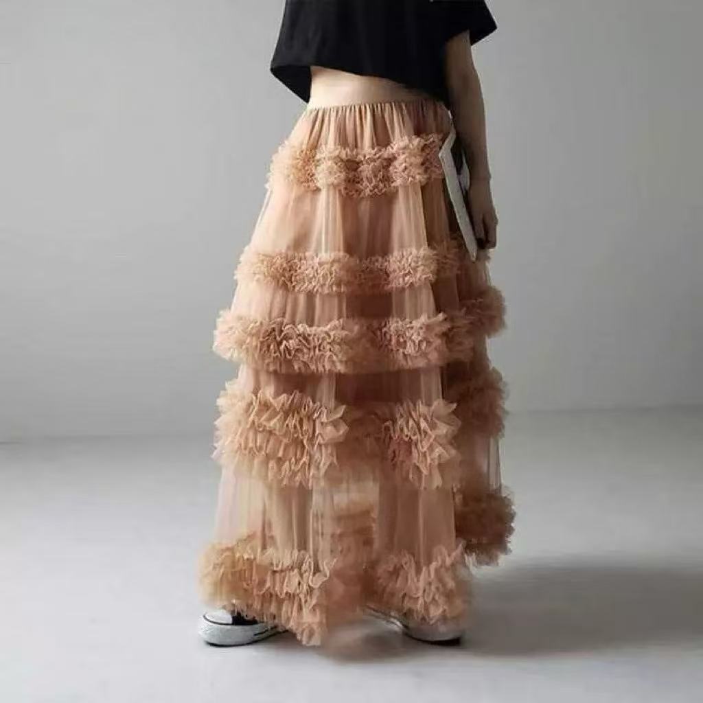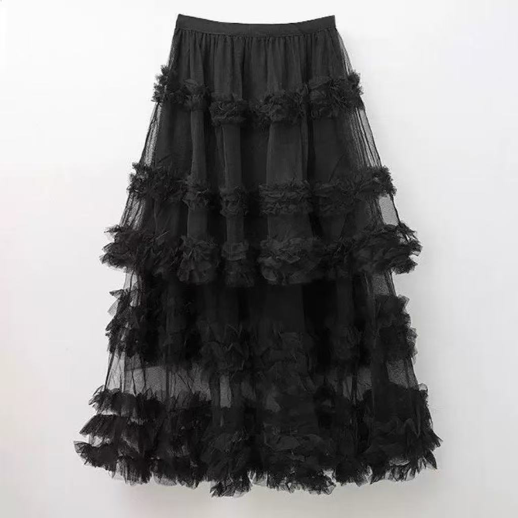 骨格ウェーブ チュールフリルティアードフレアスカート