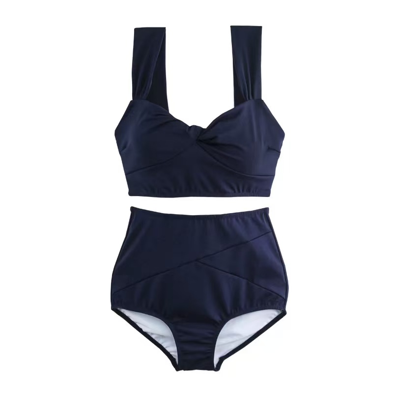 骨格ウェーブにぴったりフィットする2点セットのハイウエスト水着です。ウエストラインを美しく引き立てるハイウエストデザインと、シンプルながらスタイリッシュなシルエットが魅力。伸縮性のある柔らかな素材は肌にやさしく、快適な着心地を実現します。ビーチやプールはもちろん、トレンド感のあるスタイリングにも最適。カバーアップやアクセサリーとも合わせやすく、この夏のワードローブに加えたいおすすめの一枚です。