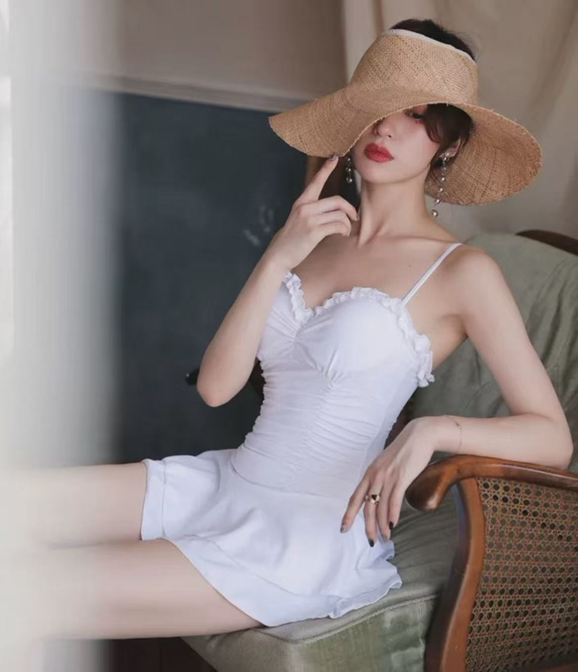 骨格ウェーブ ドレス風 スチールサポート ワンピース水着は、華やかでスタイリッシュな魅力を放つ一着です。優美なドレス風デザインが骨格ウェーブにフィットし、スチールサポートで快適な着心地と安定感を実現。柔らかな素材で肌触りも良く、ビーチやプールでの時間を上品かつ華やかに彩ります。